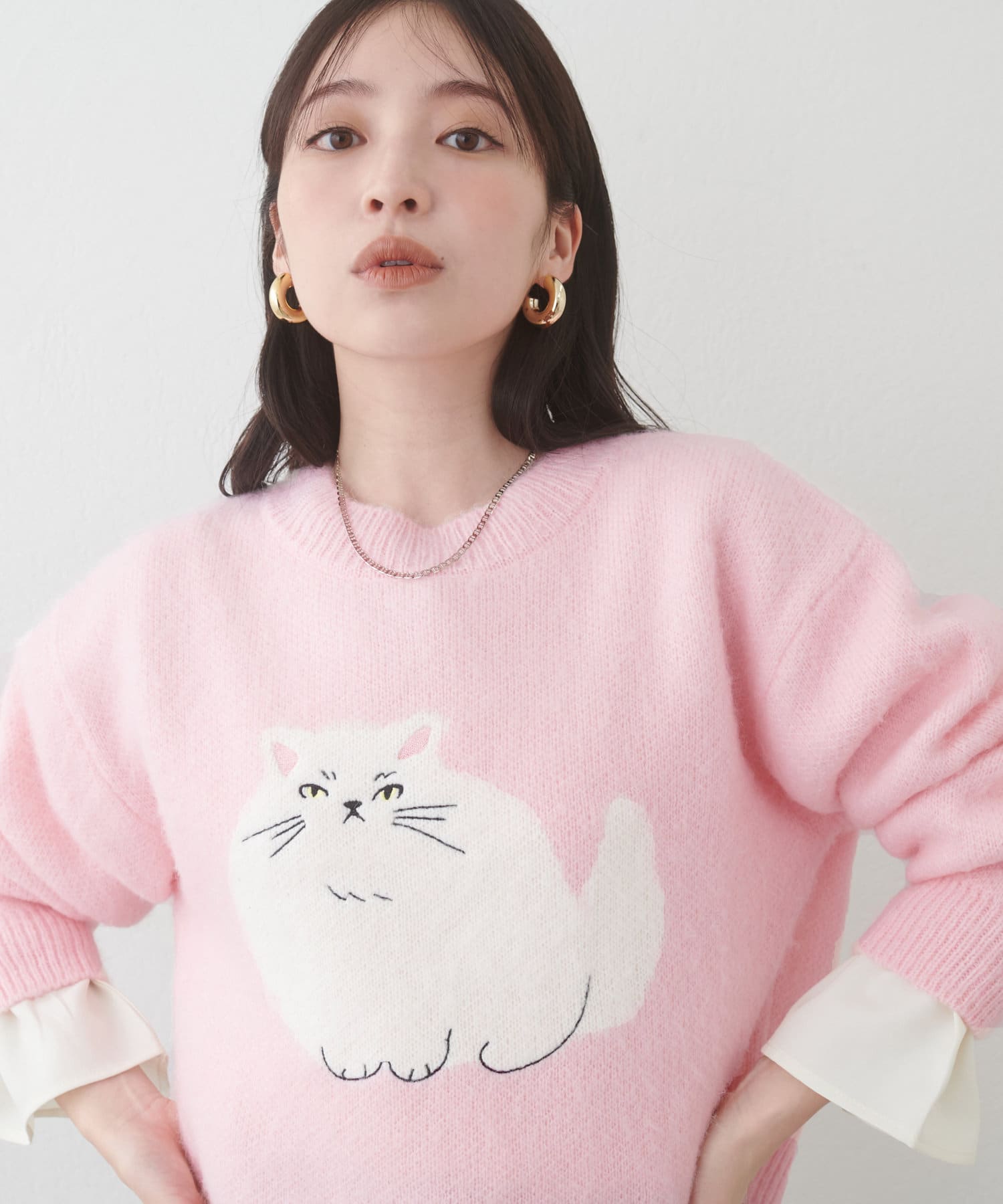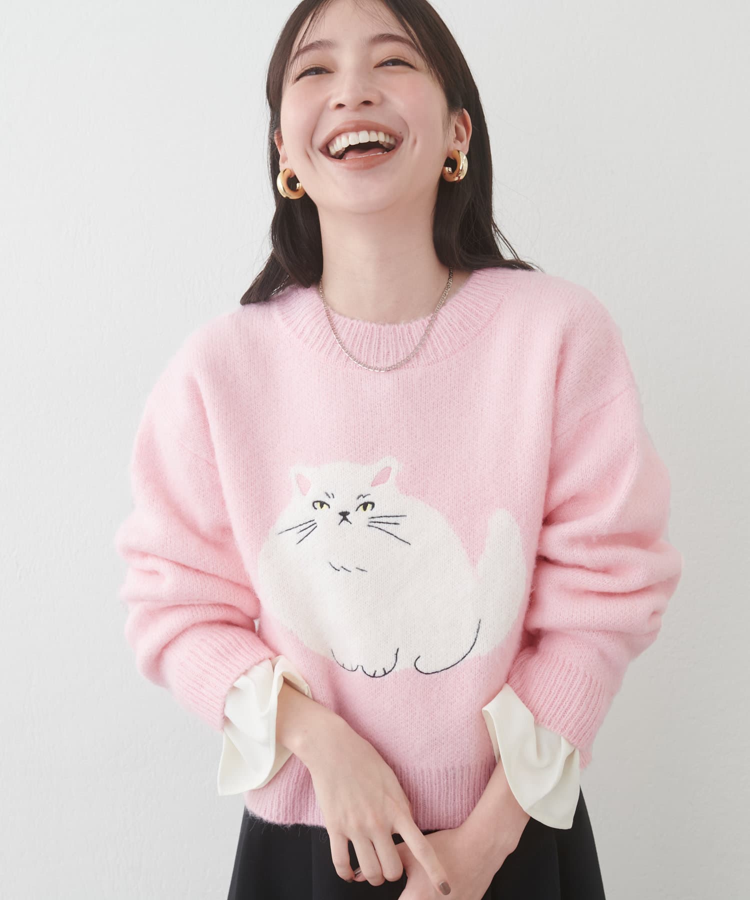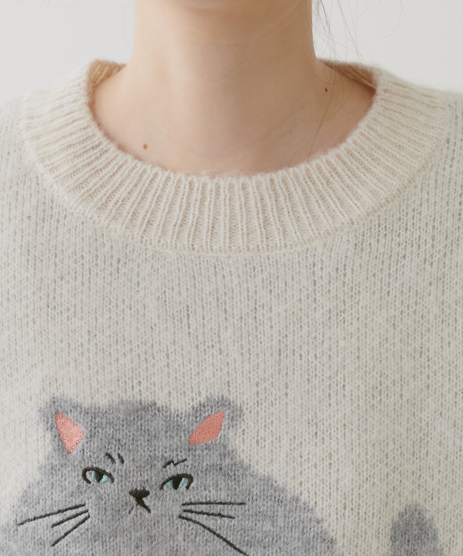 ねこモチーフが可愛いもちもちニット