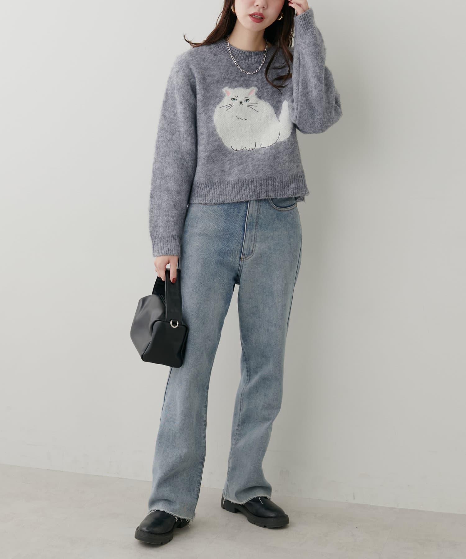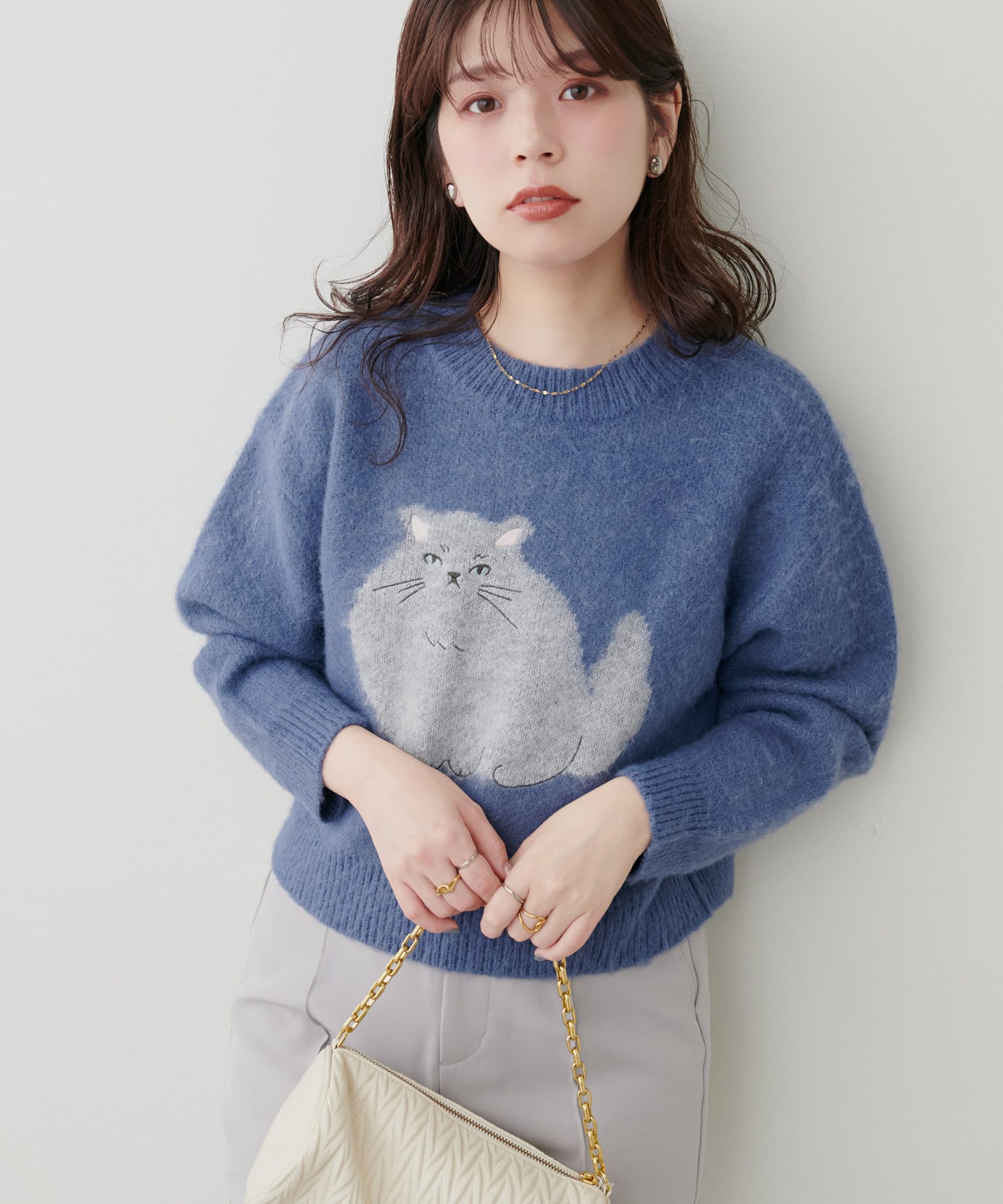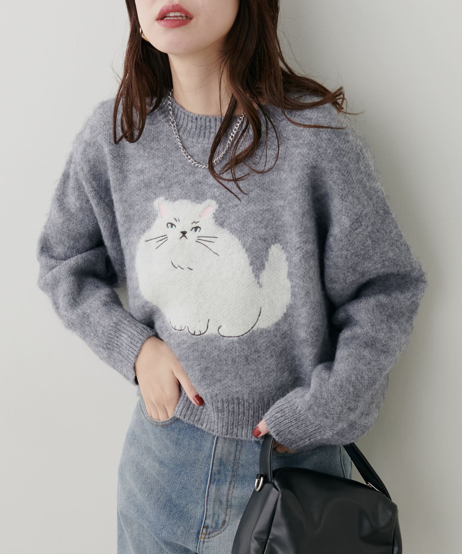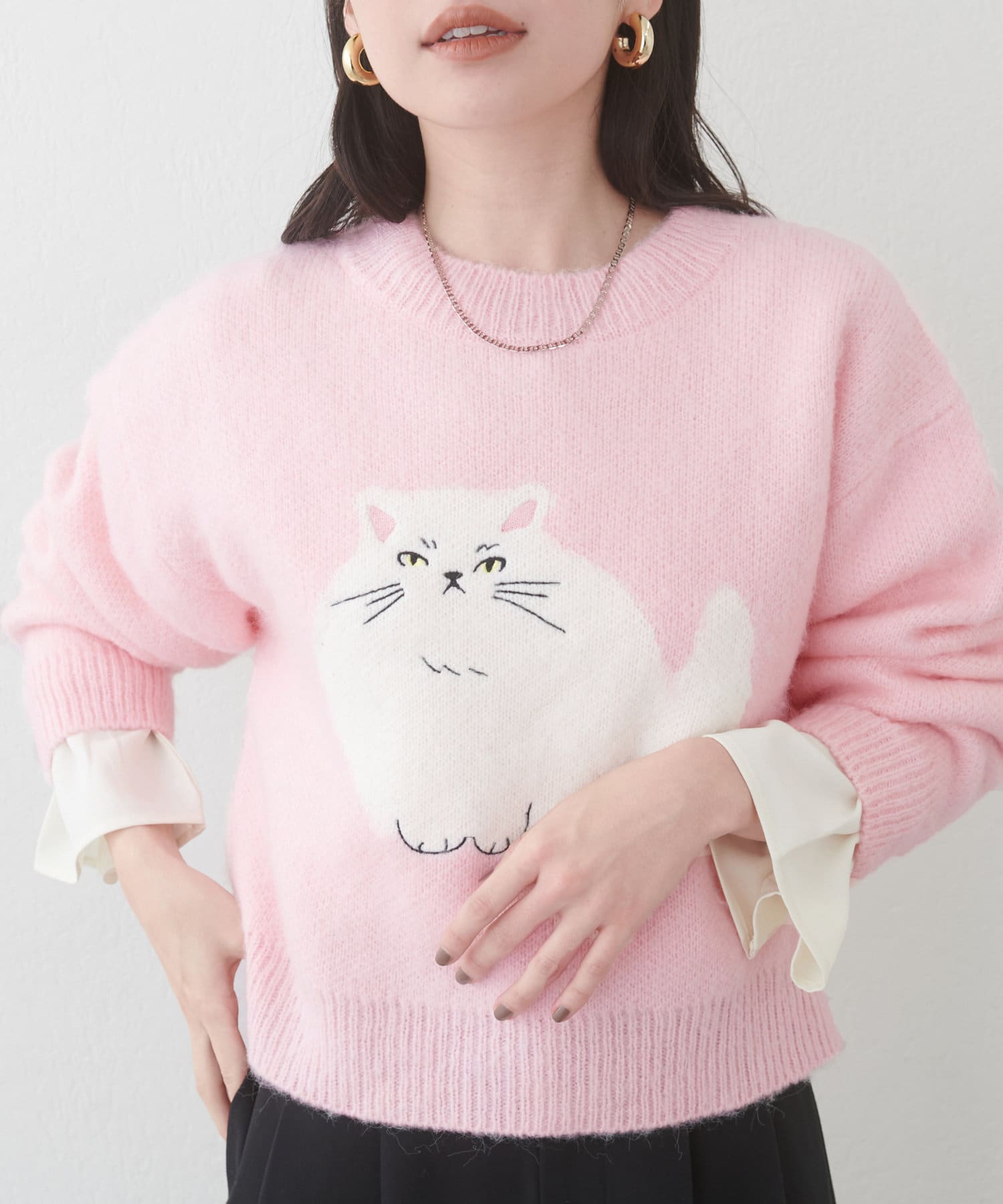 ねこモチーフが可愛いもちもちニット