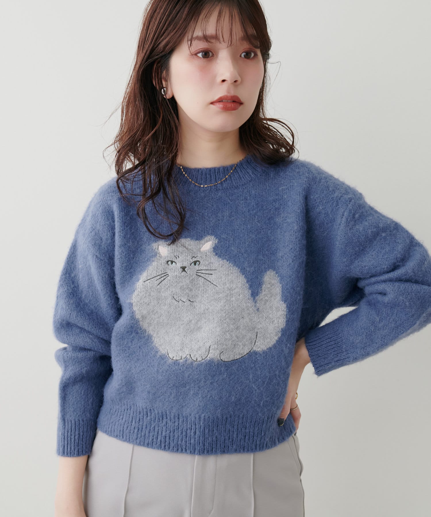 もちねこふんわりニット