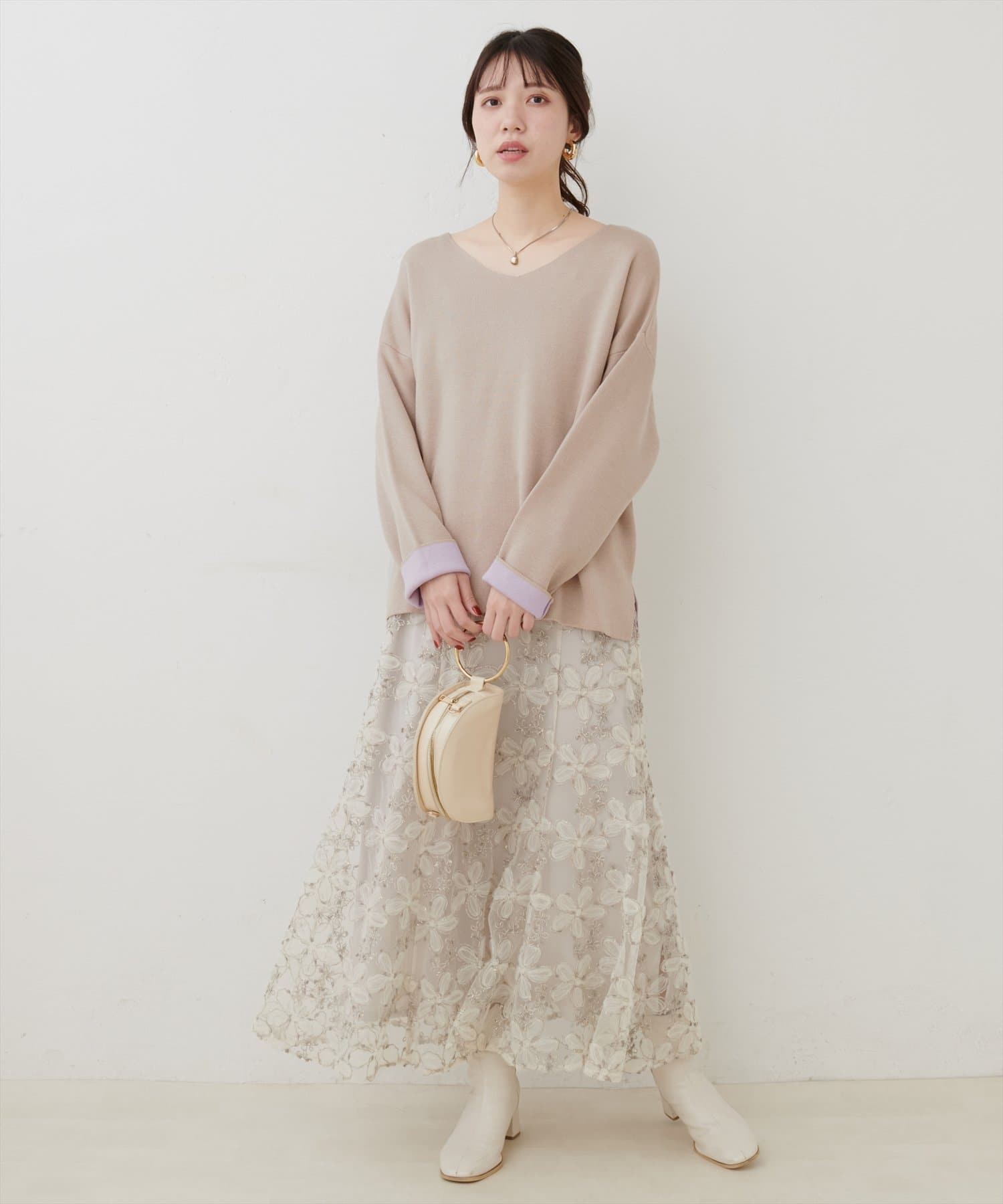 シンプルなアイテムなので柄ボトムスやレーススカートと相性◎