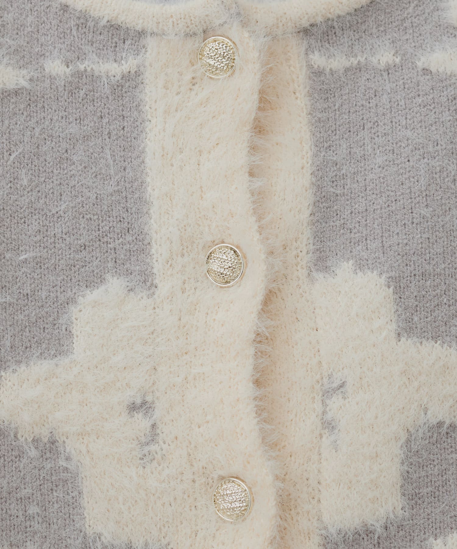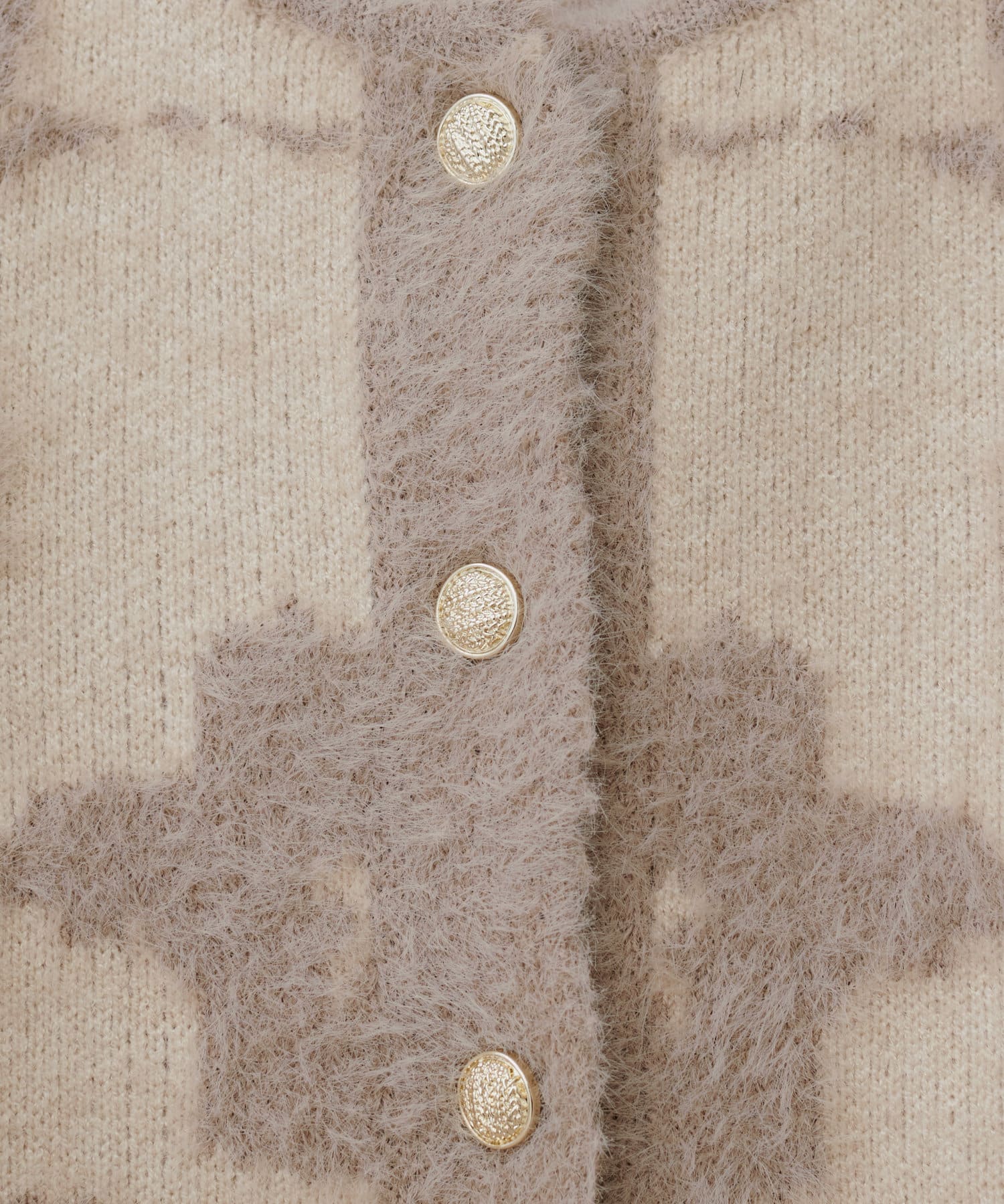 配色のジャガードとデザインボタンで高見え。