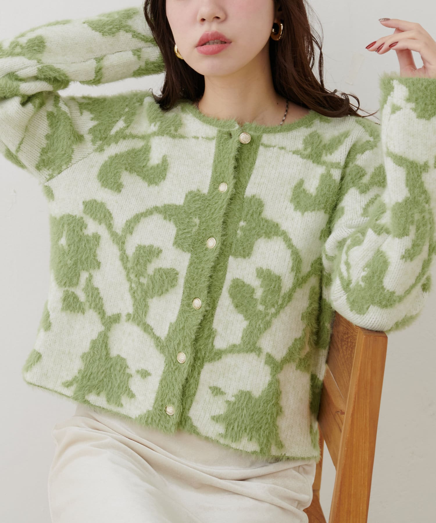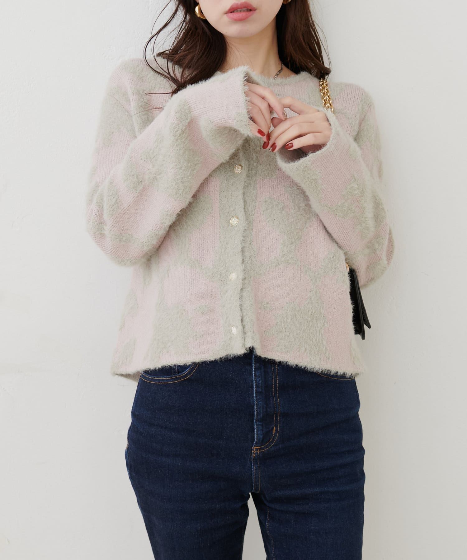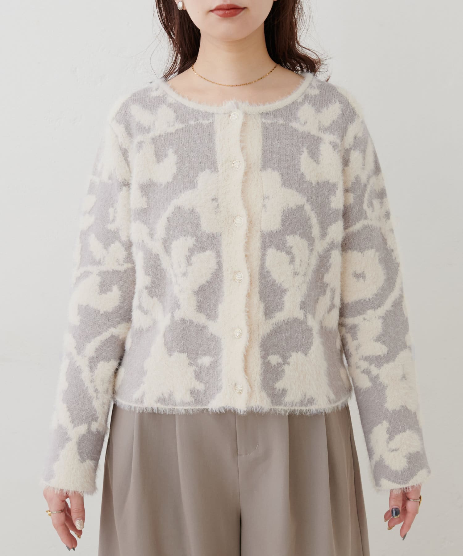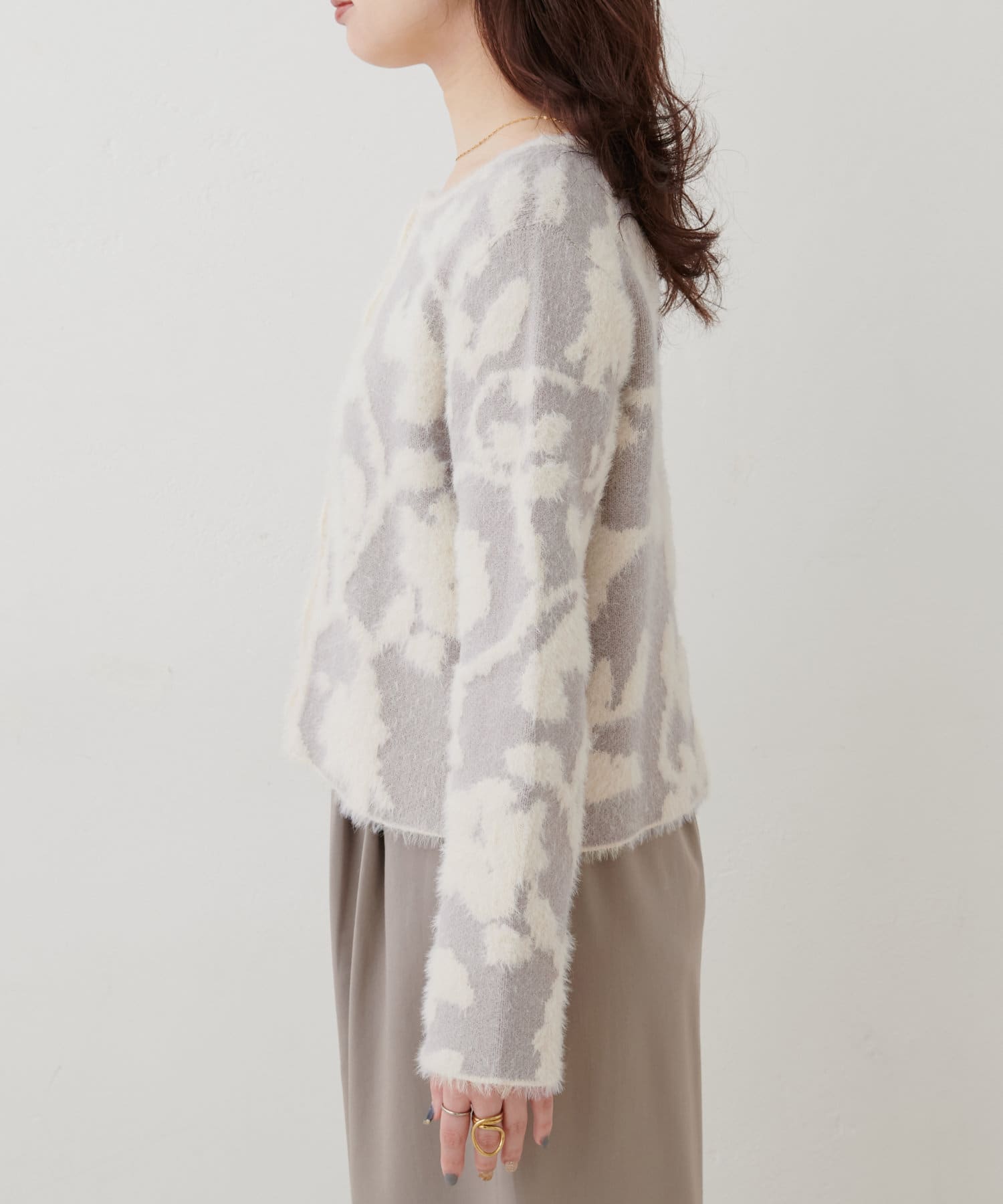 フェザーヤーンジャガードニットカーデ