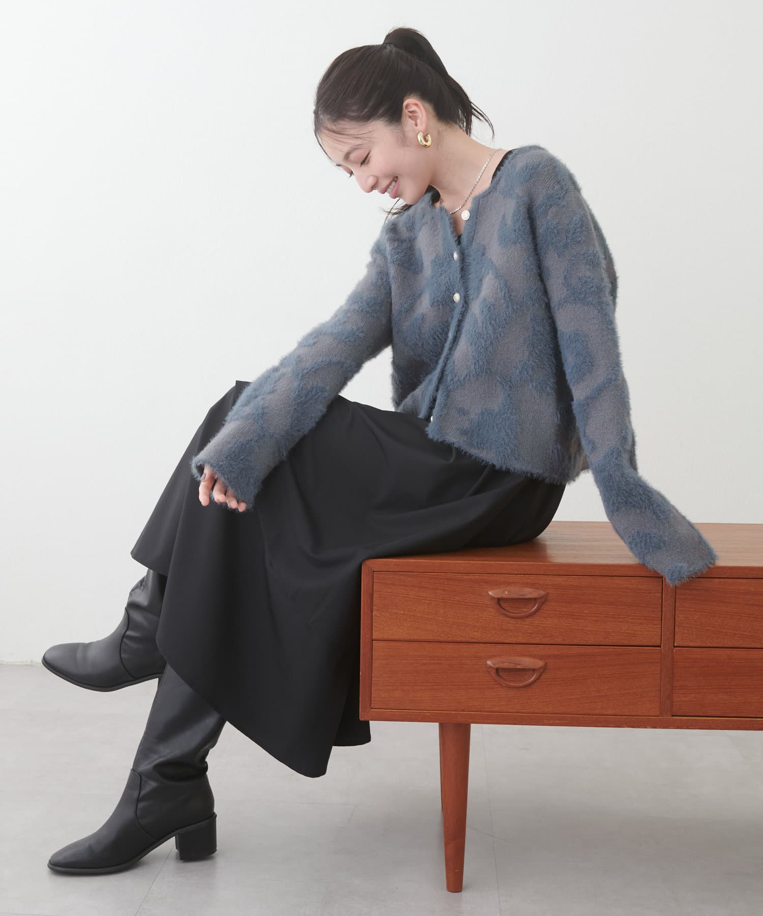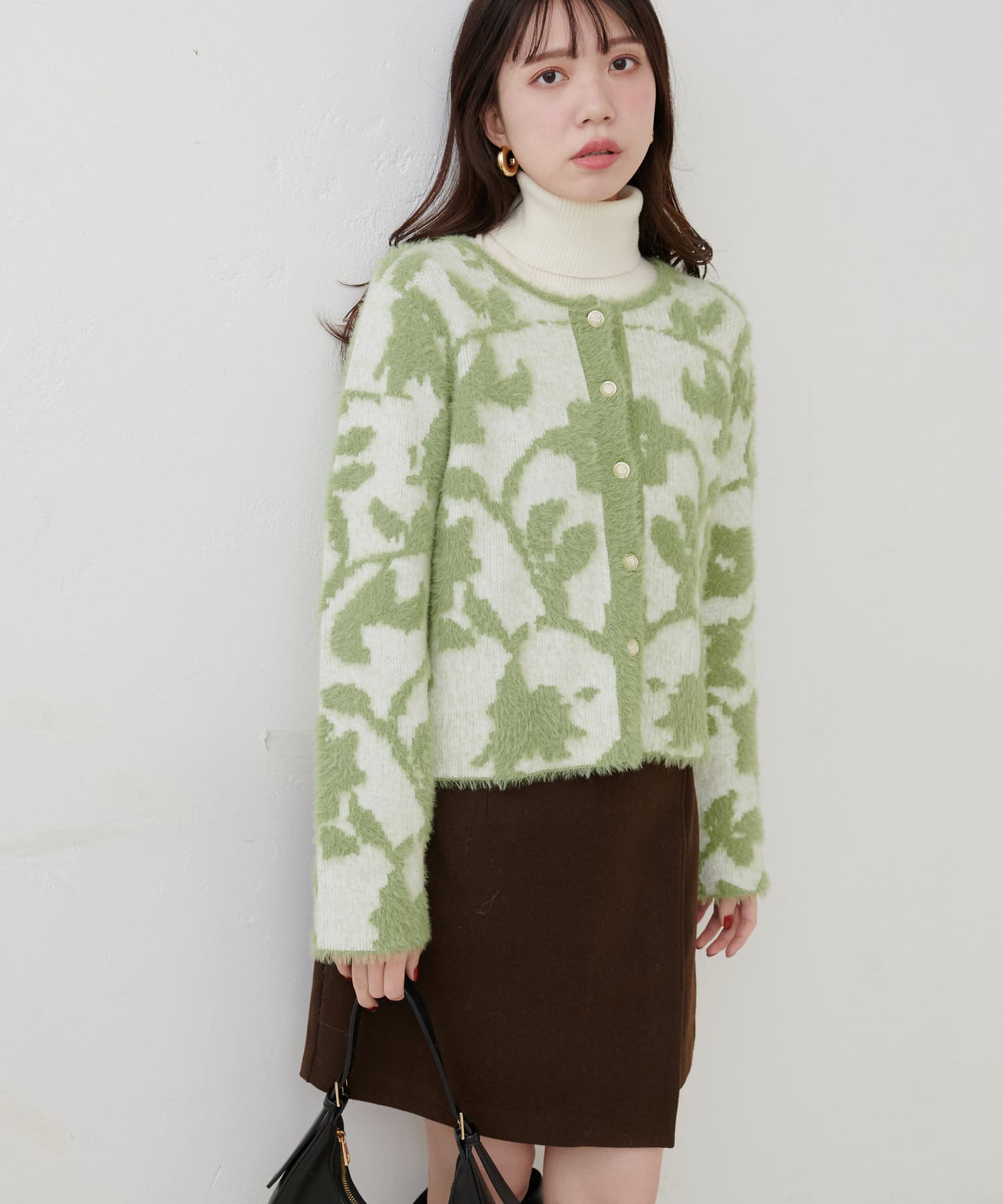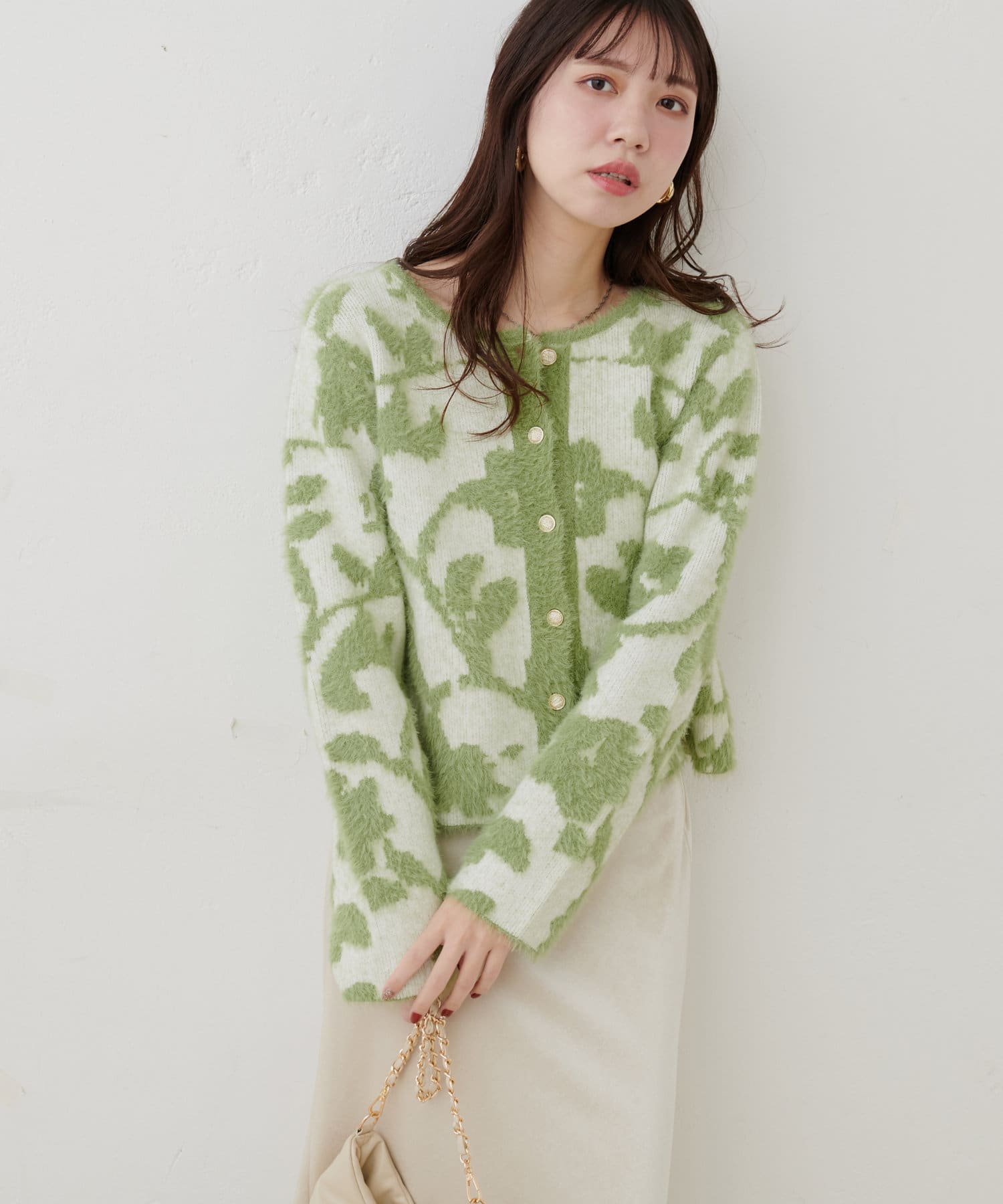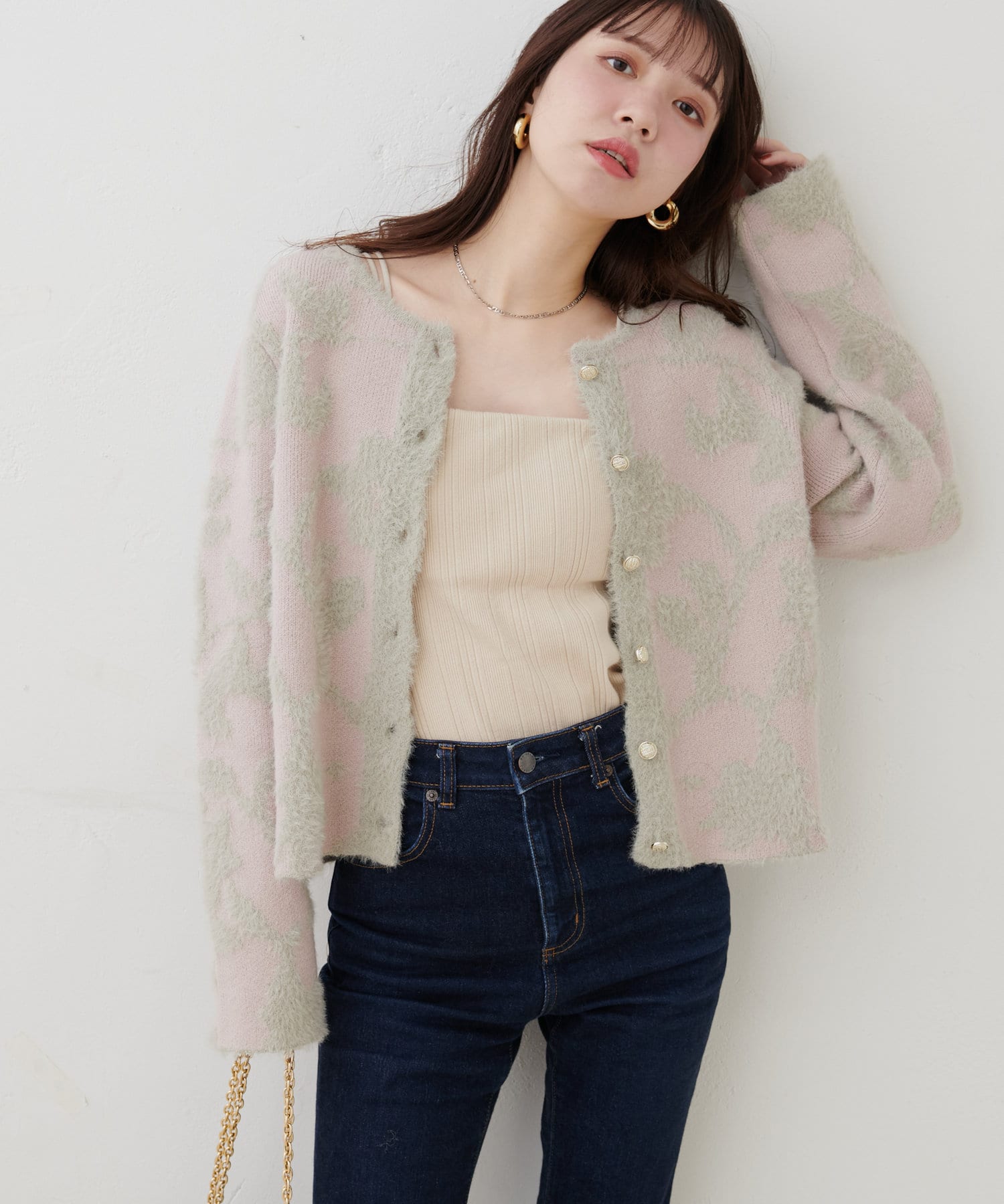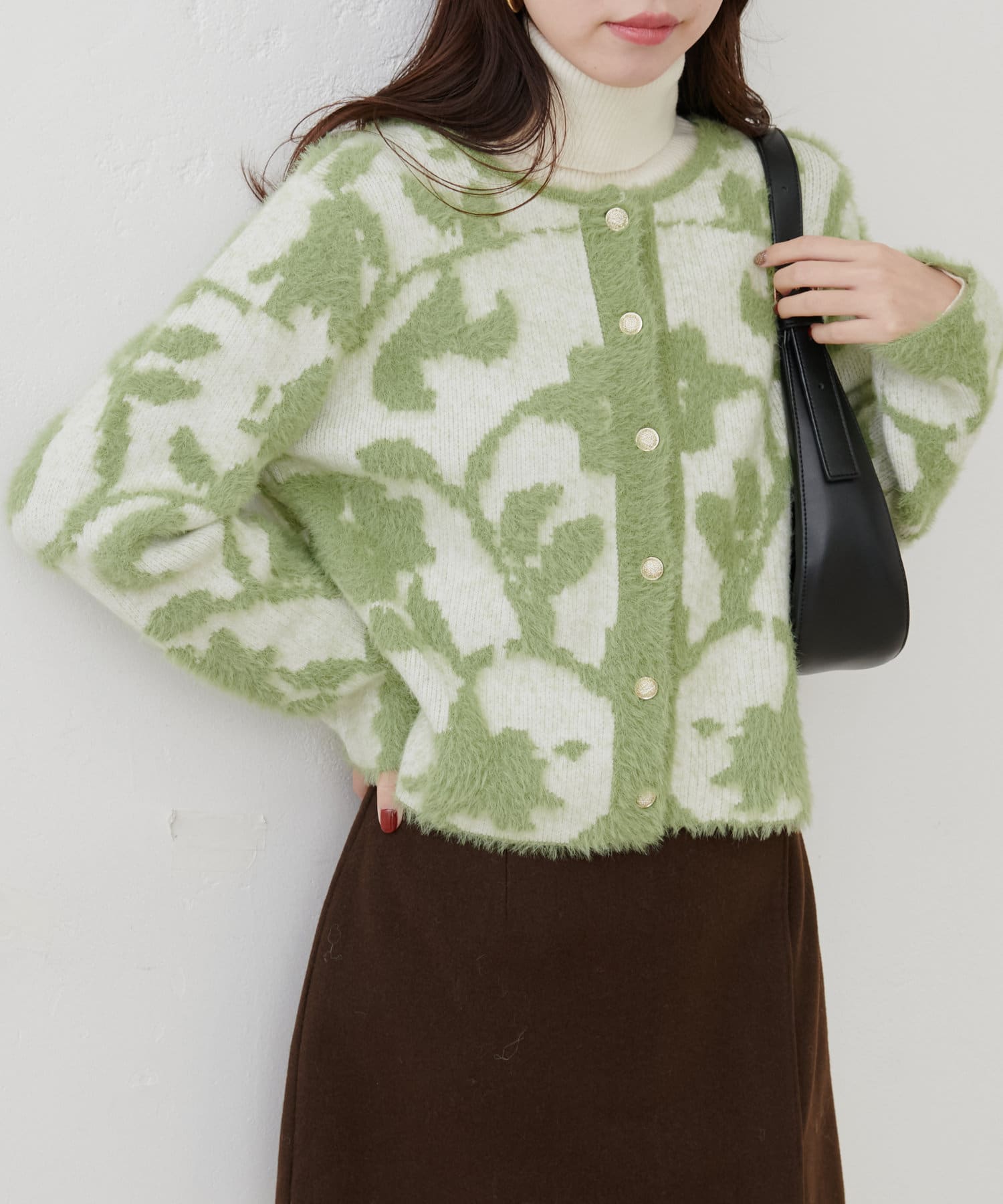 フェザーヤーンジャガードニットカーデ