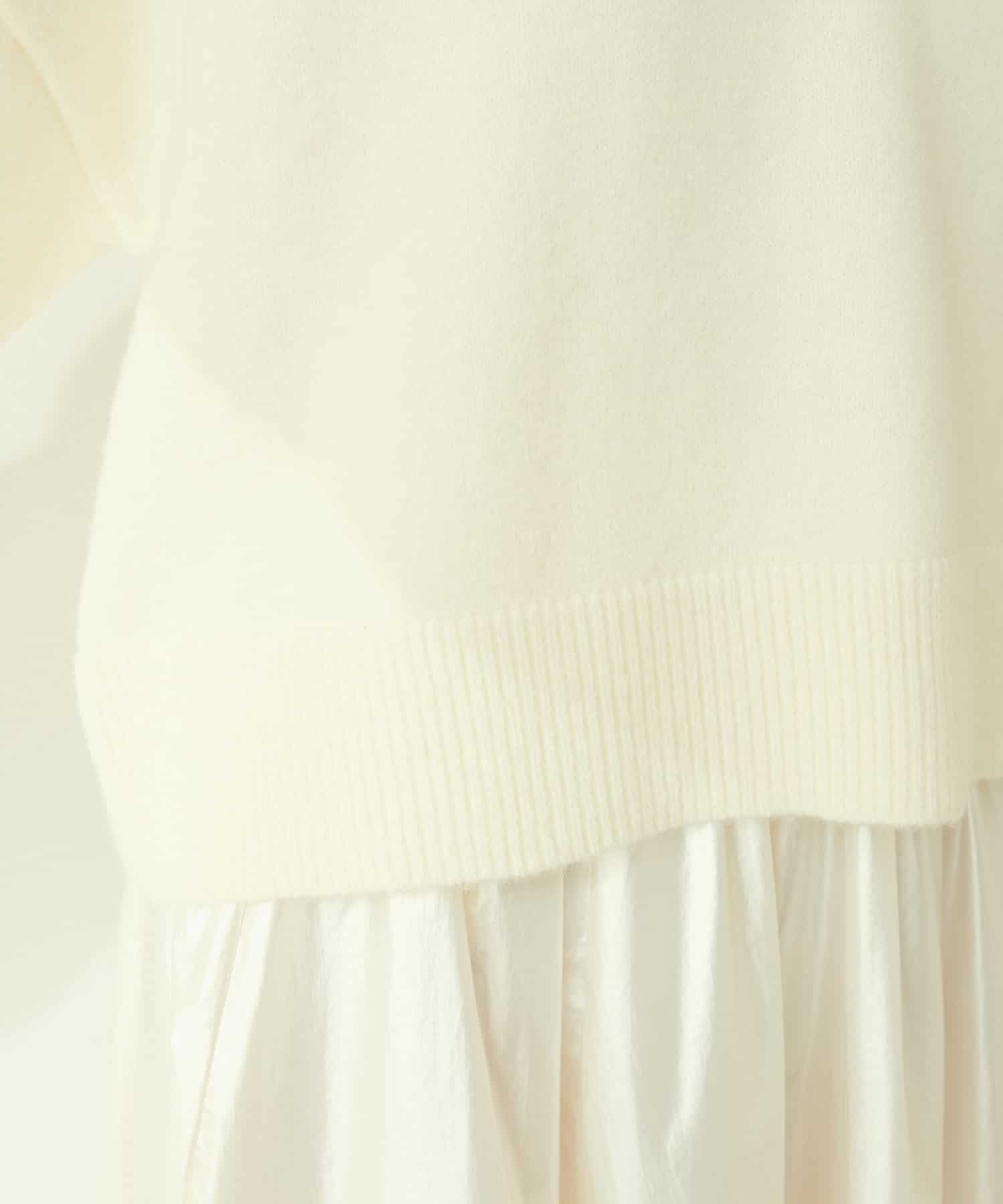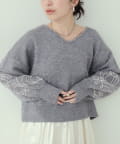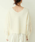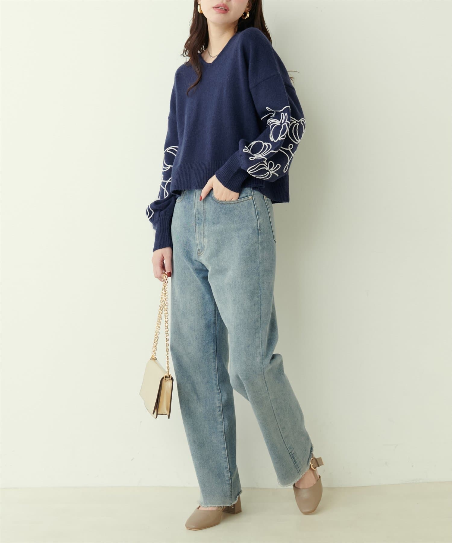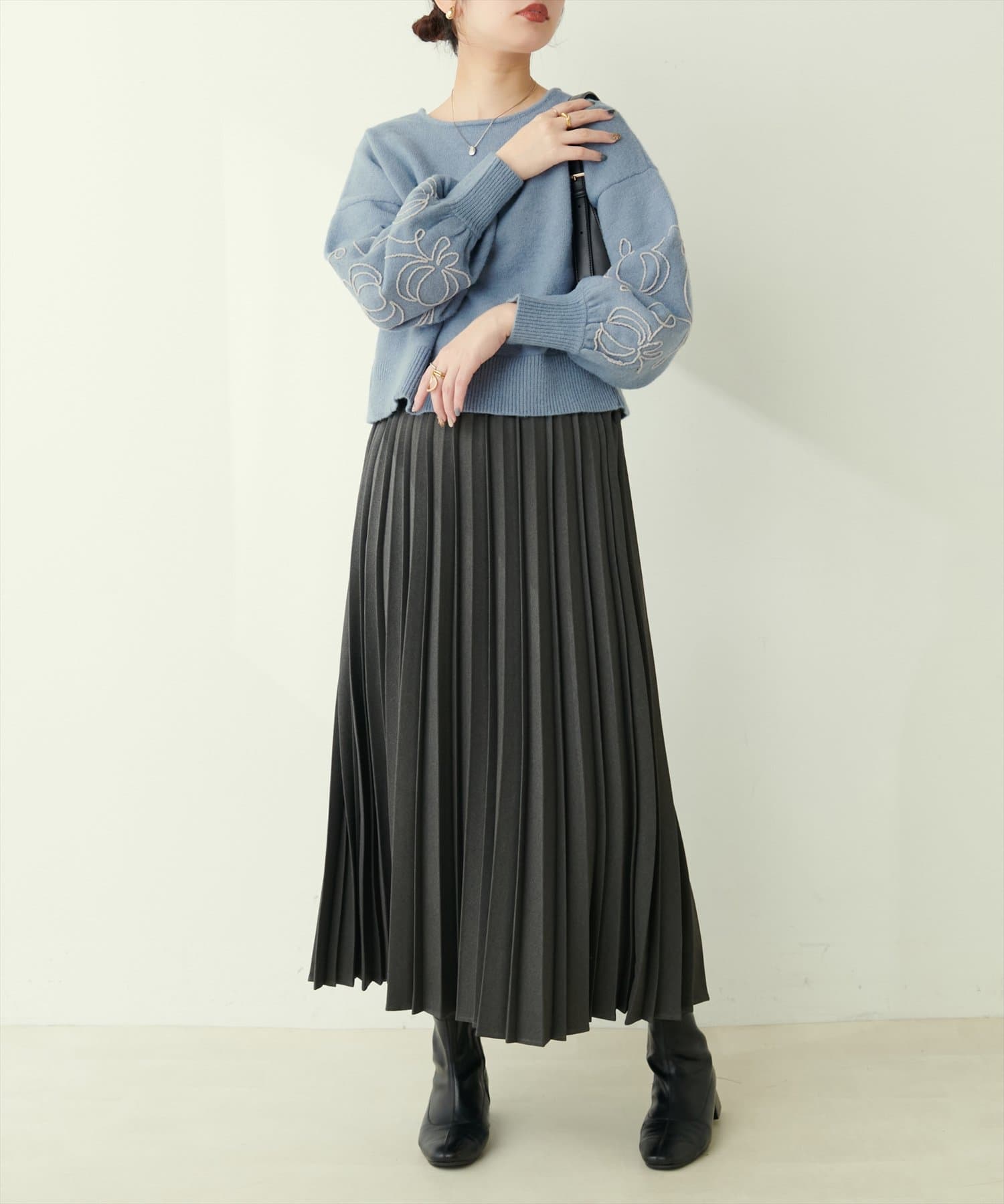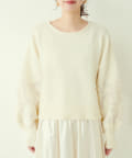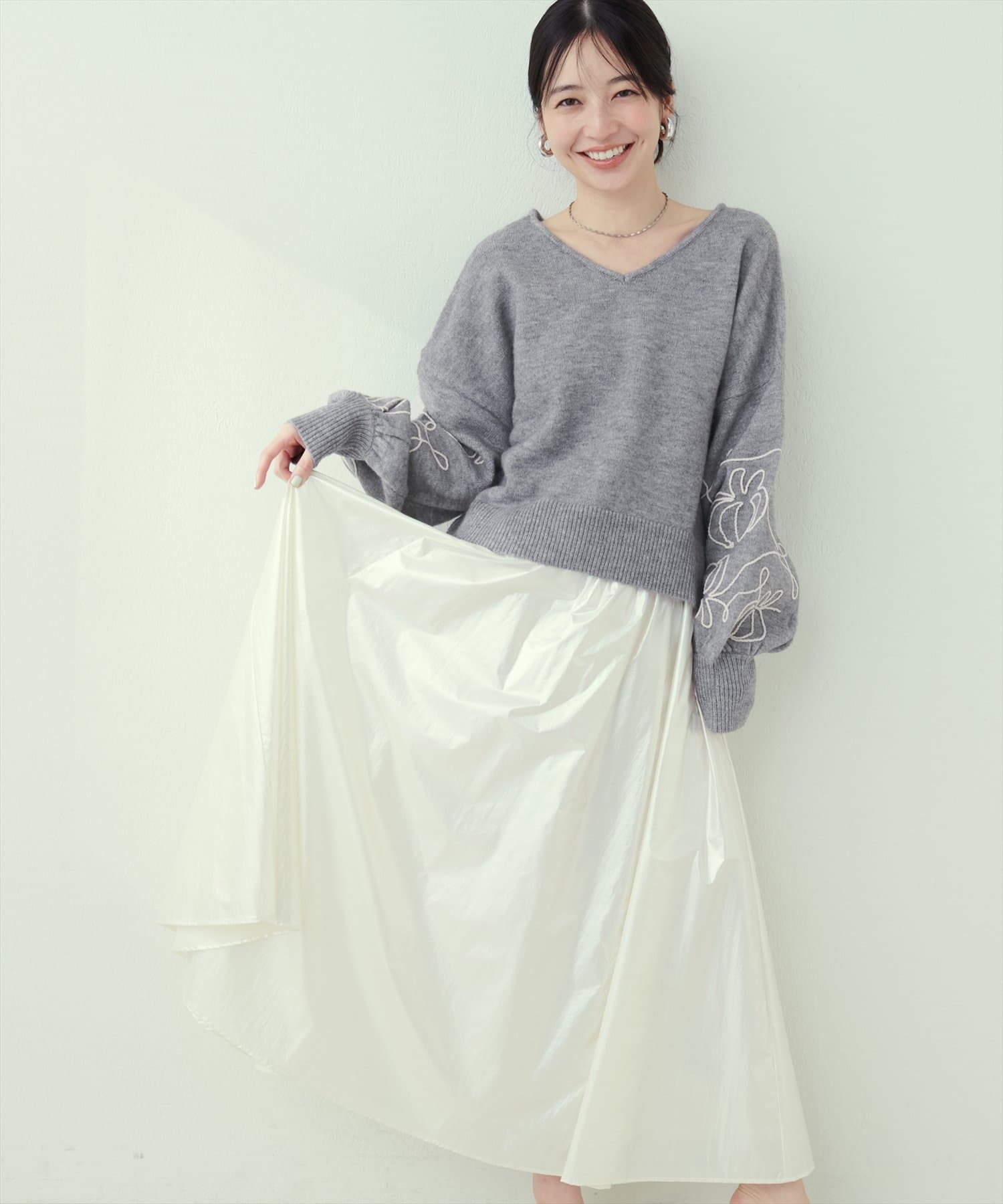 袖の配色モール刺繍が華やかなニットプルオーバー。