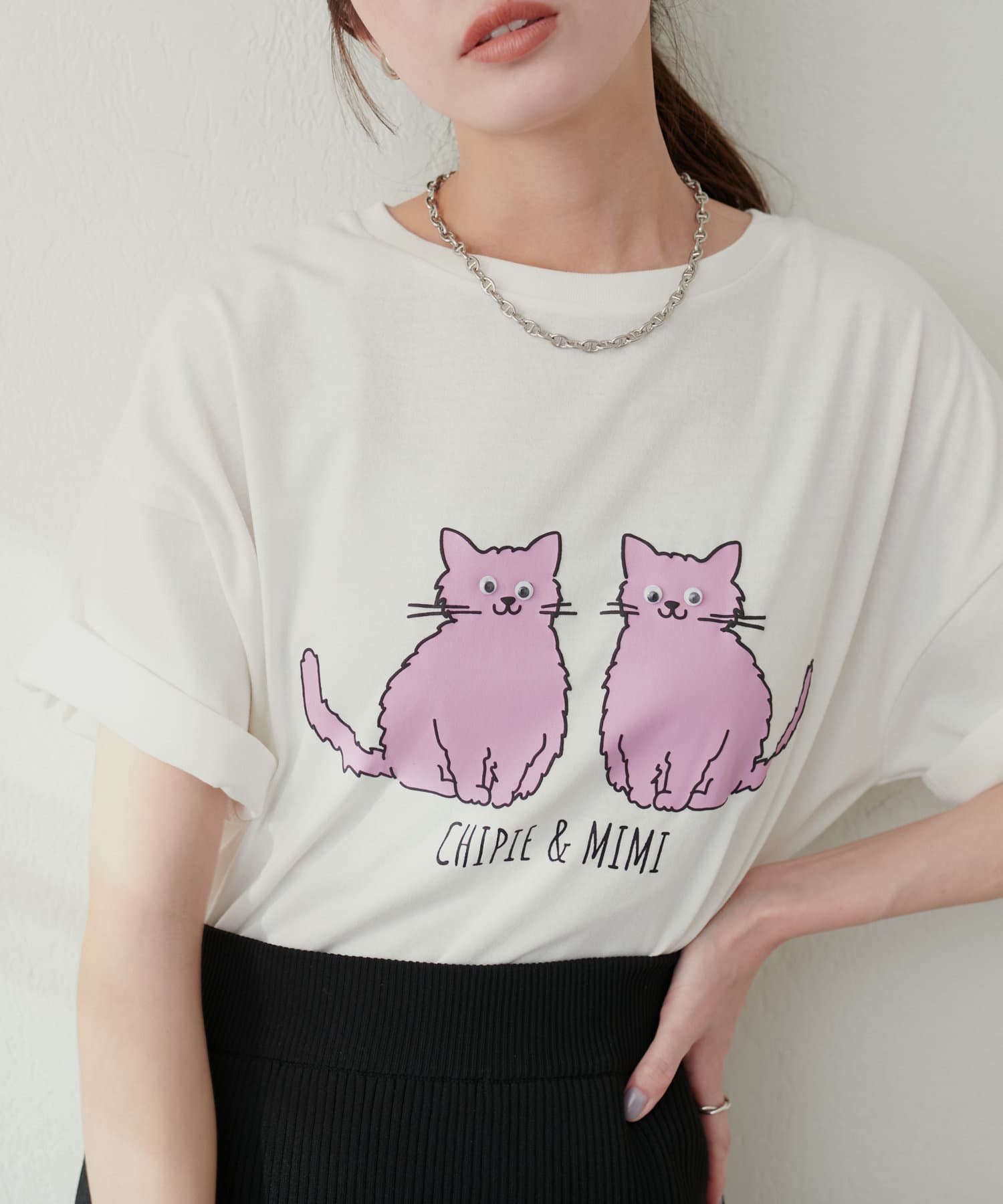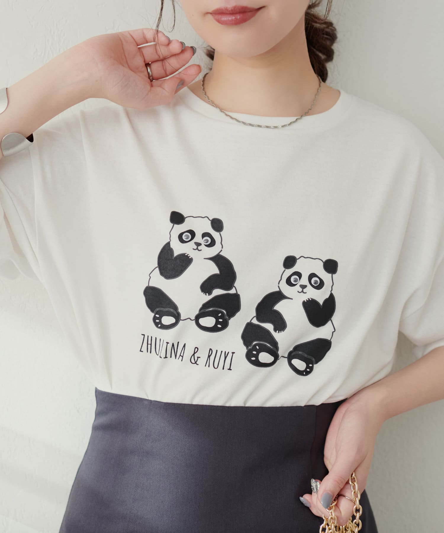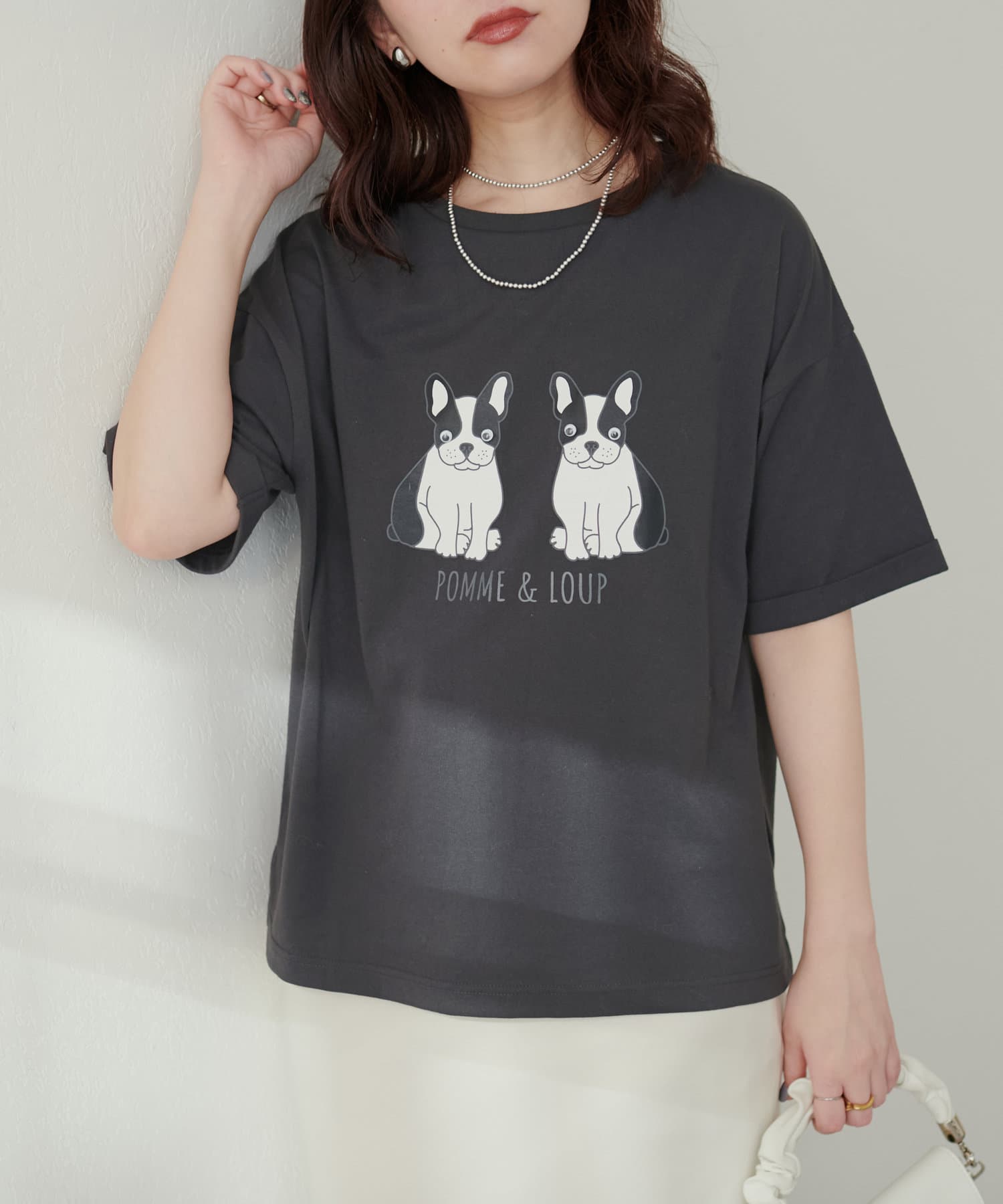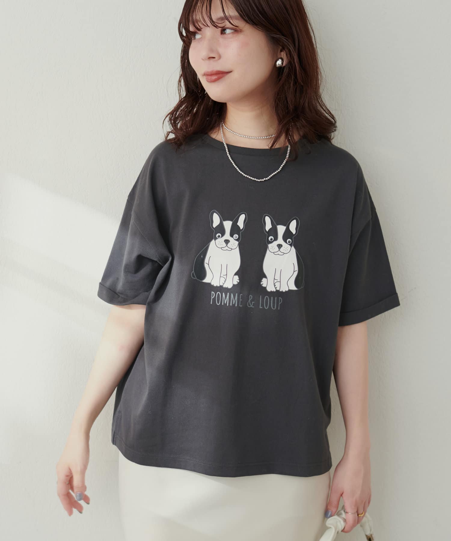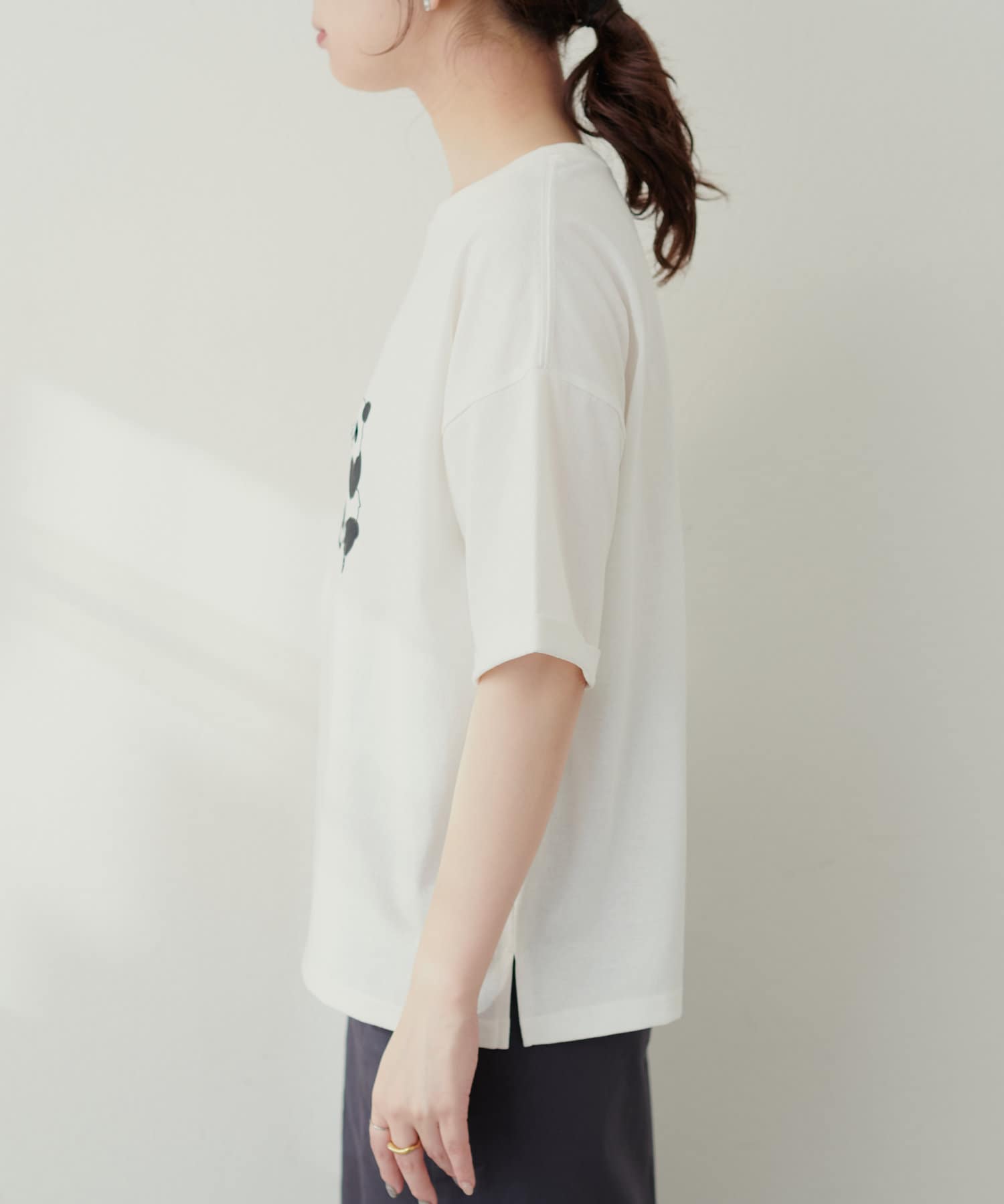 キュートなプリントなのでラフなスタイリングに合わせていただくのがおすすめ。