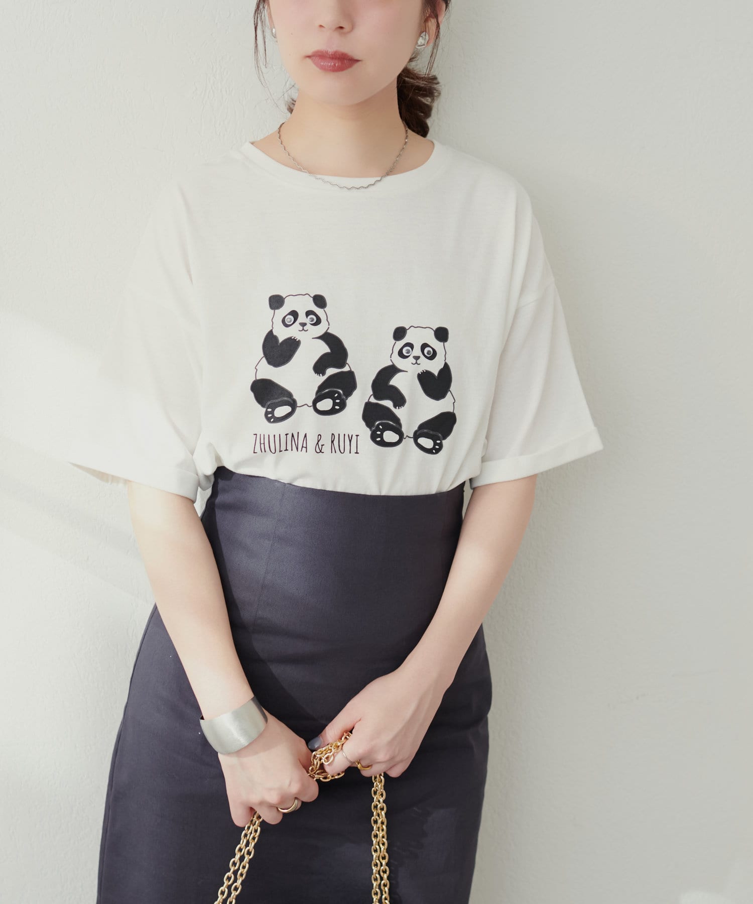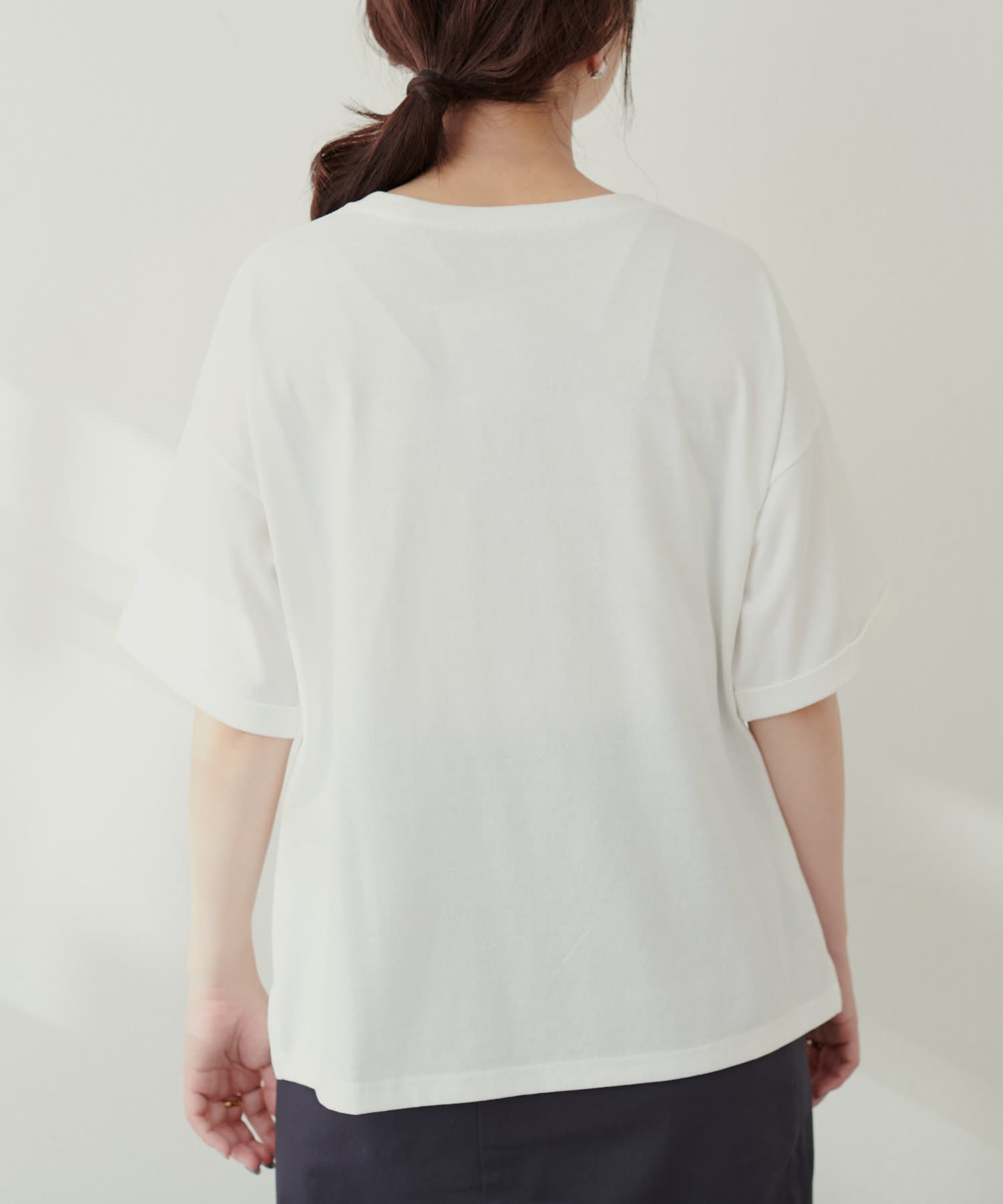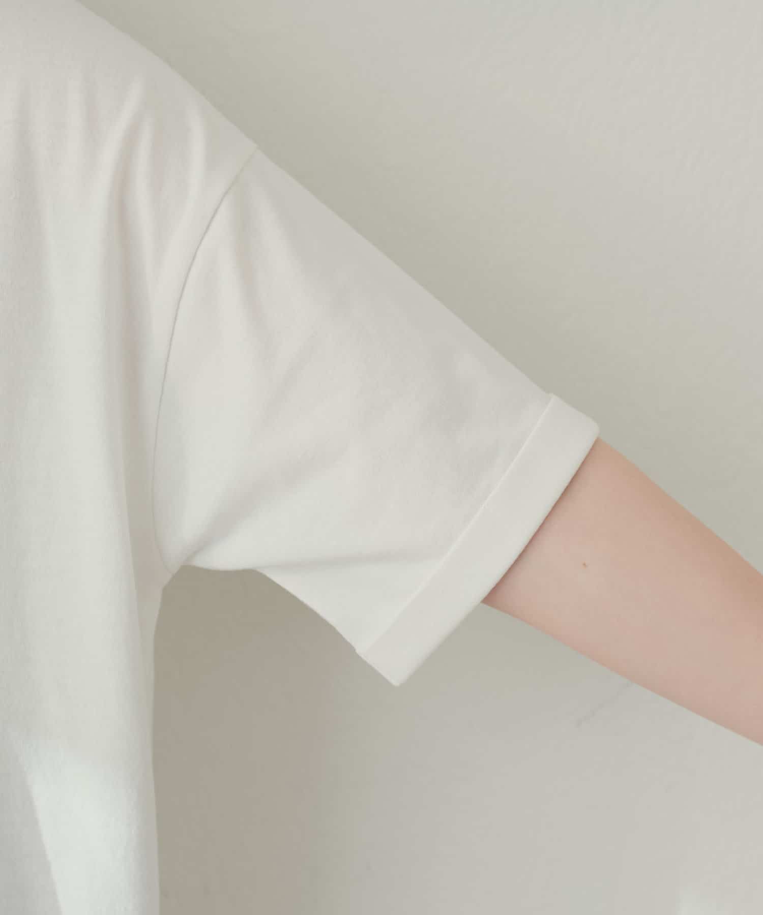 袖口はロールアップされており、二の腕周りがすっきりと見えるデザインに。