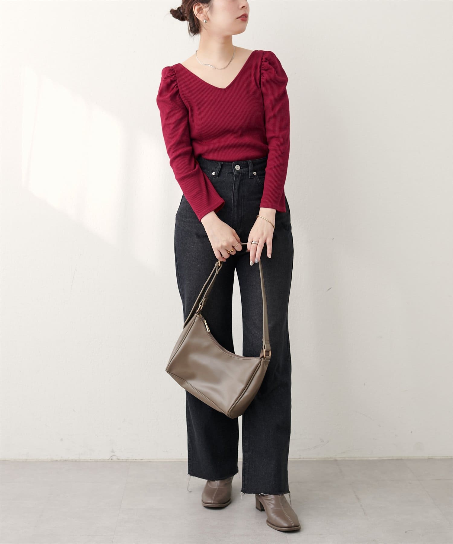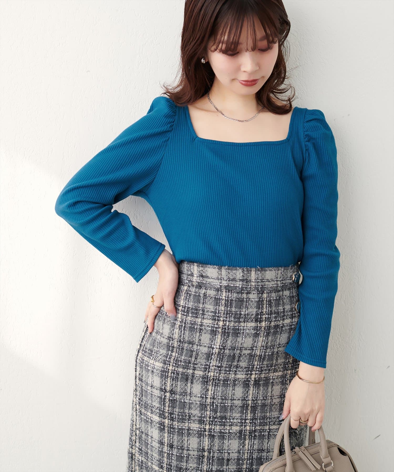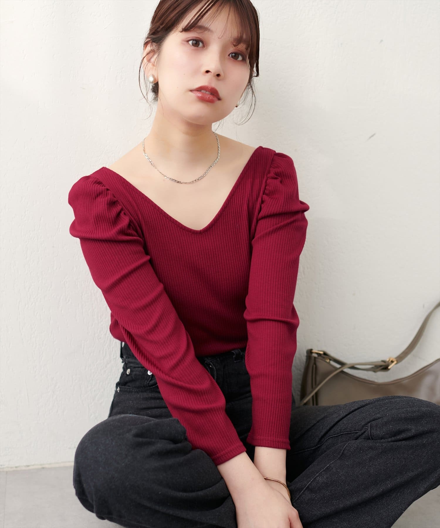 スクエアネック、Vネックと2WAYでお召頂けるトップス。