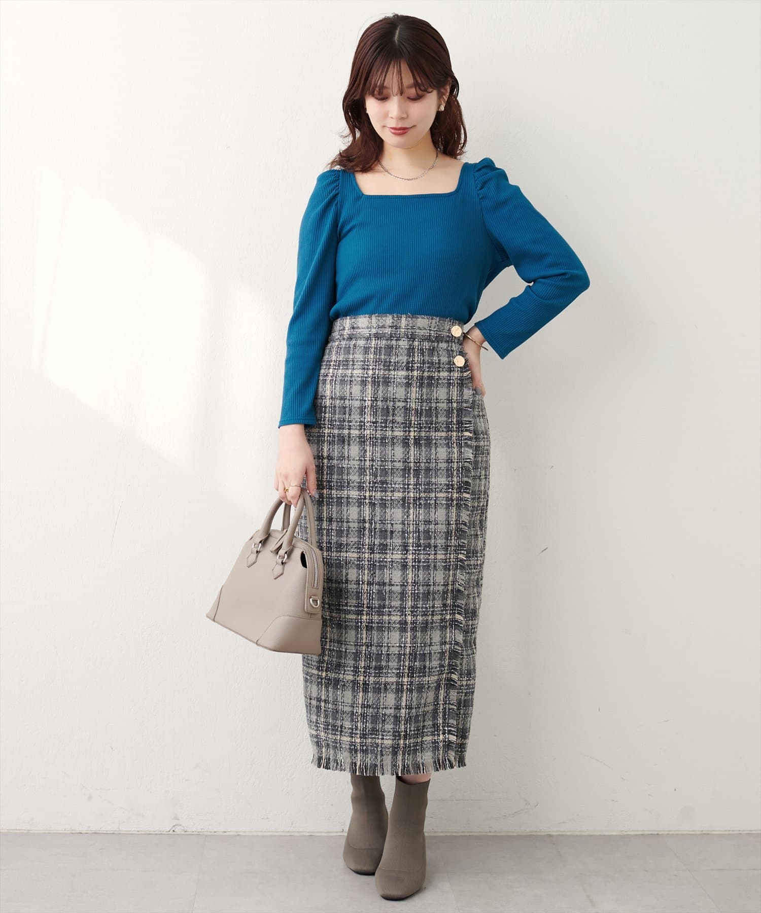 ボトム選ばずタイトスカートやマーメイドスカートを合わせてフェミニンに◎
