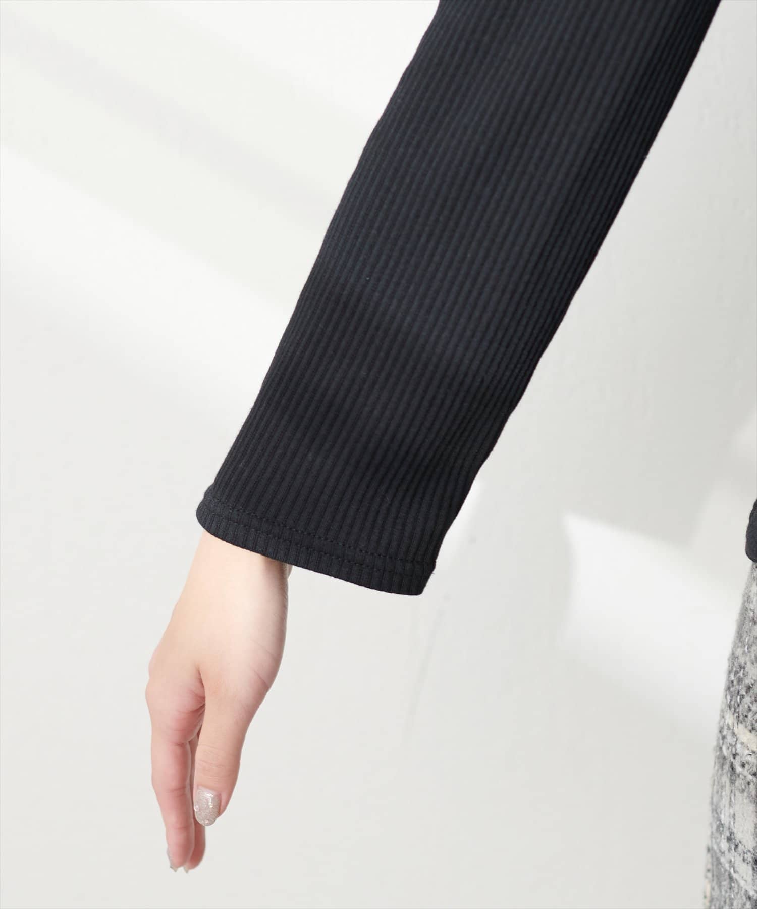 デコルテの抜け感が生まれ、すっきり着ていただけて女性らしく程よい肌見せに。
