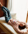 ショート丈アイテムなので、ハイウエストのボトムスと相性抜群。