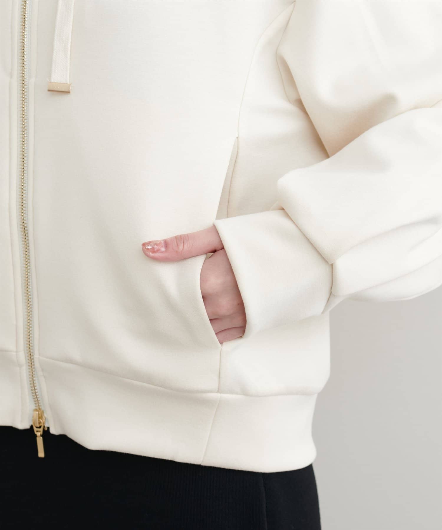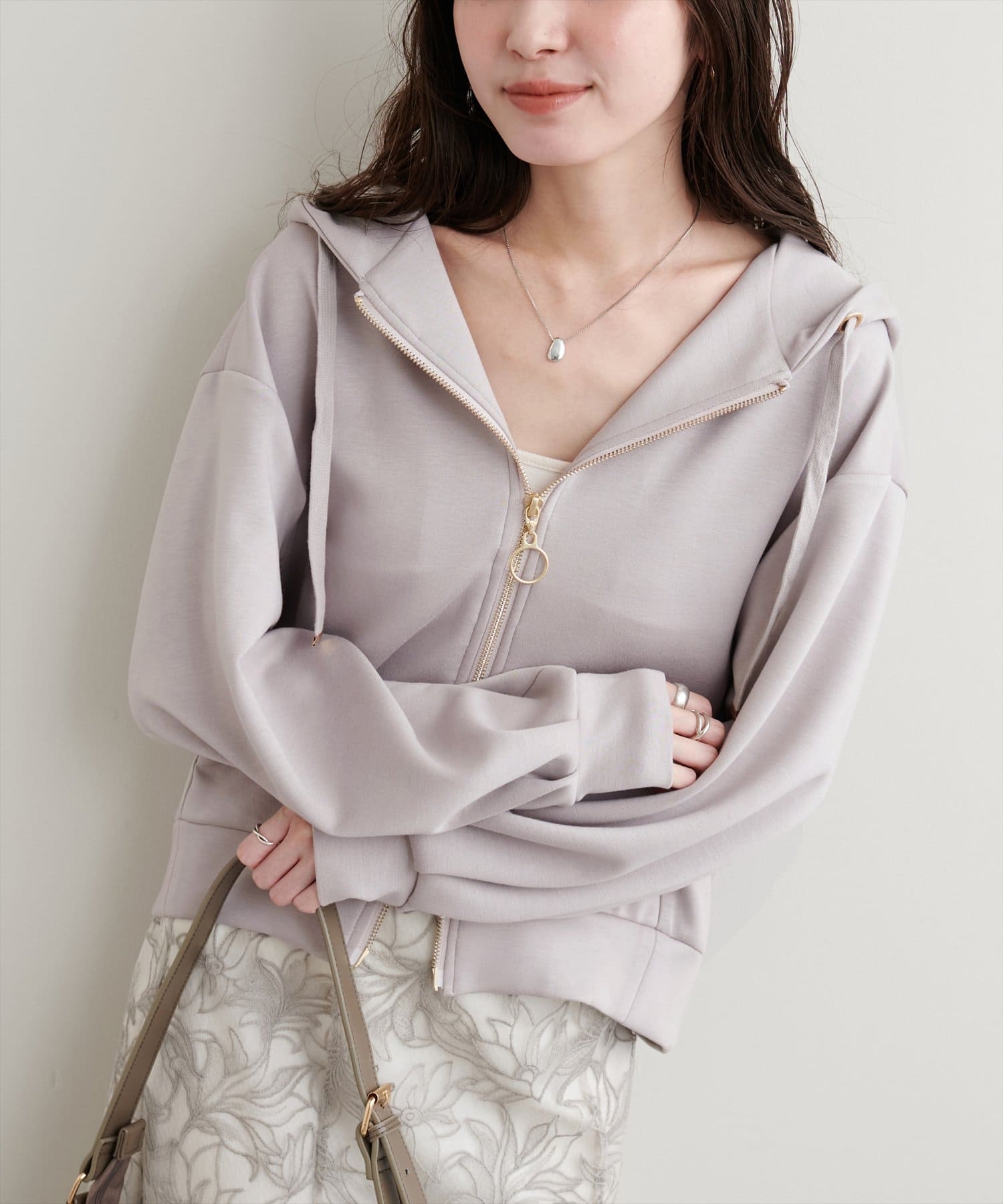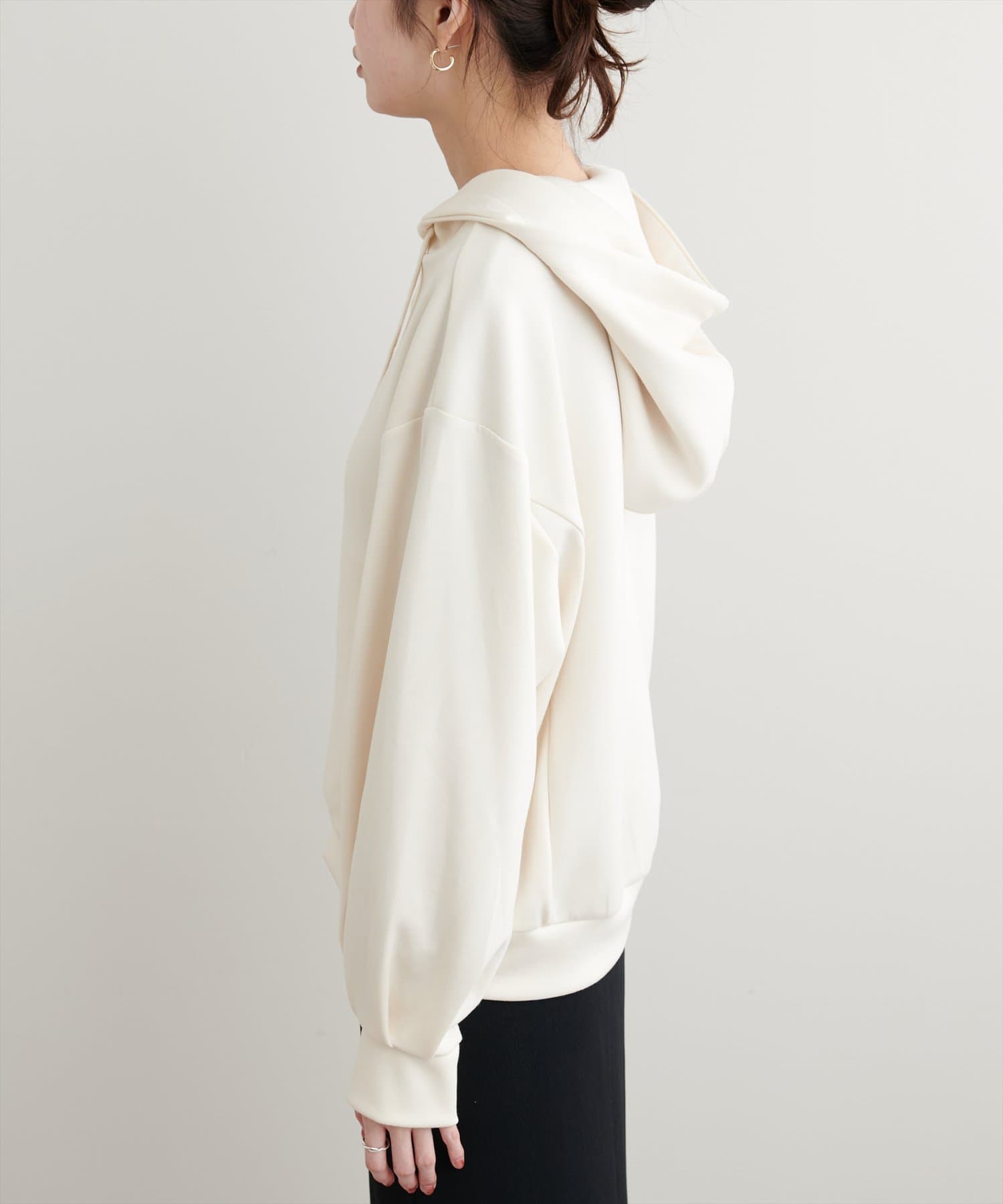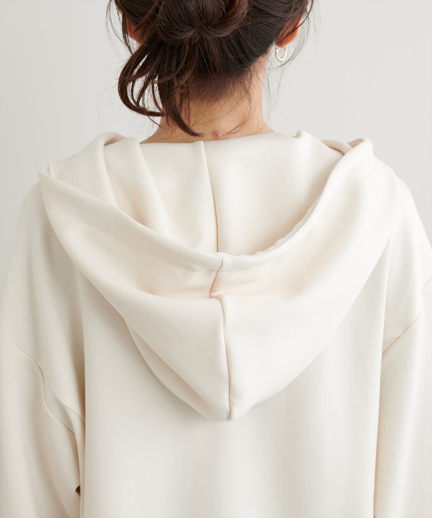 滑らかでもっちりとした素材が特徴のフードパーカー。