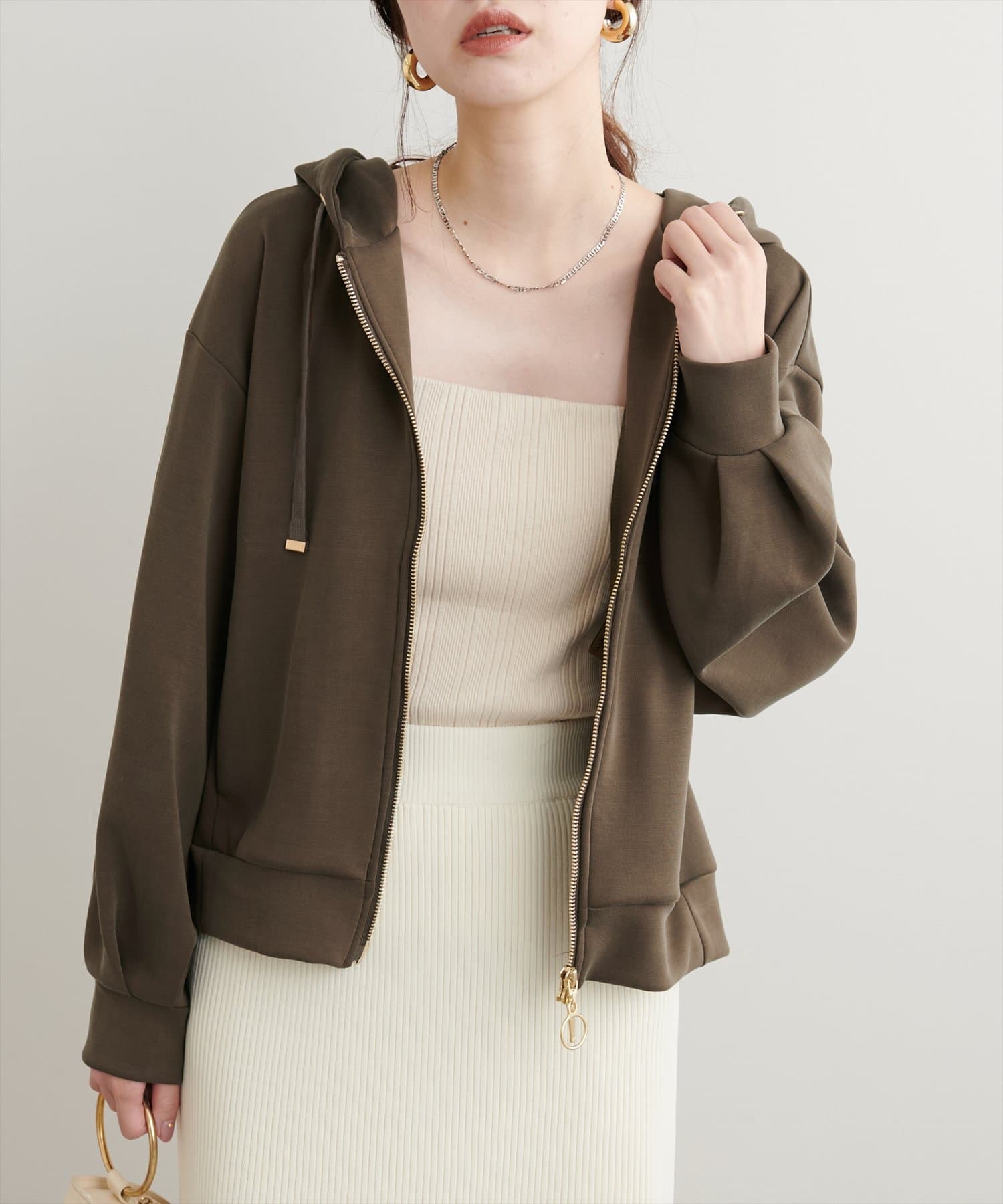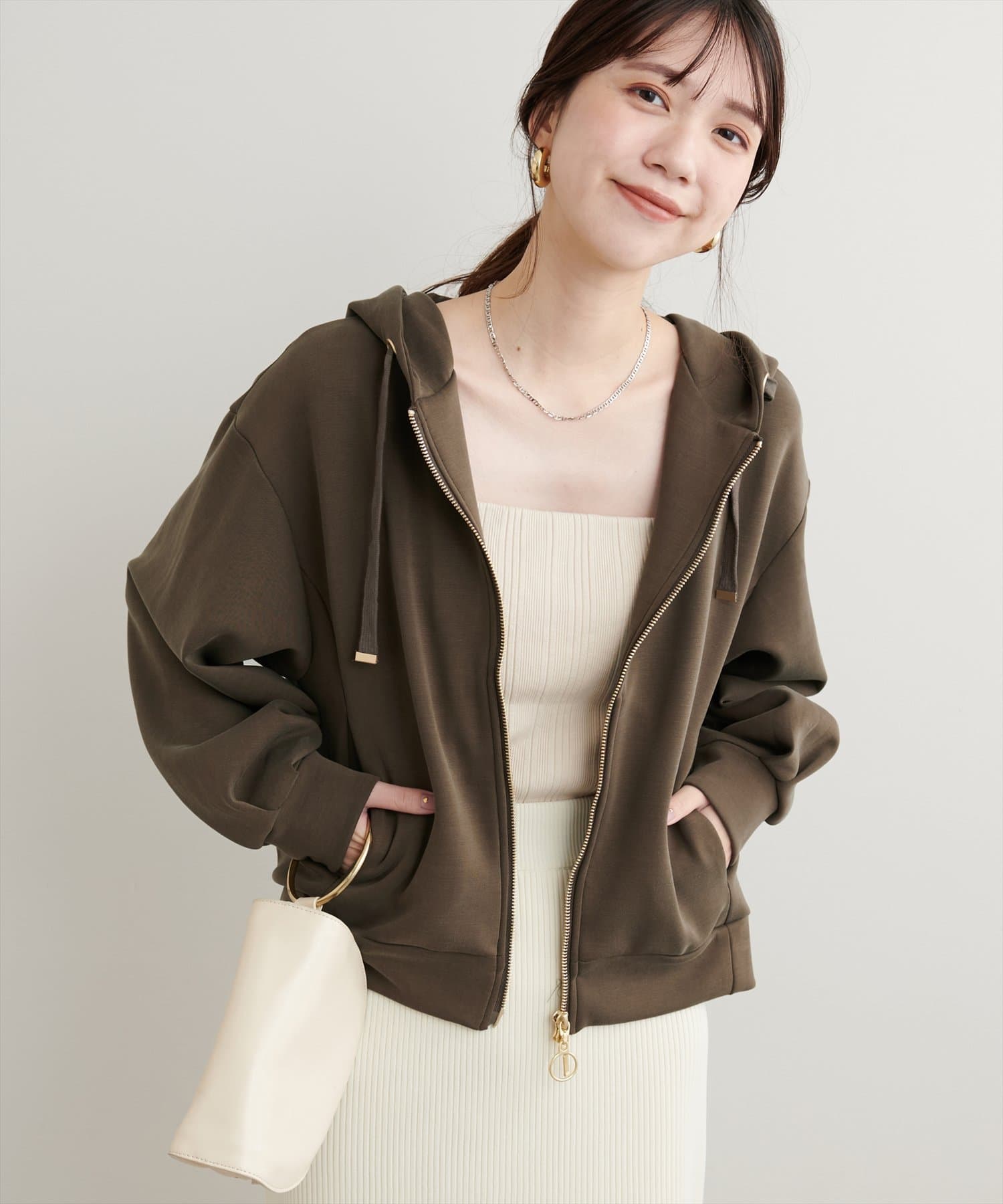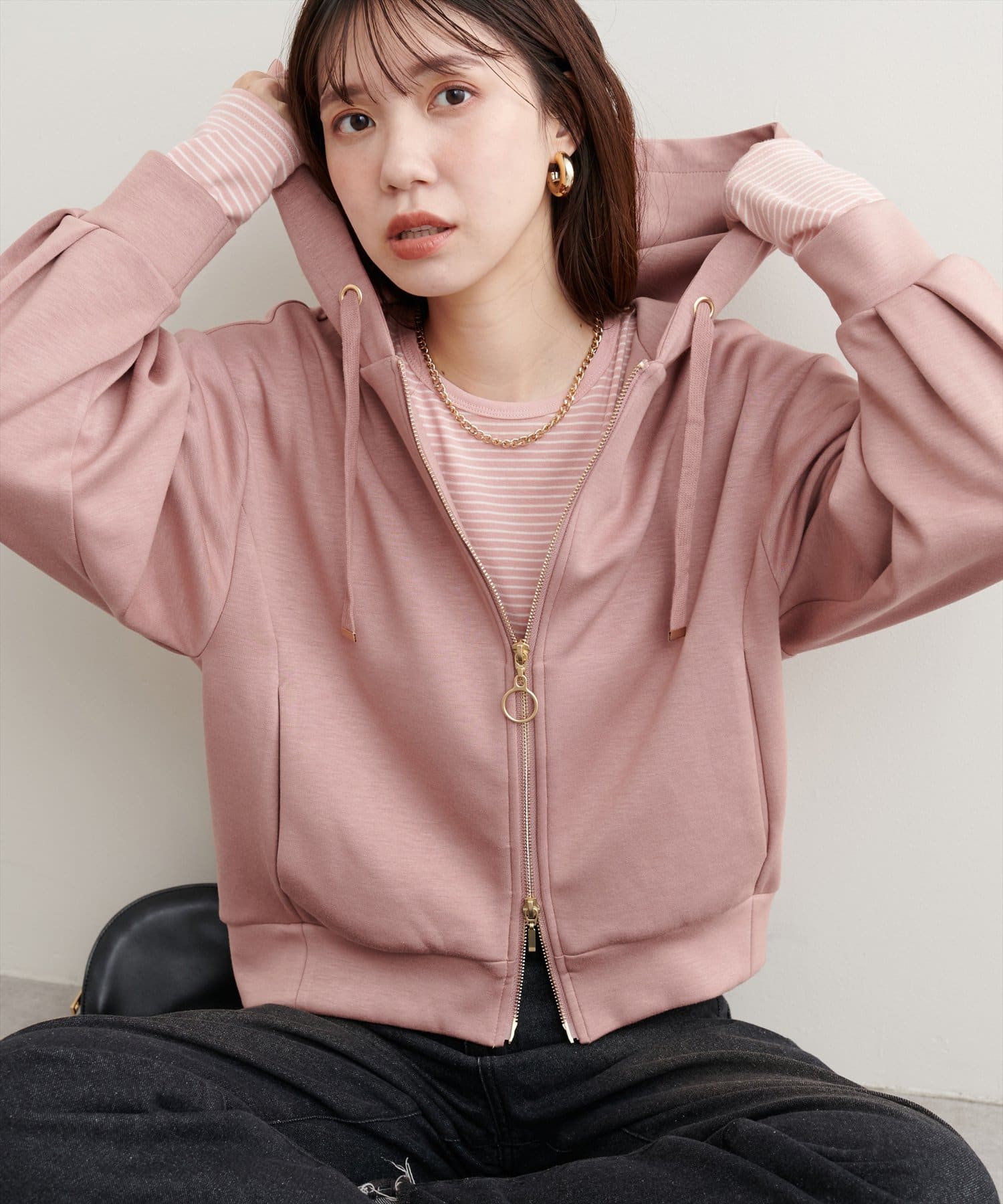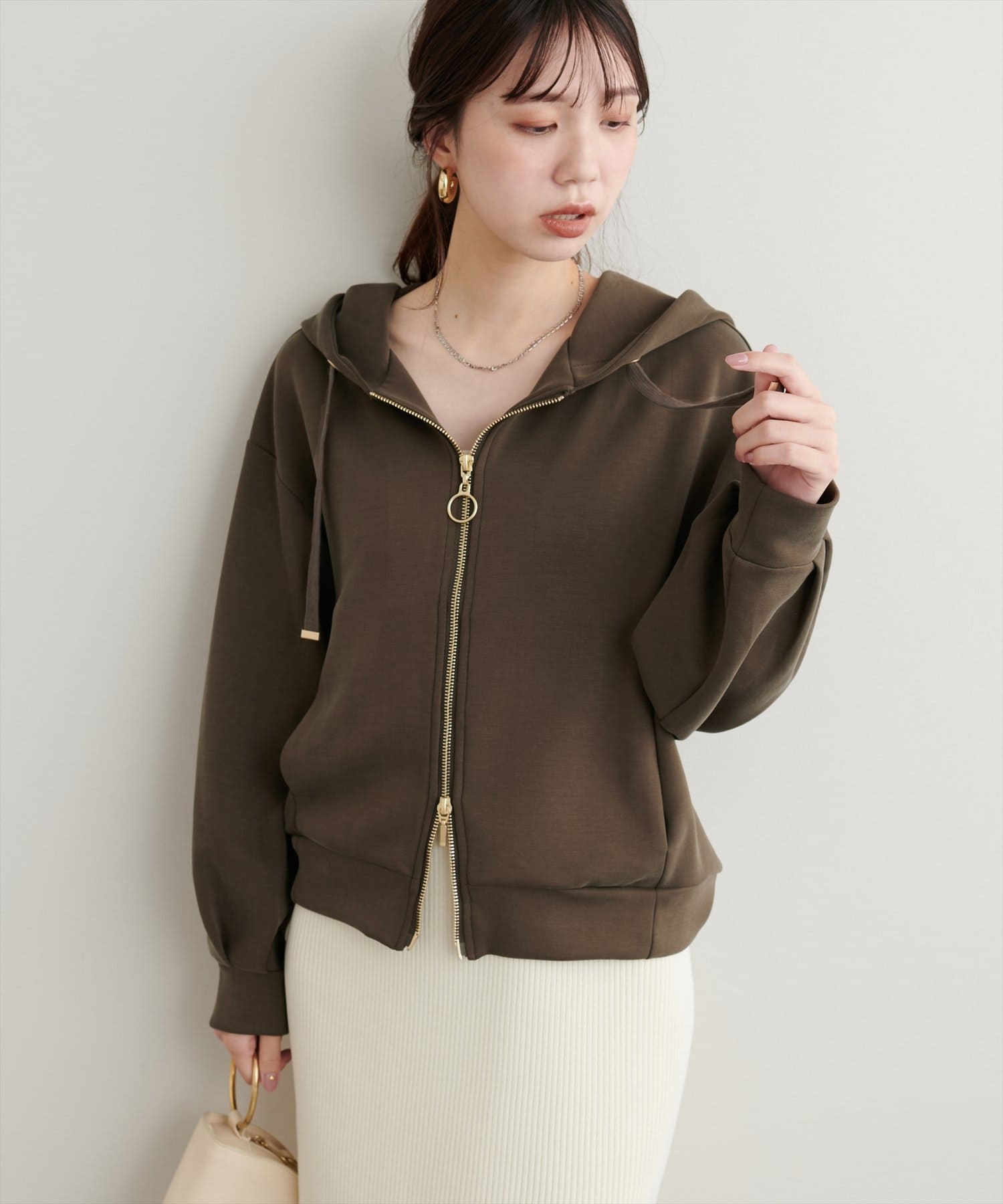 滑らかでもっちりとした素材が特徴のフードパーカー。