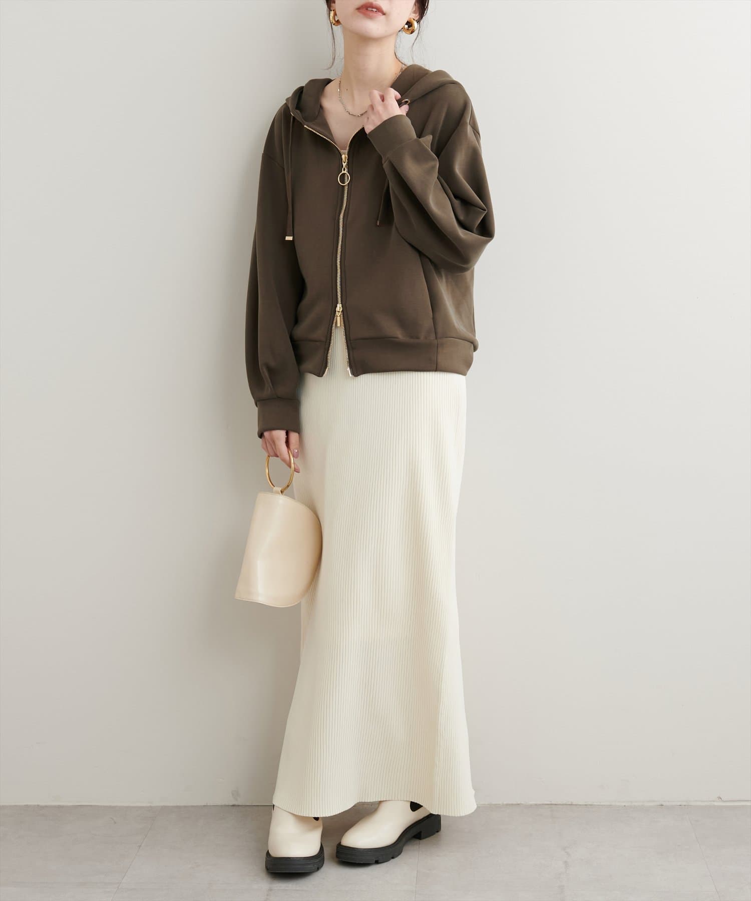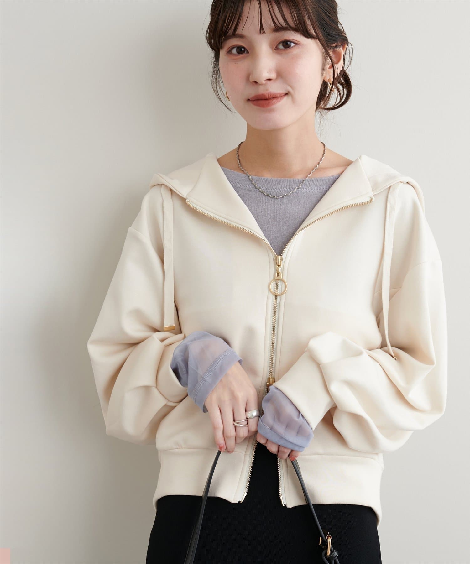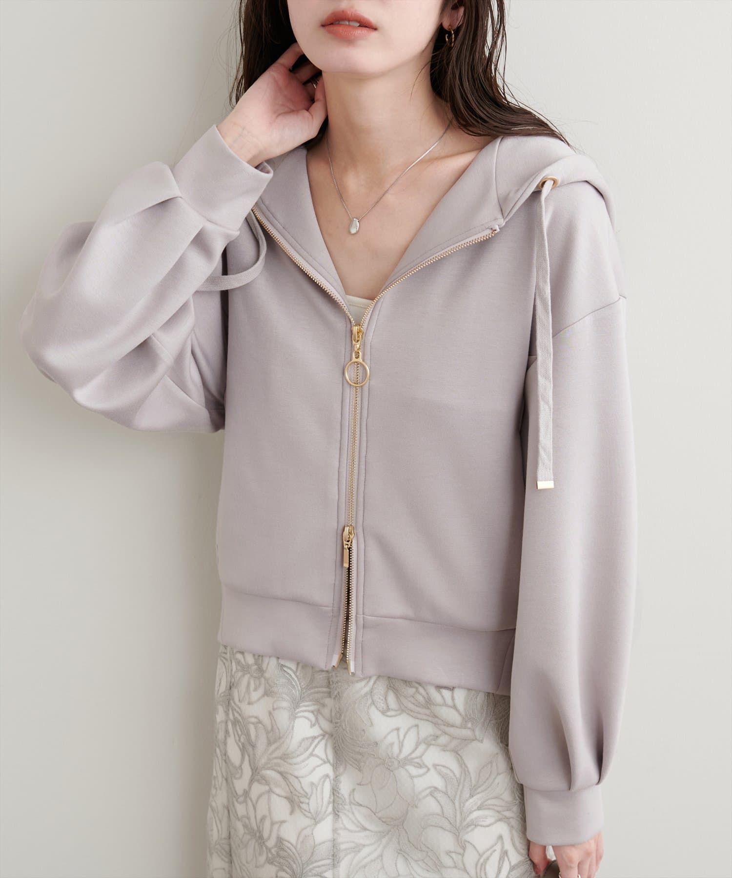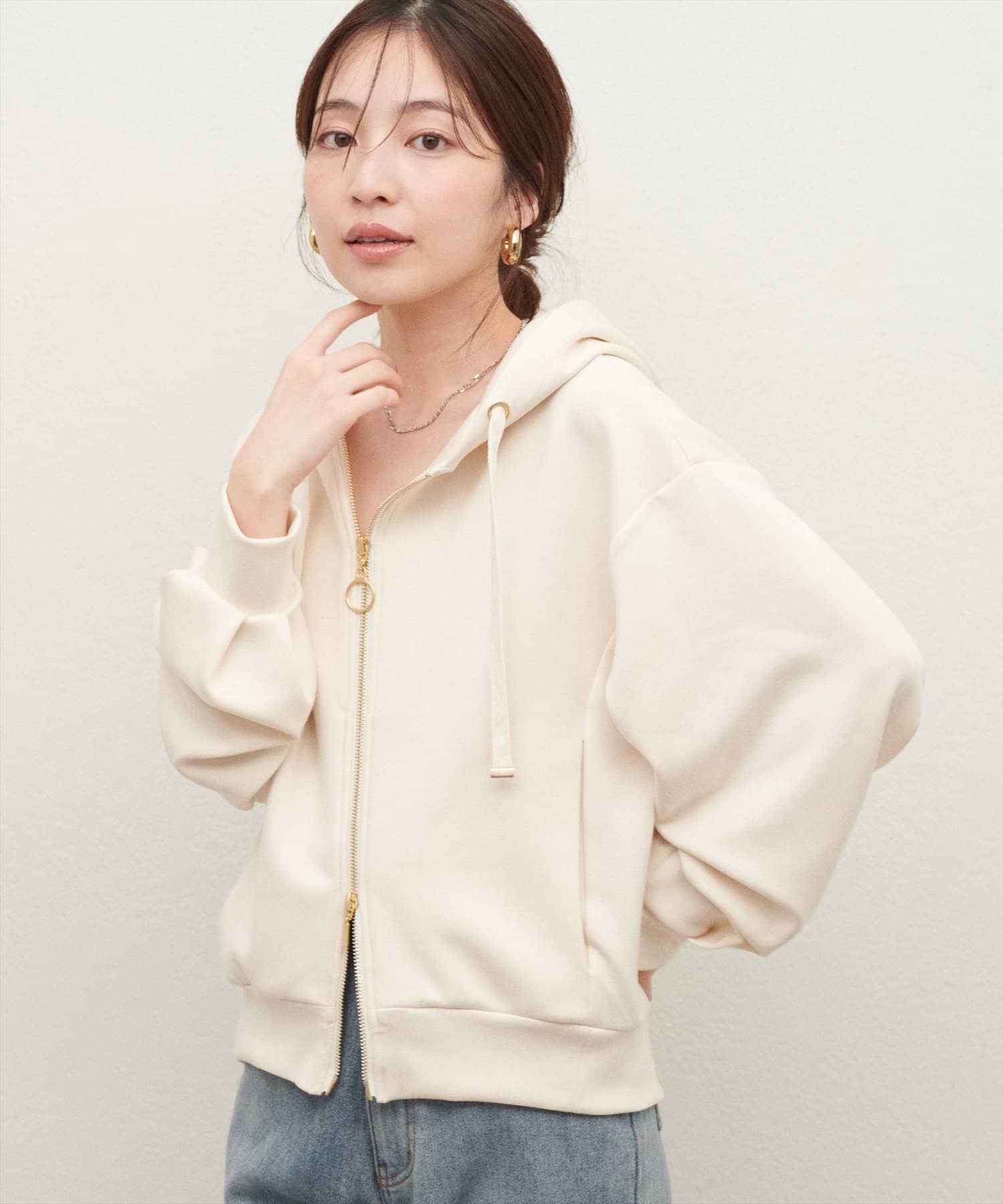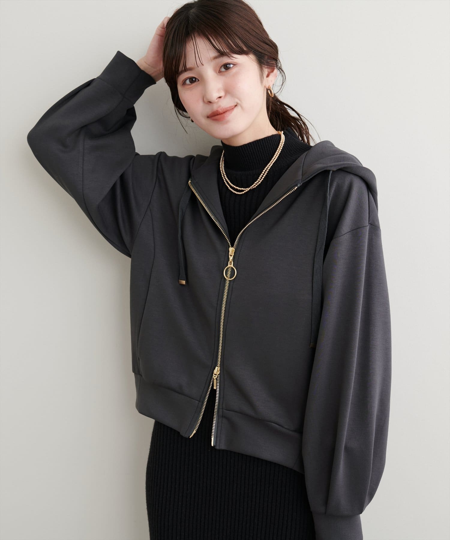 滑らかでもっちりとした素材が特徴のフードパーカー。