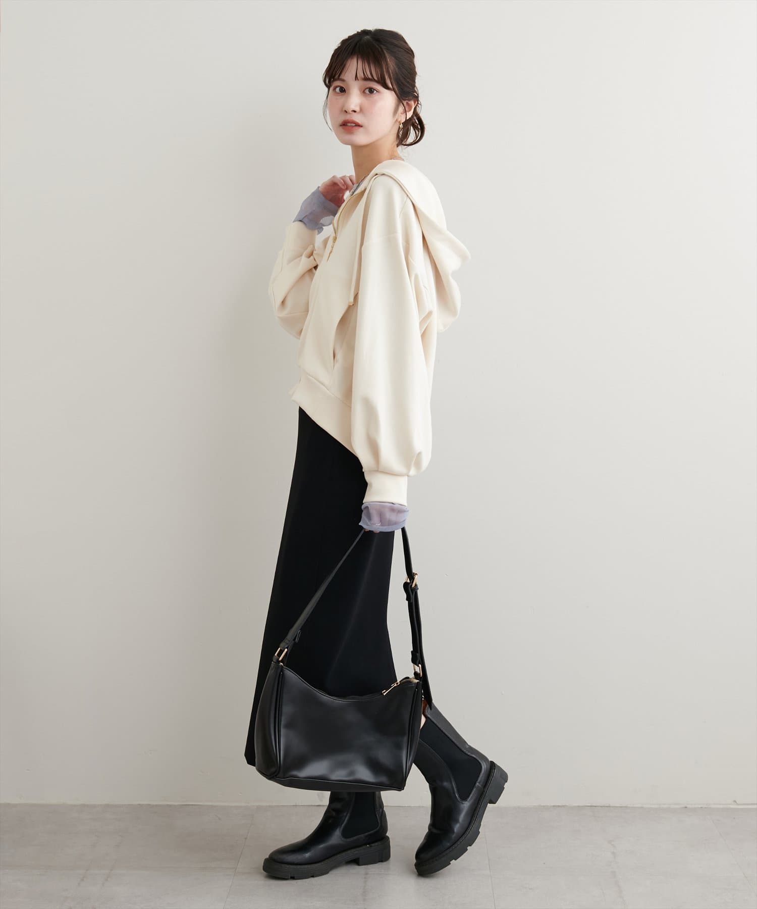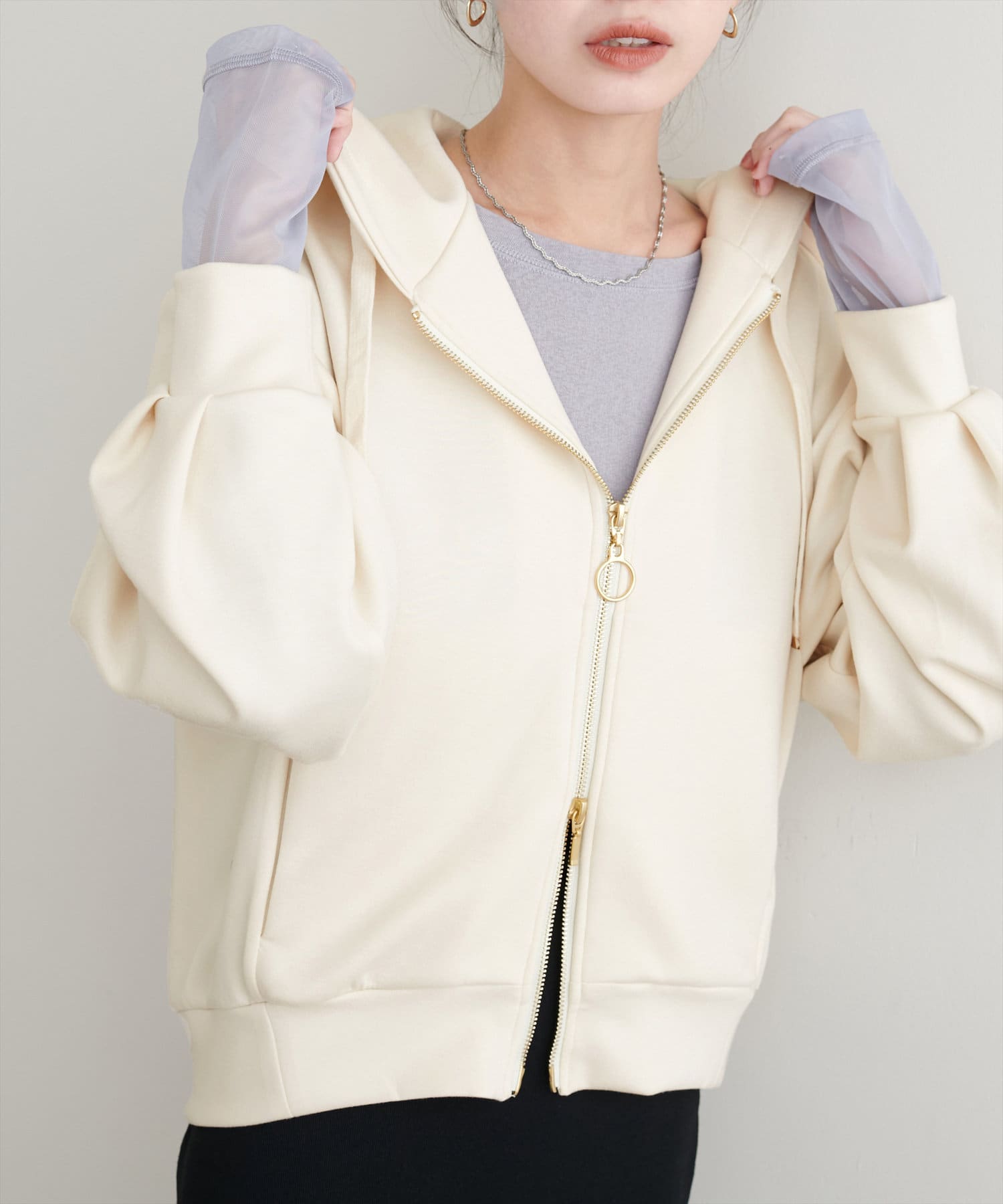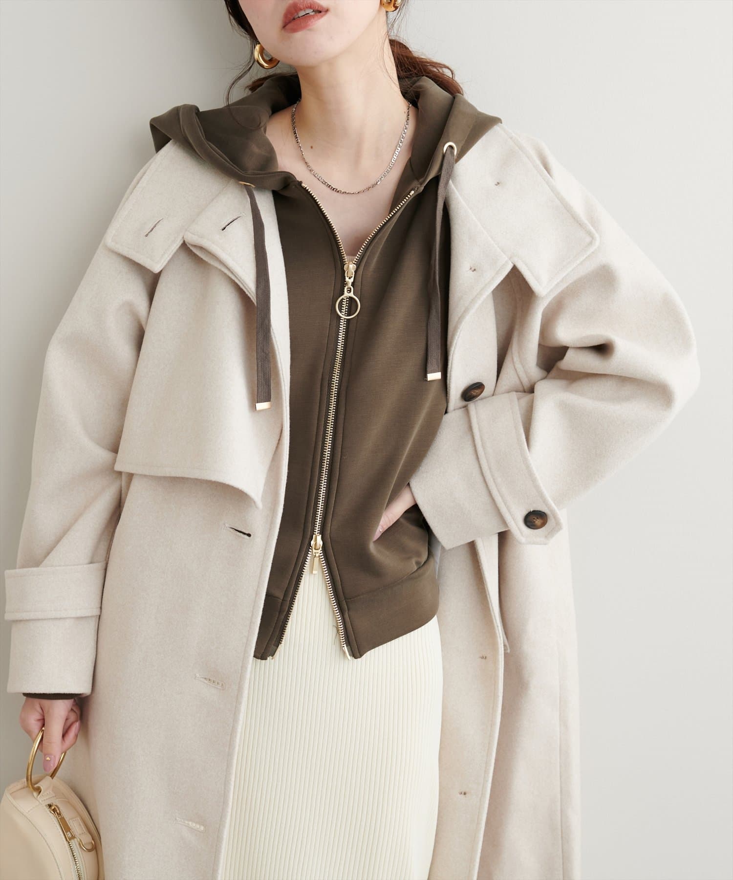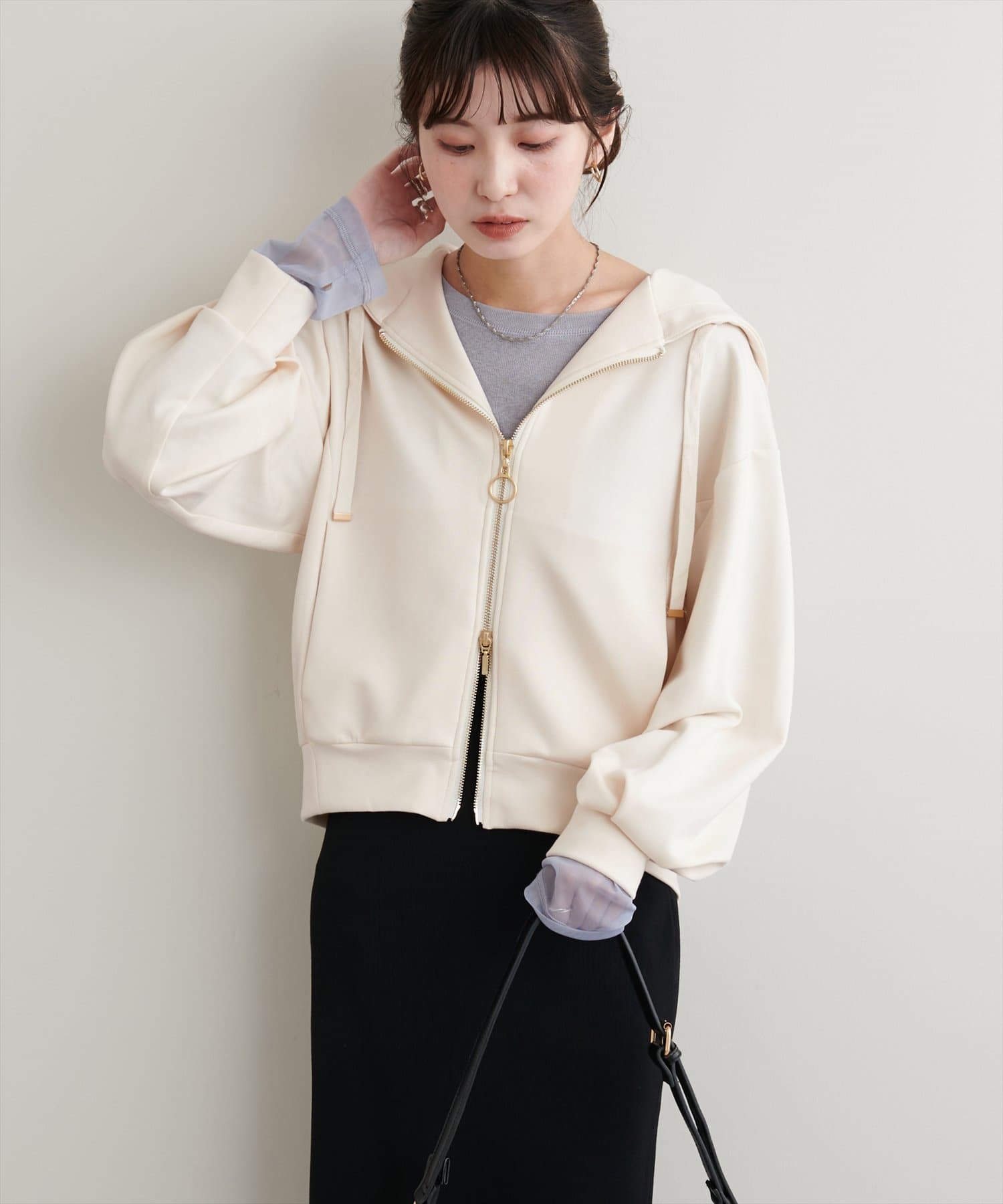 滑らかでもっちりとした素材が特徴のフードパーカー。