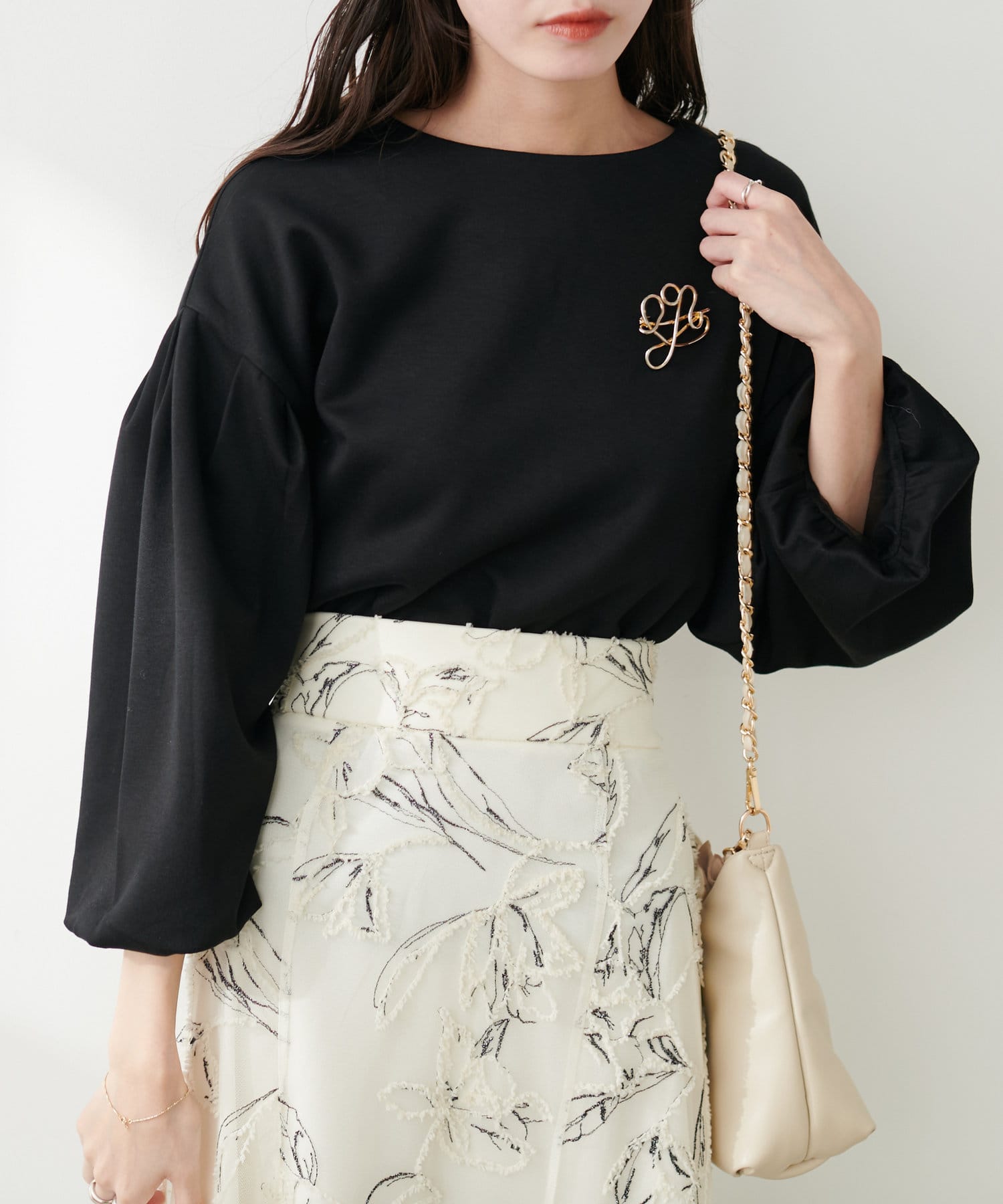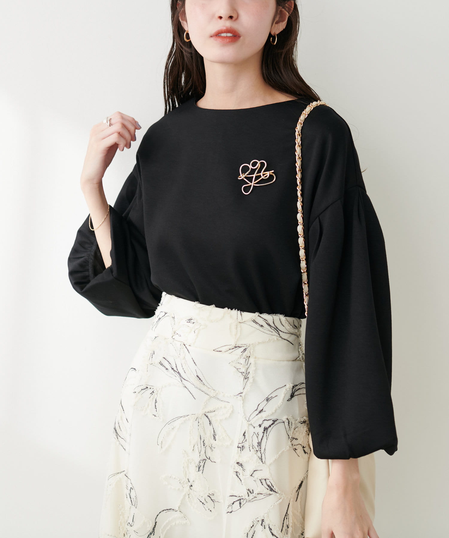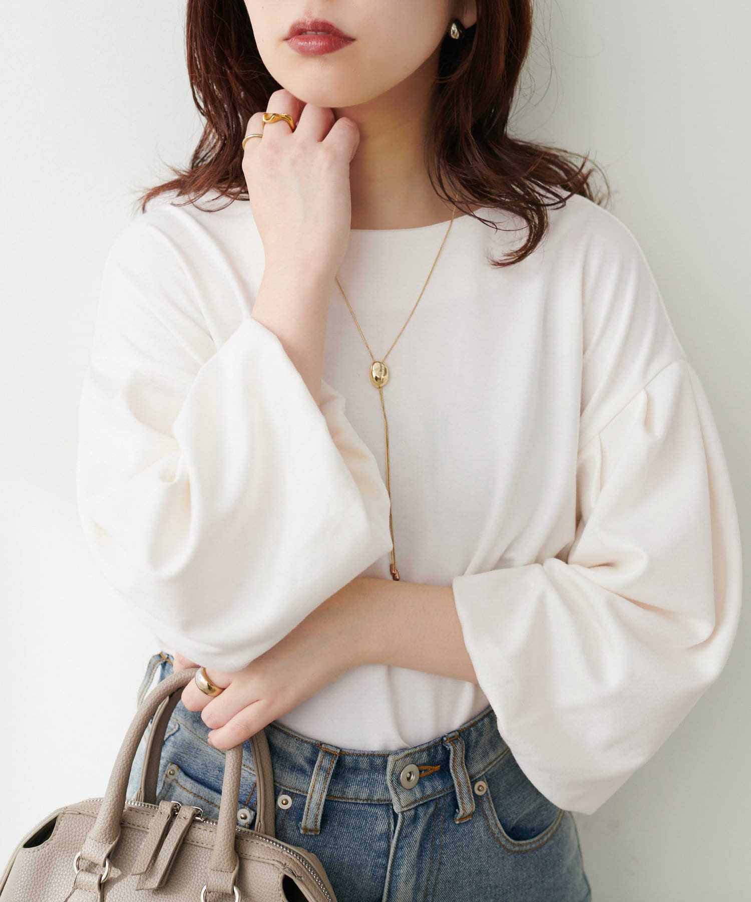 【WEB限定】パール付きバルーンスリーブTOPS