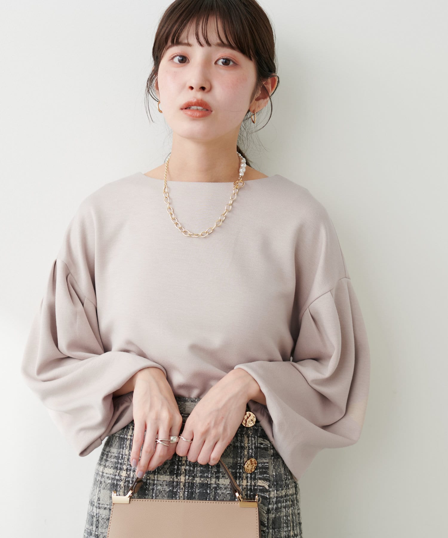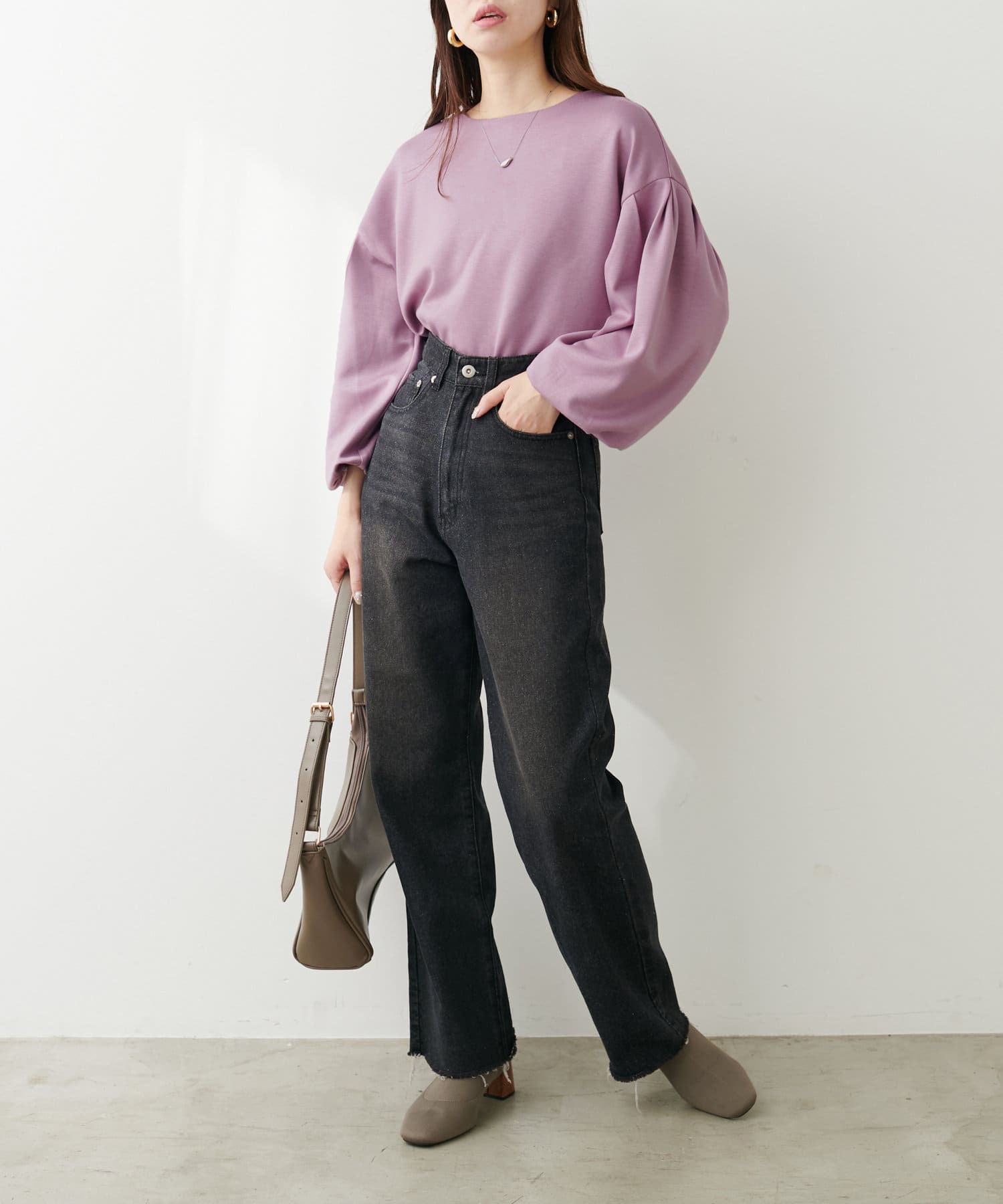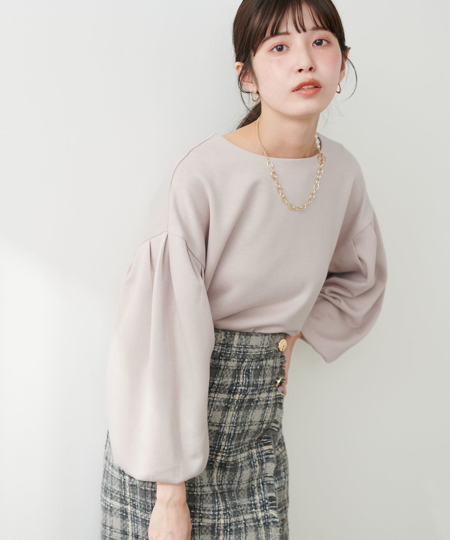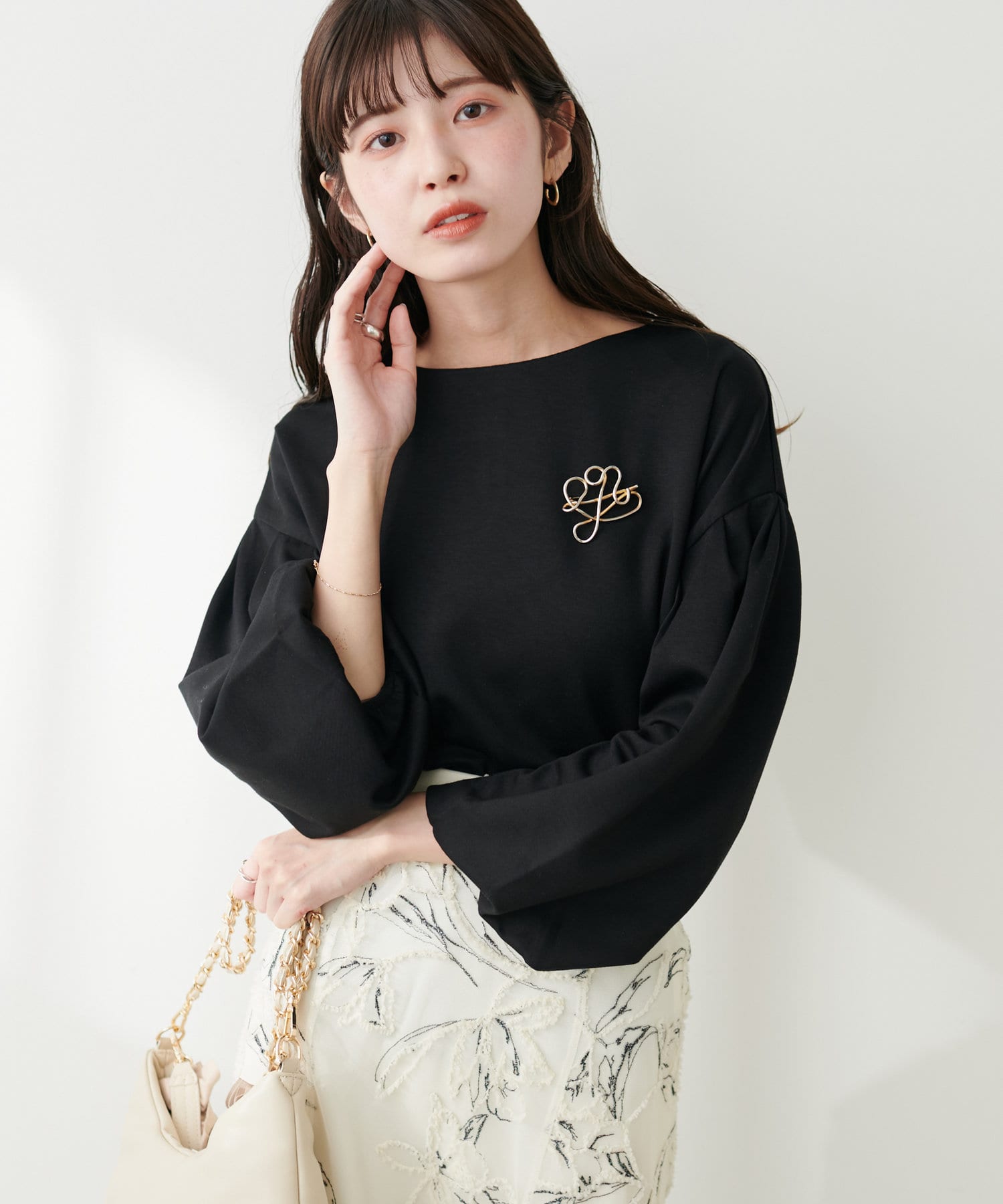 【WEB限定】パール付きバルーンスリーブTOPS