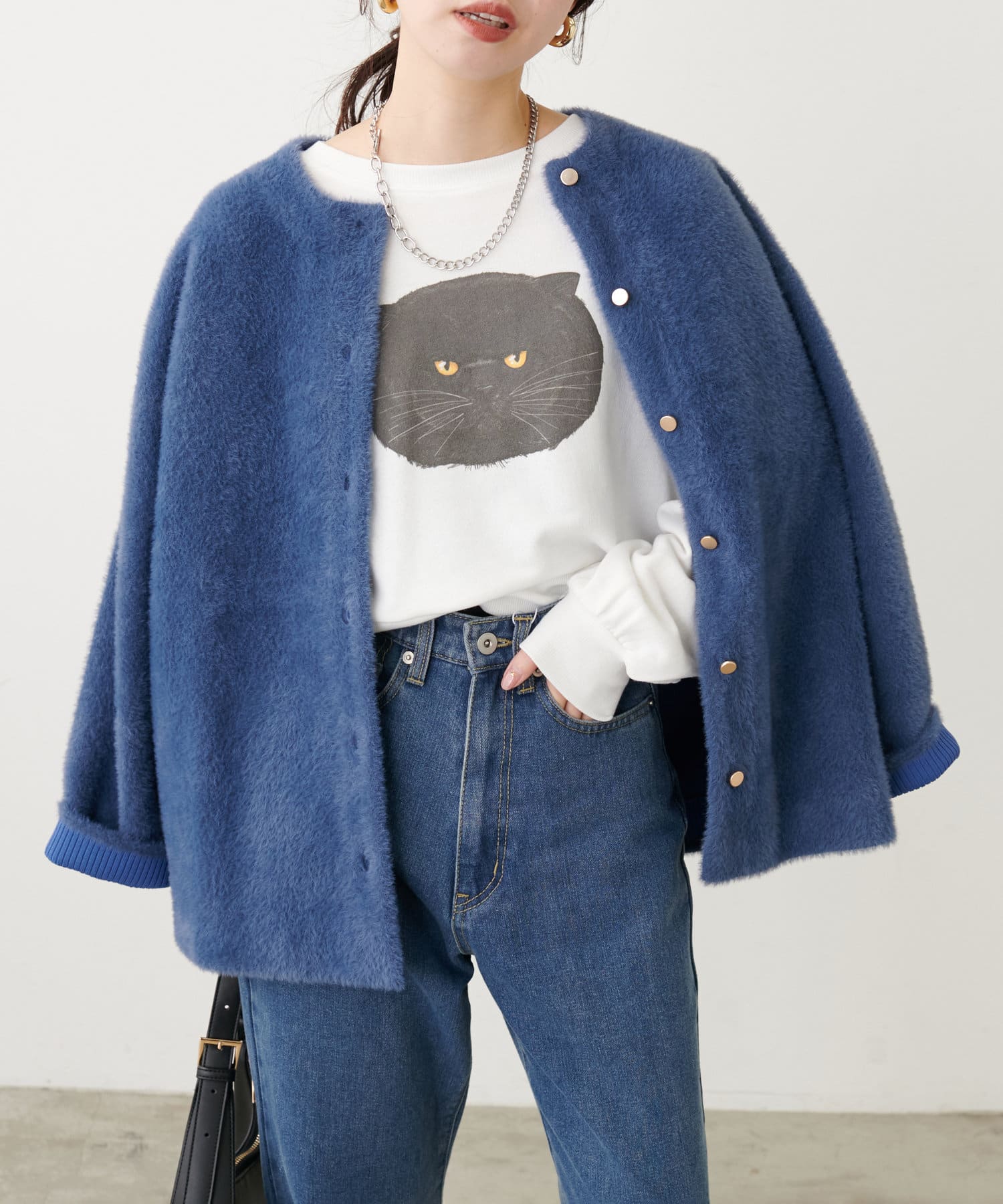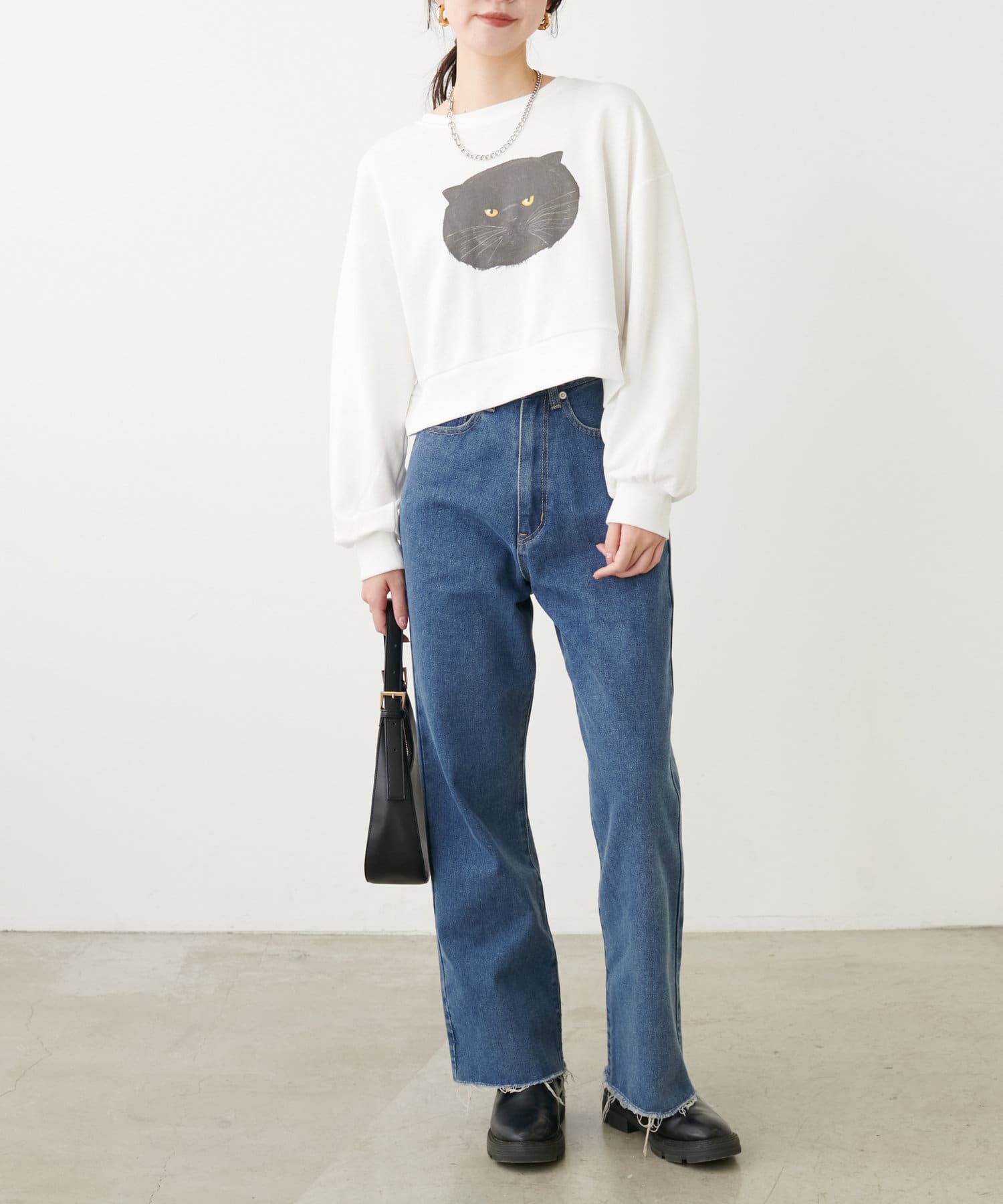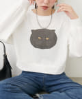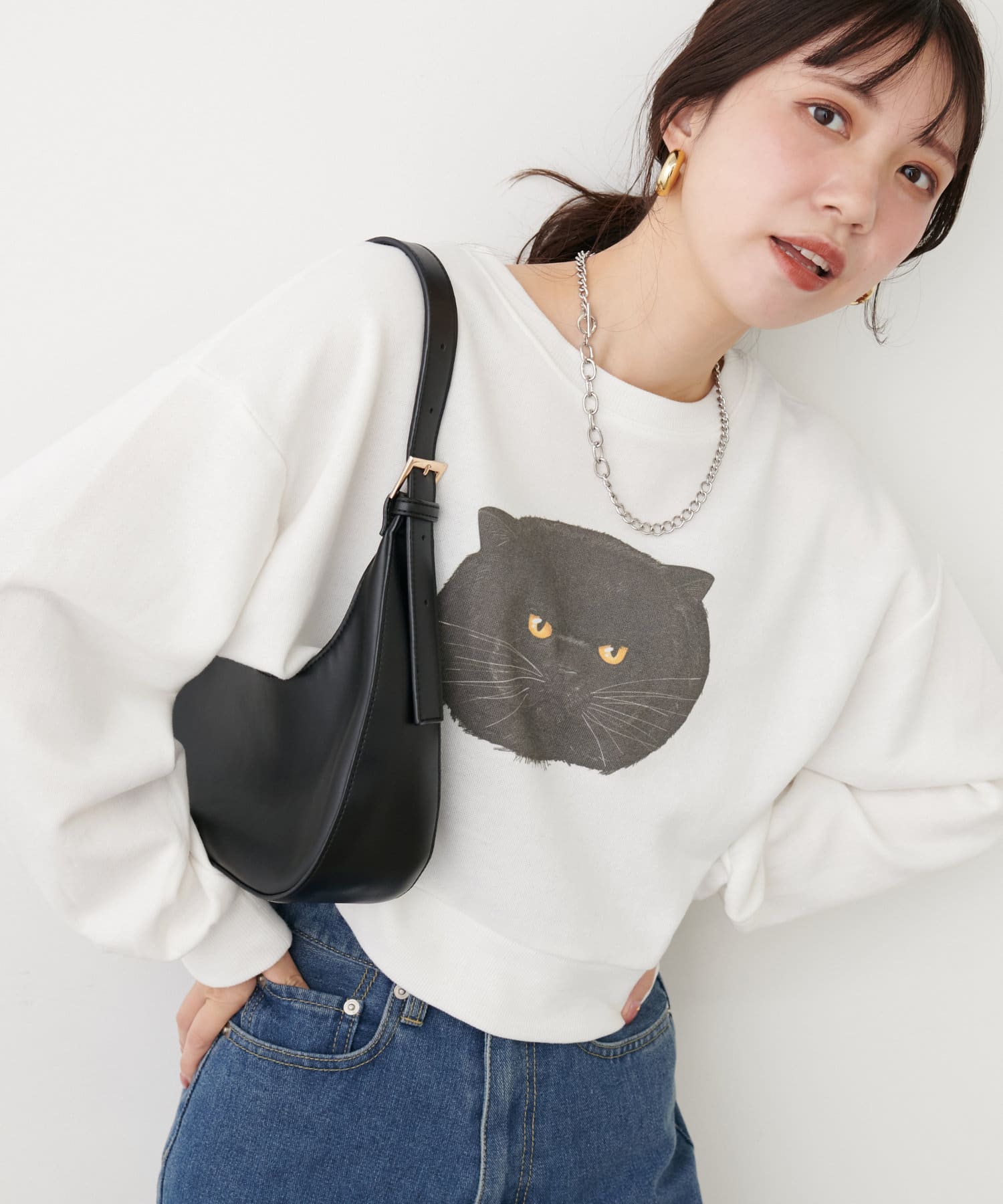 アンニュイな雰囲気のジト目ねこのプリントが可愛らしく、コーディネートのアクセントに。