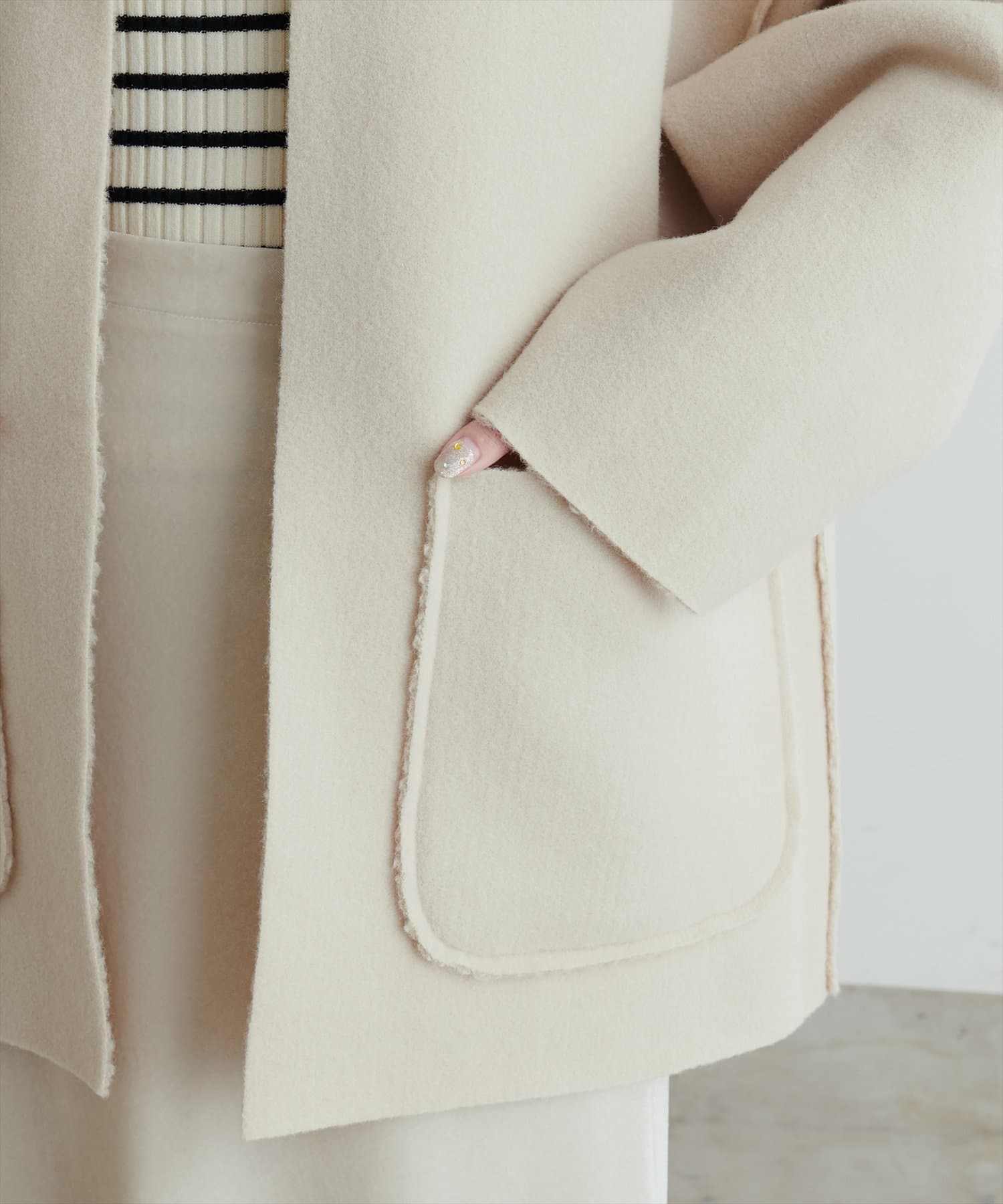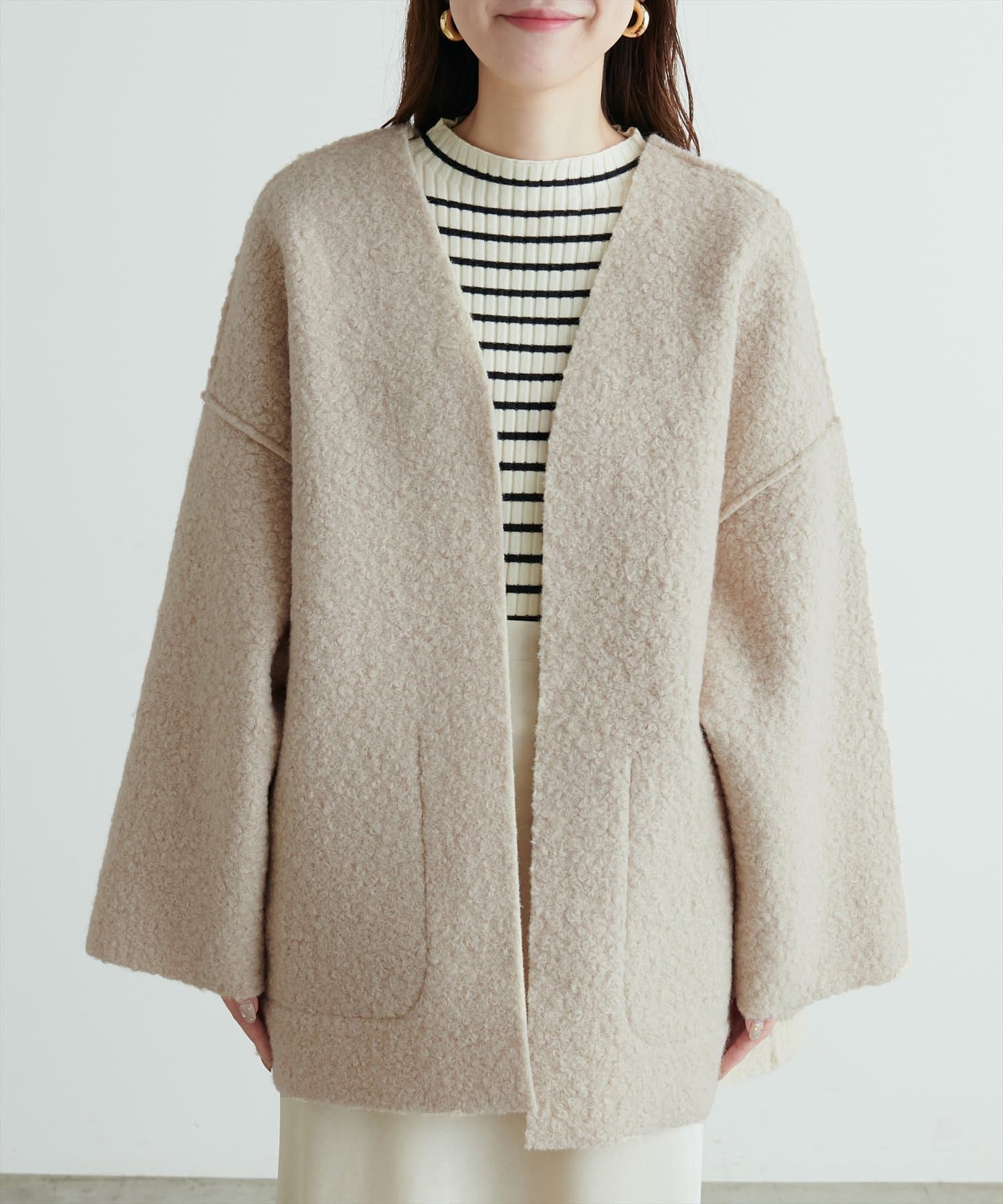TOP > natural couture > レディース > ジャケット/アウター > ノーカラージャケット > リングウールリバーシブルトッパー