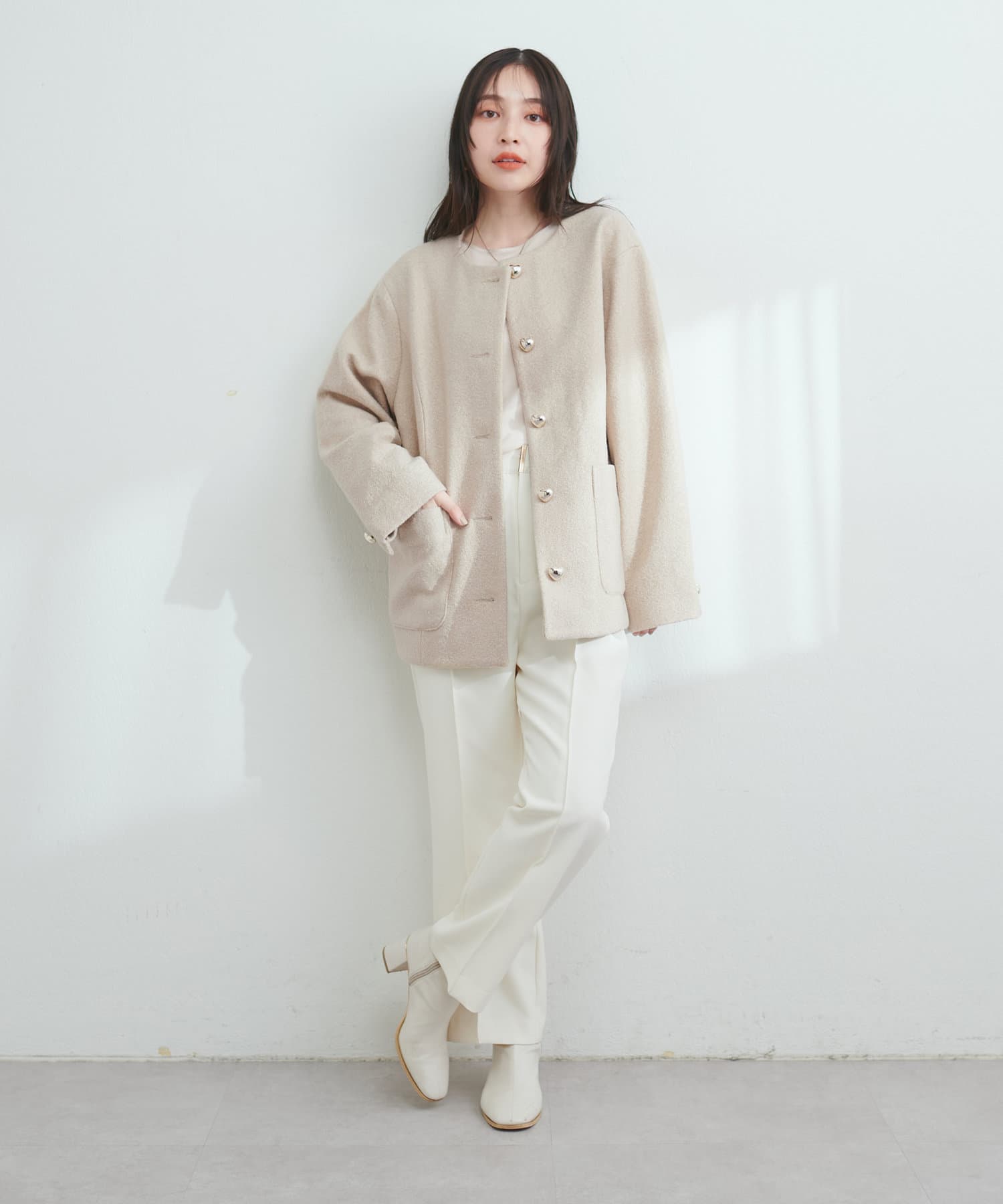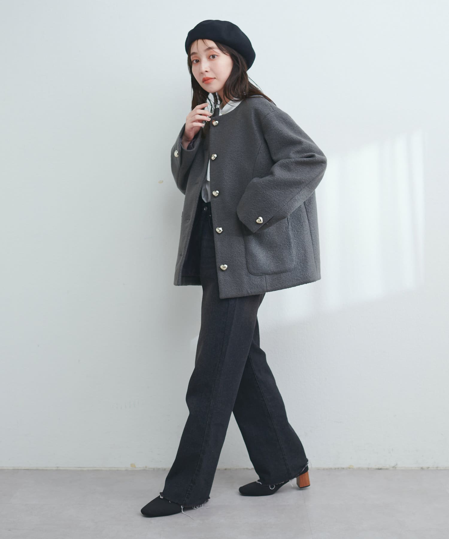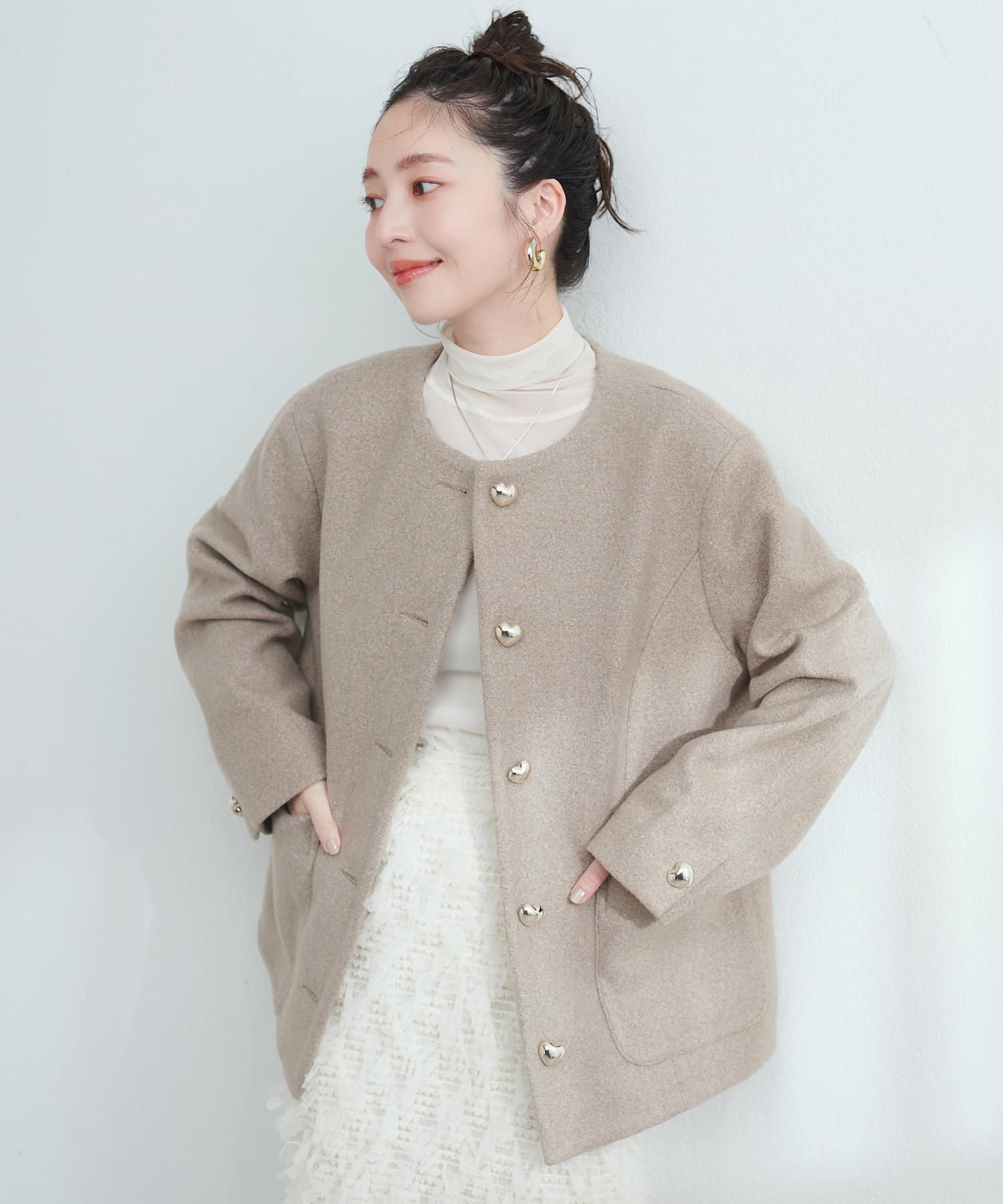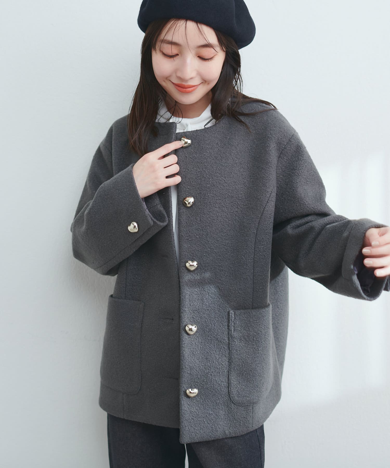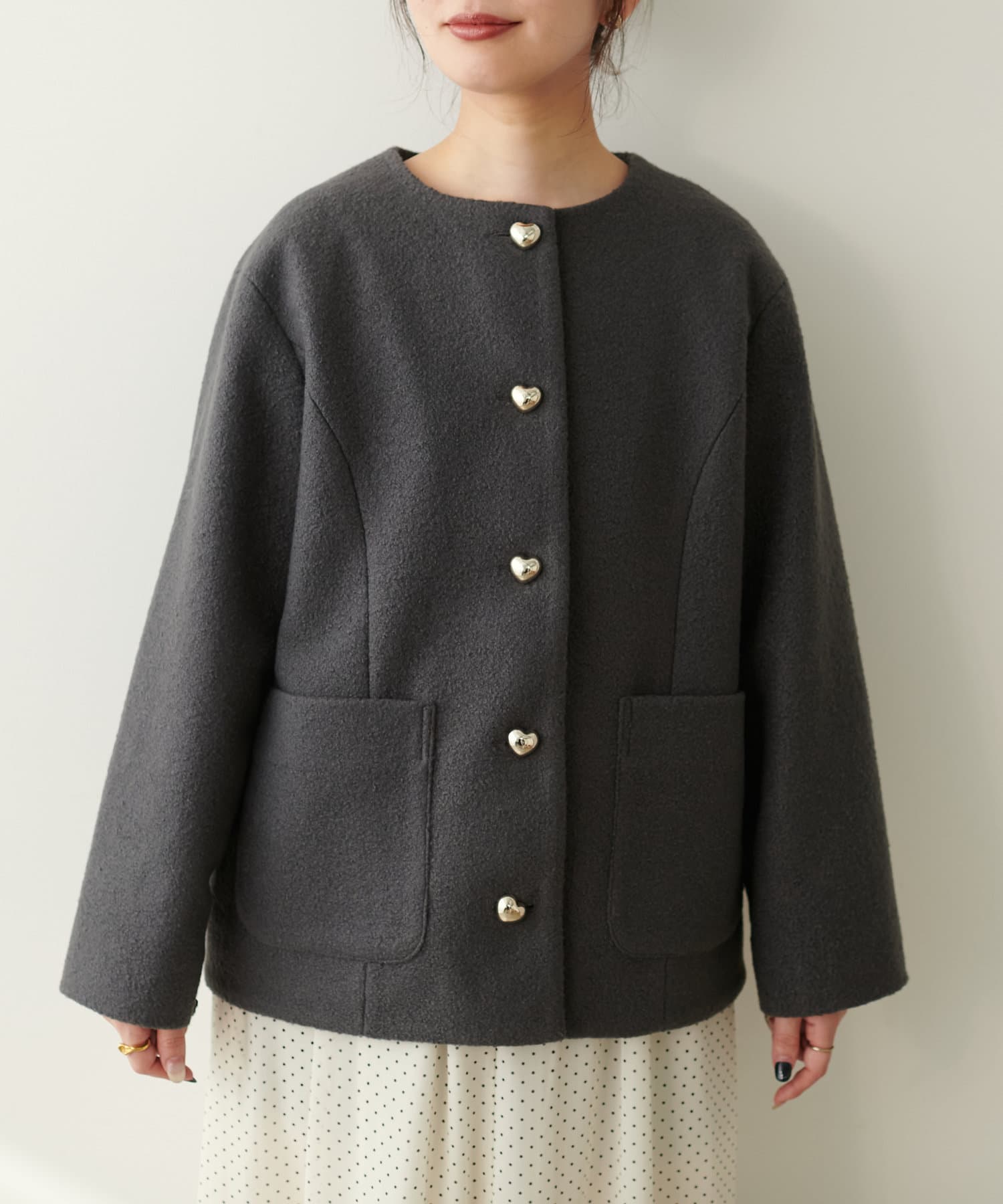 ハート釦が可愛らしいほっこりジャケット