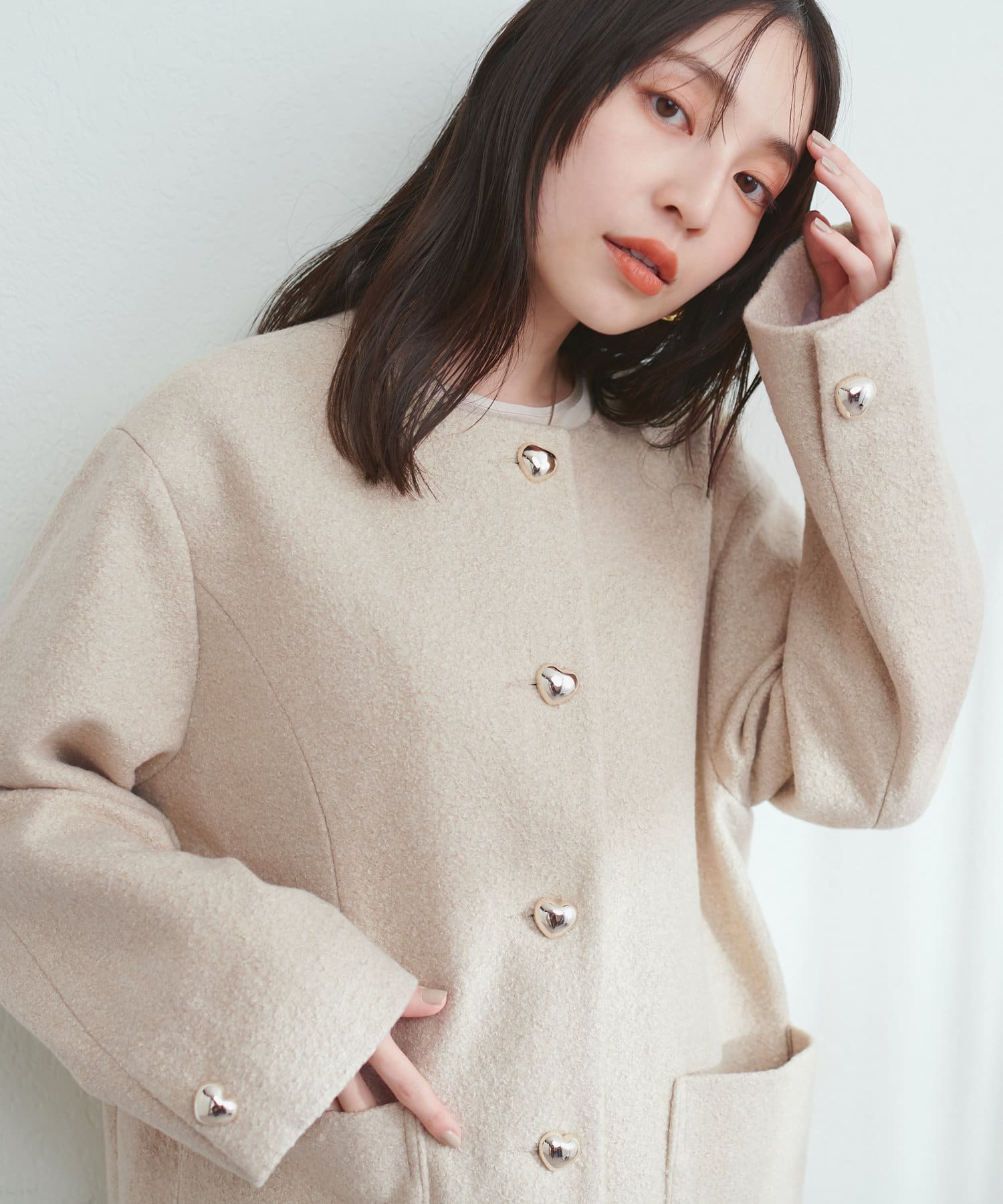 ハート釦ほっこり素材コートジャケット