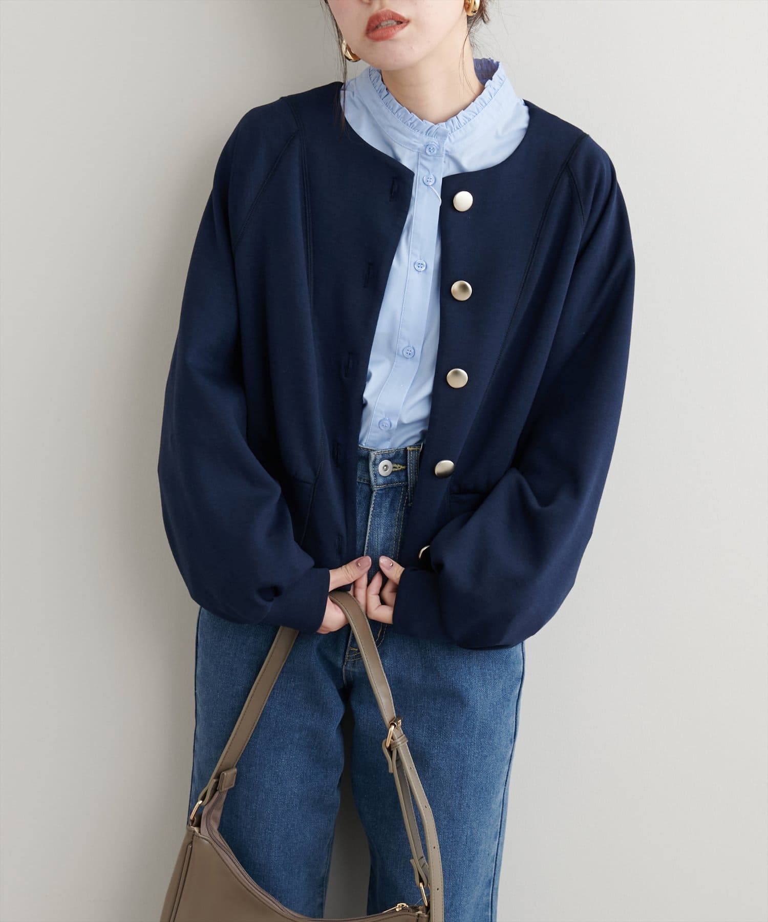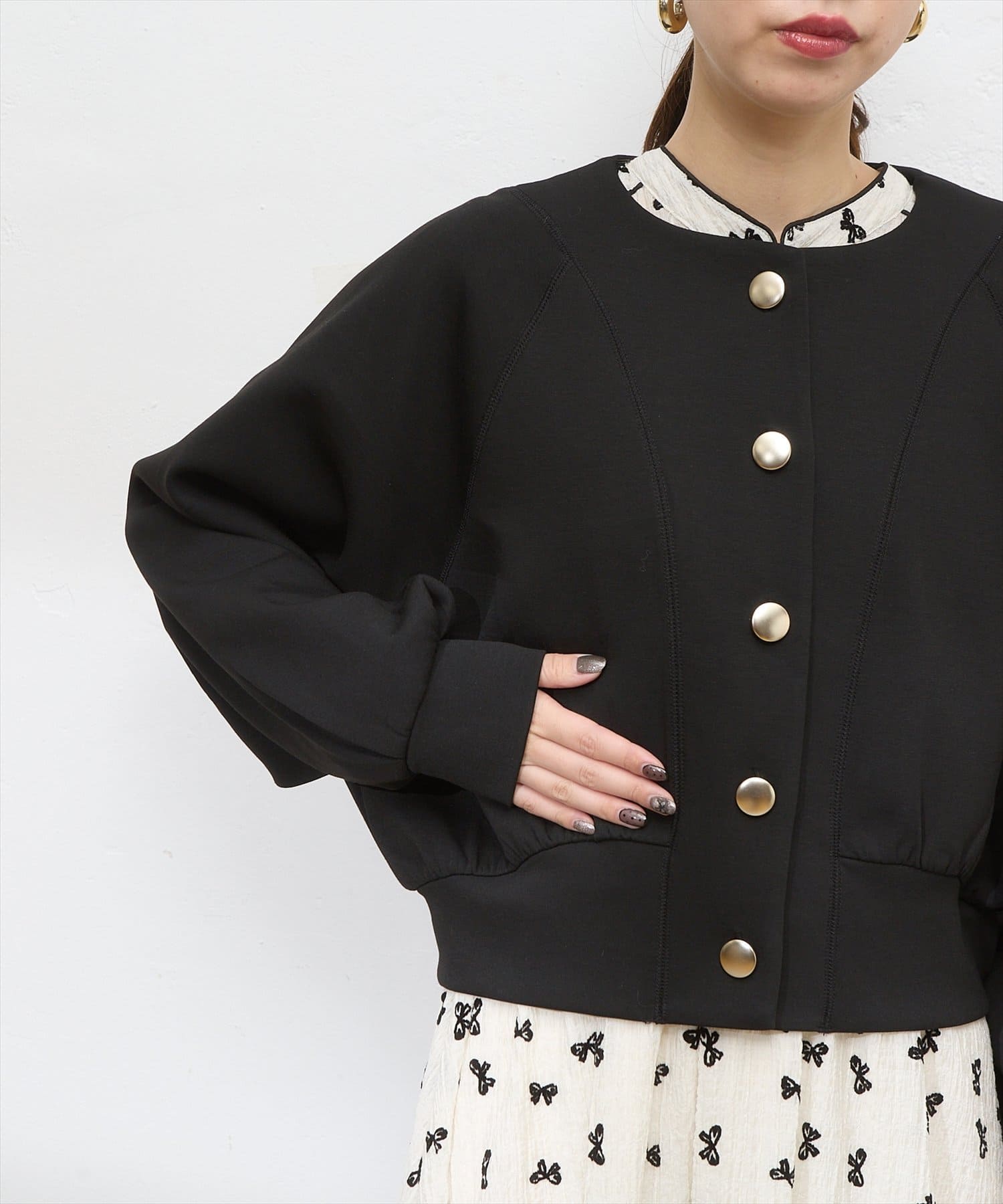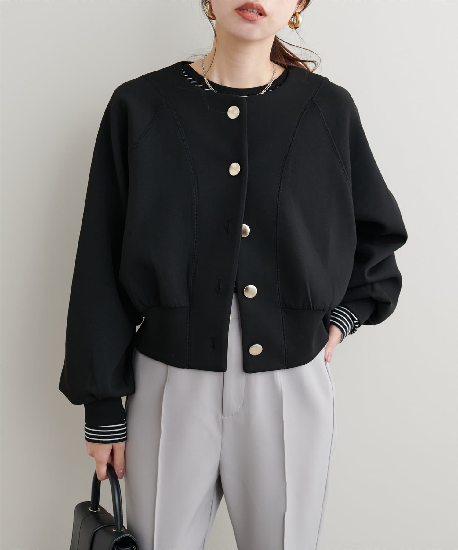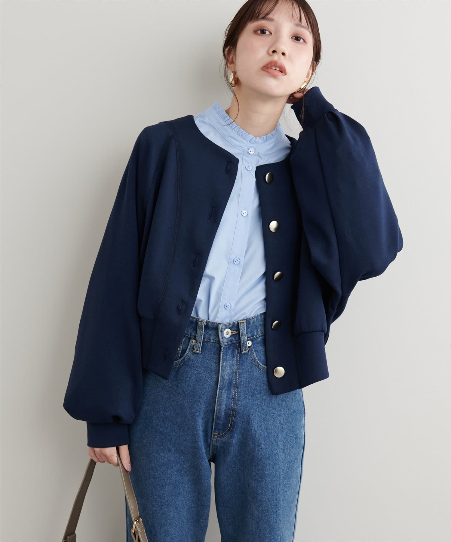金釦ノーカラーダンボールブルゾン