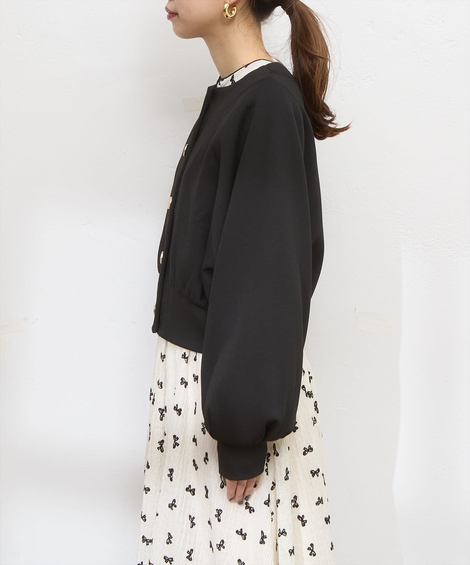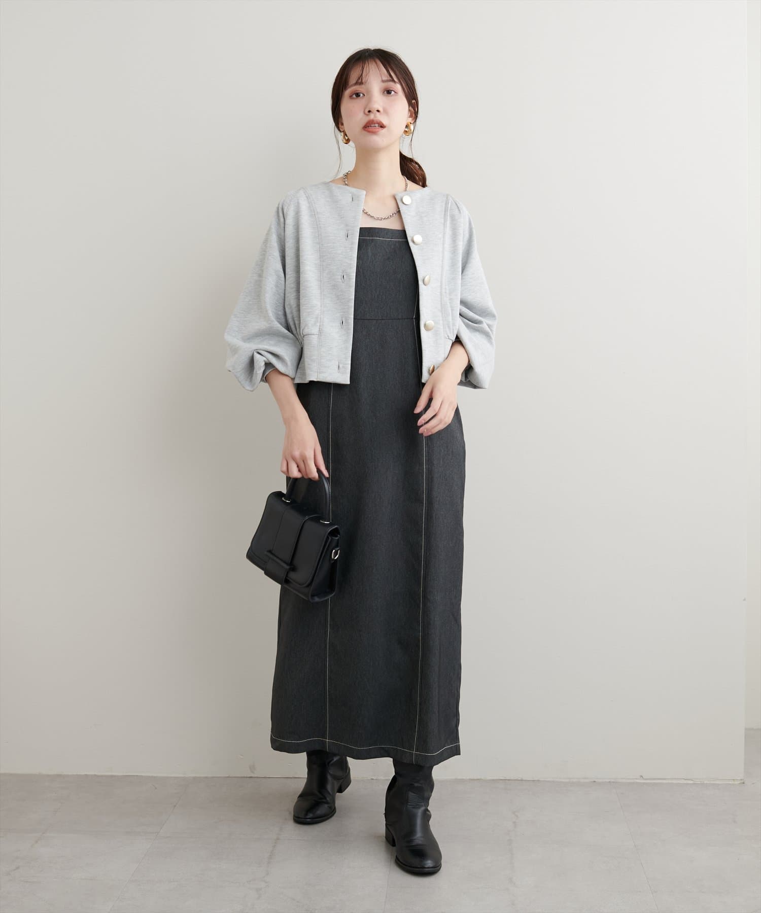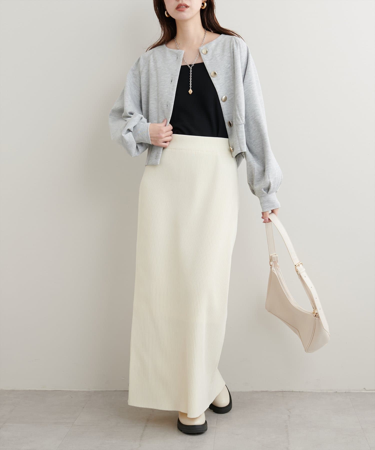 絶妙なミドル丈でスカート、パンツどちらもバランスが取りやすいのが魅力です。