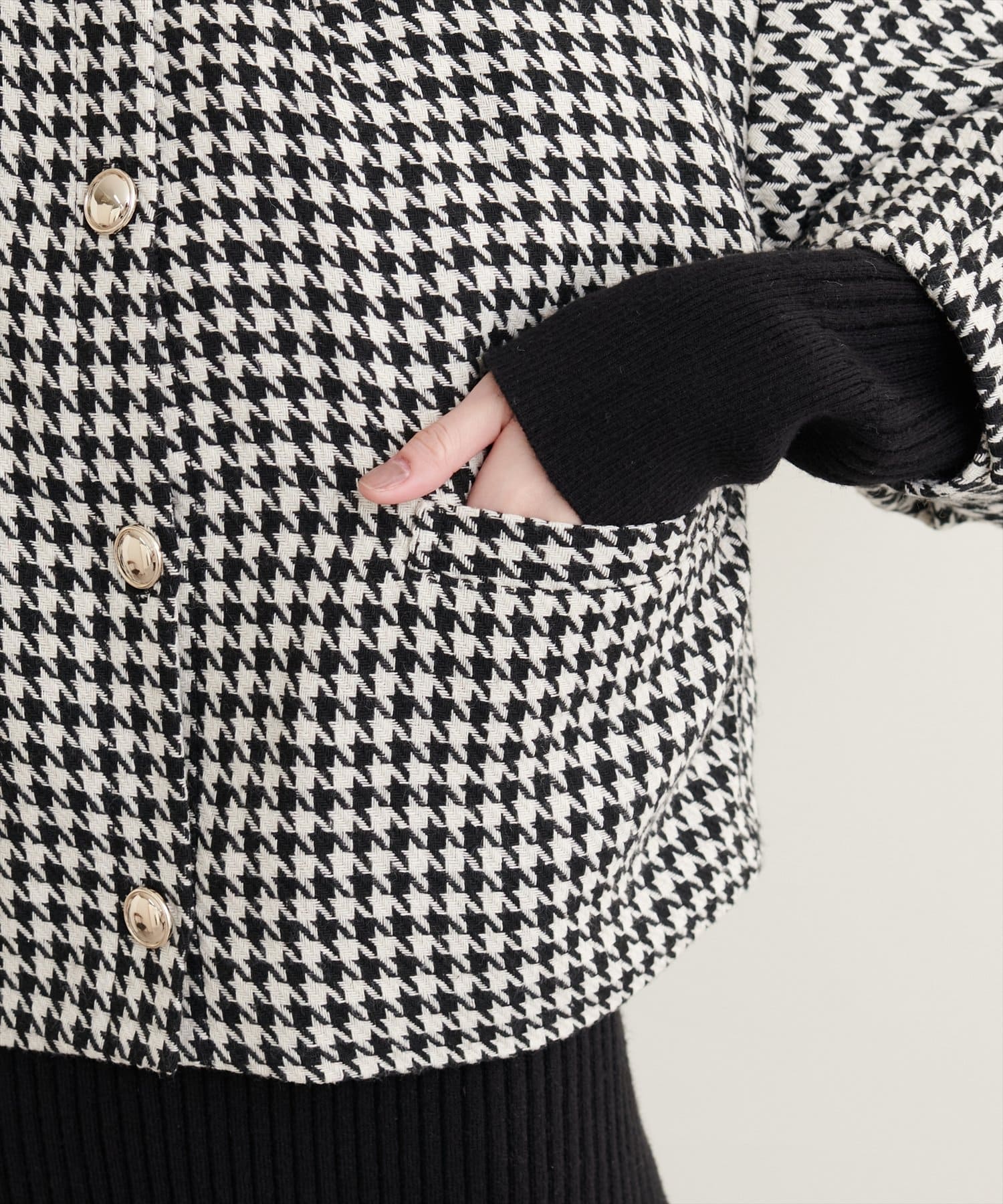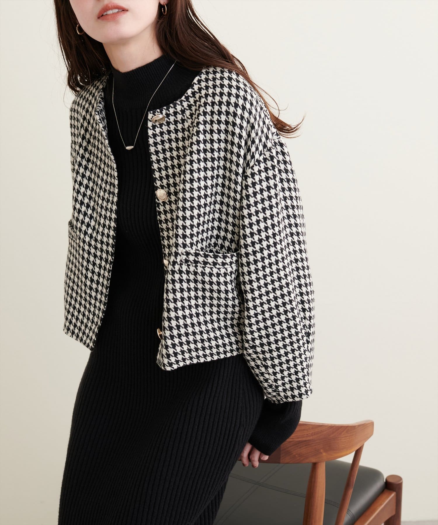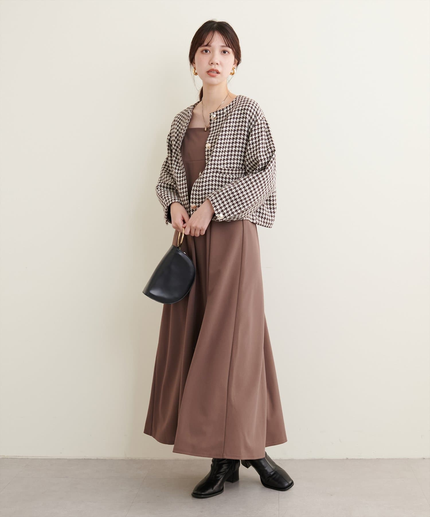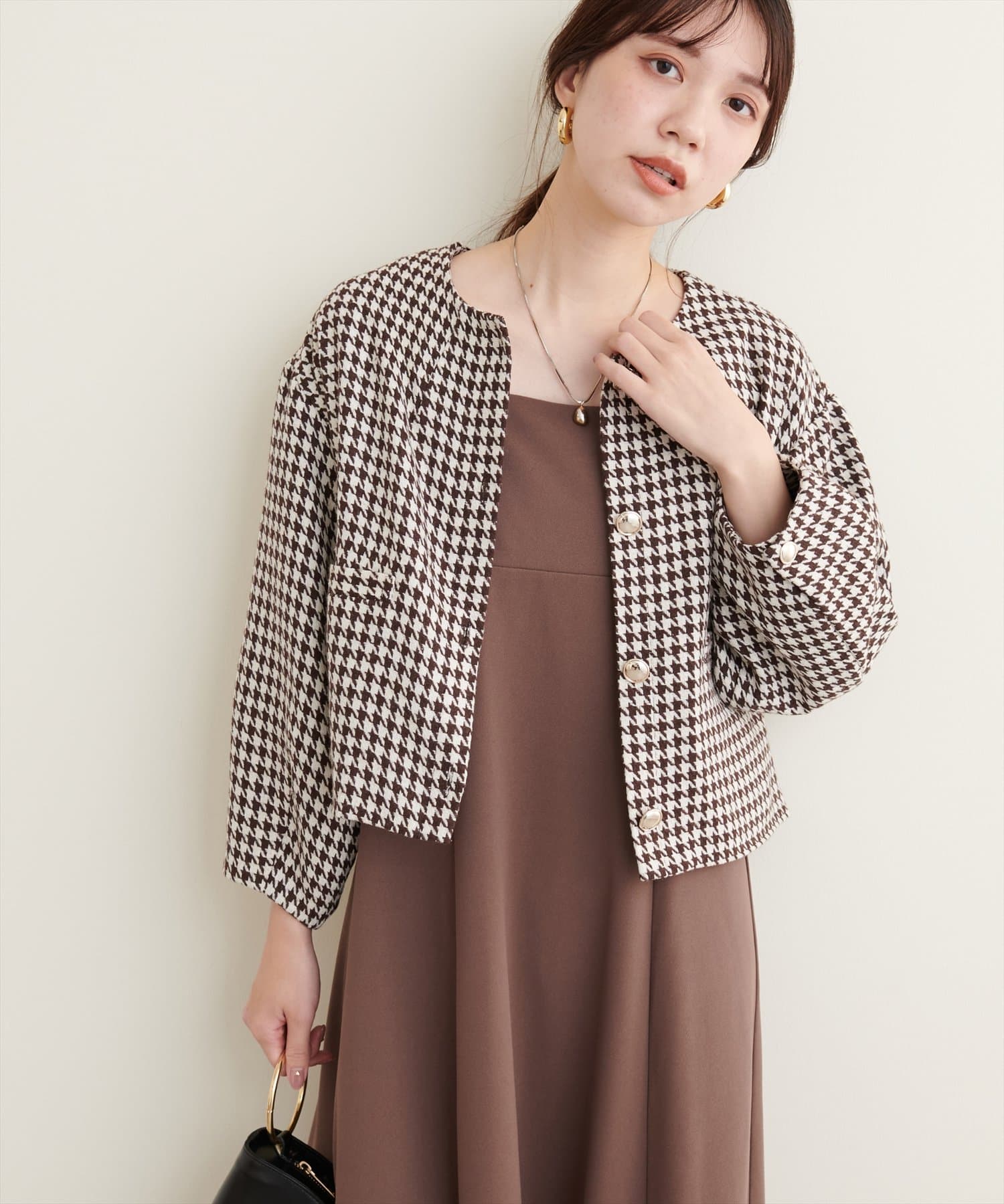 カラーリングは、ブラック系(千鳥柄)、ブラウン系(千鳥柄)、オフホワイト、ブラックの三色展開です。