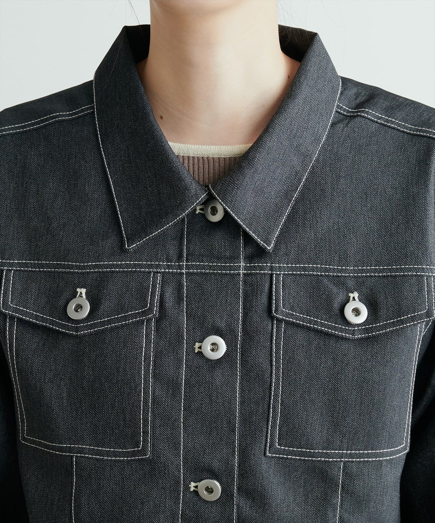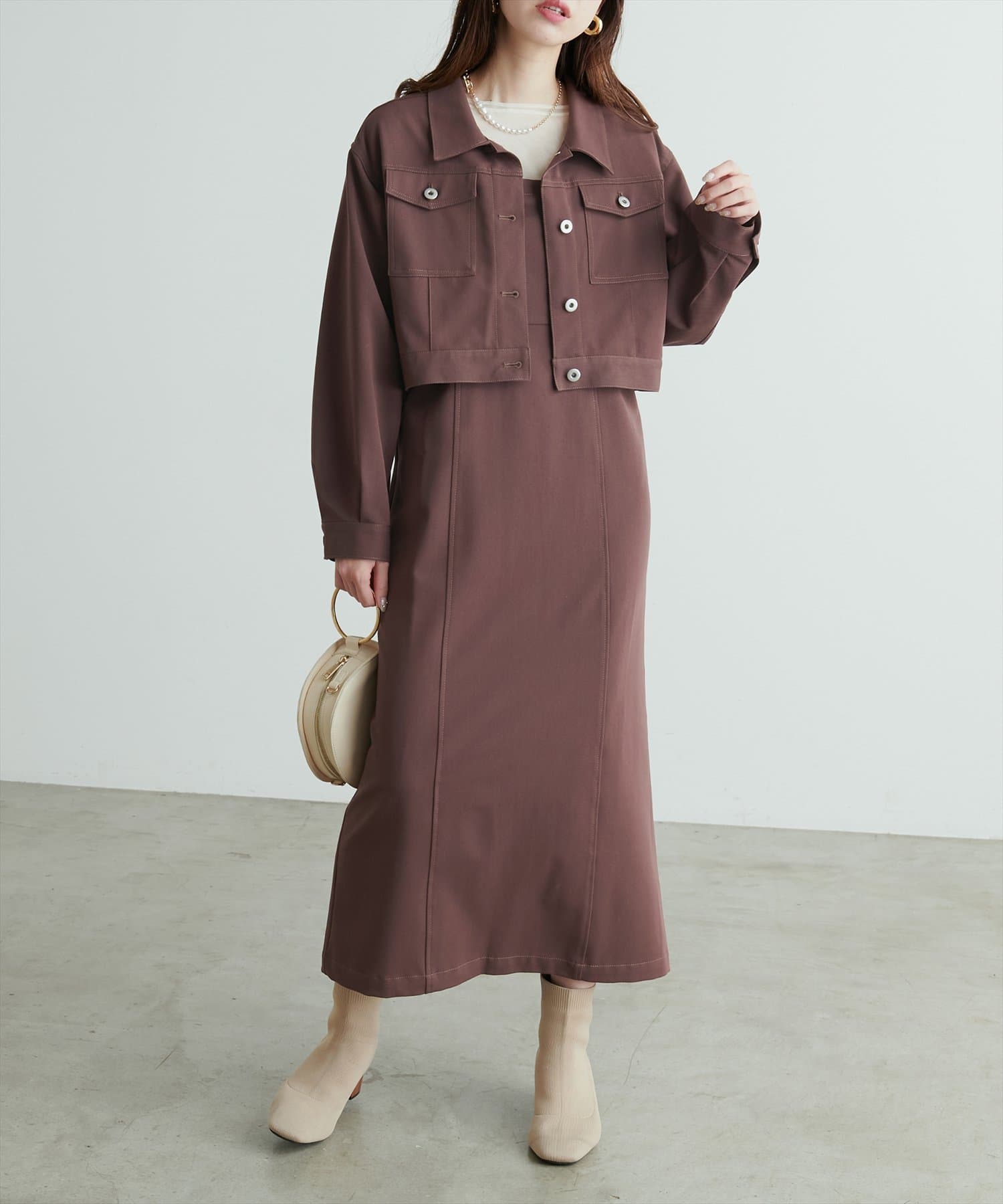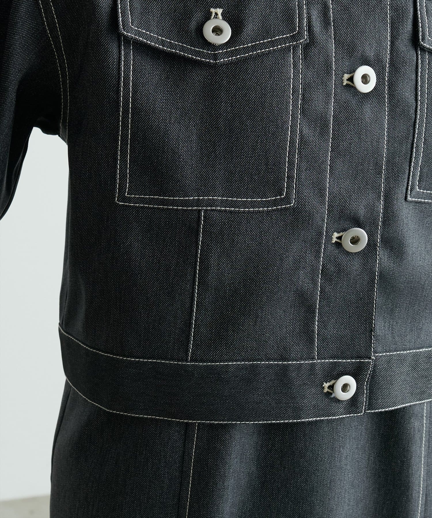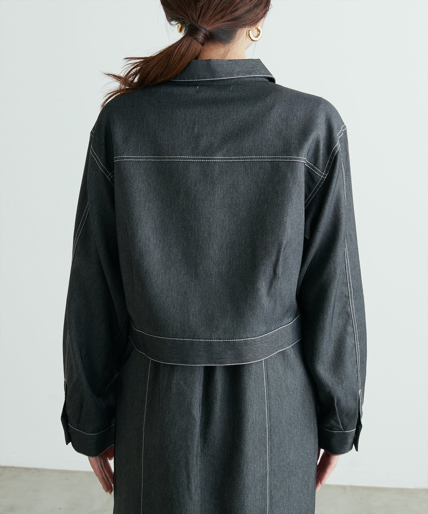 同素材のデニム風ビスチェキャミワンピースとセットでお召し頂くと、よりこなれた大人のおでかけスタイルが完成します。