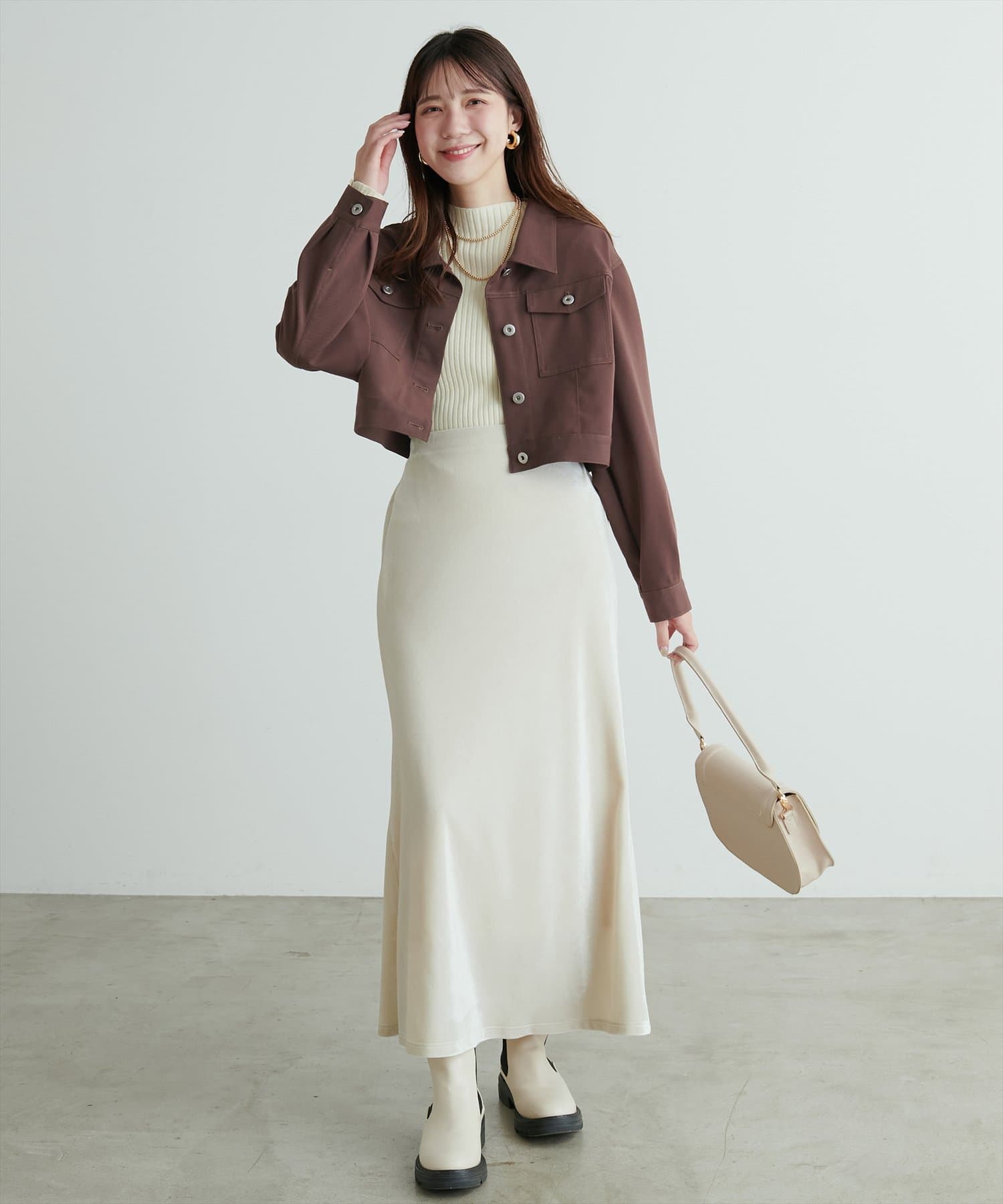スタイルアップとトレンドライクを叶えるクロップド丈のデザインが効いた、コーディネートに欠かせない1着です。