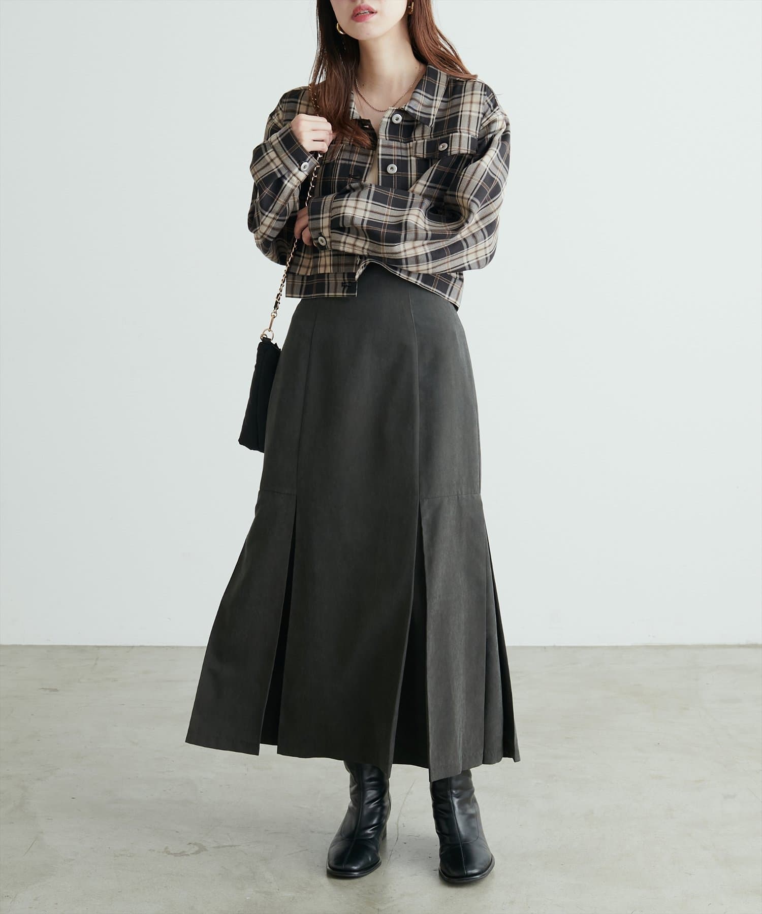 ナローシルエットやマーメイドシルエットのスカートを合わせてきれいめミックスに、