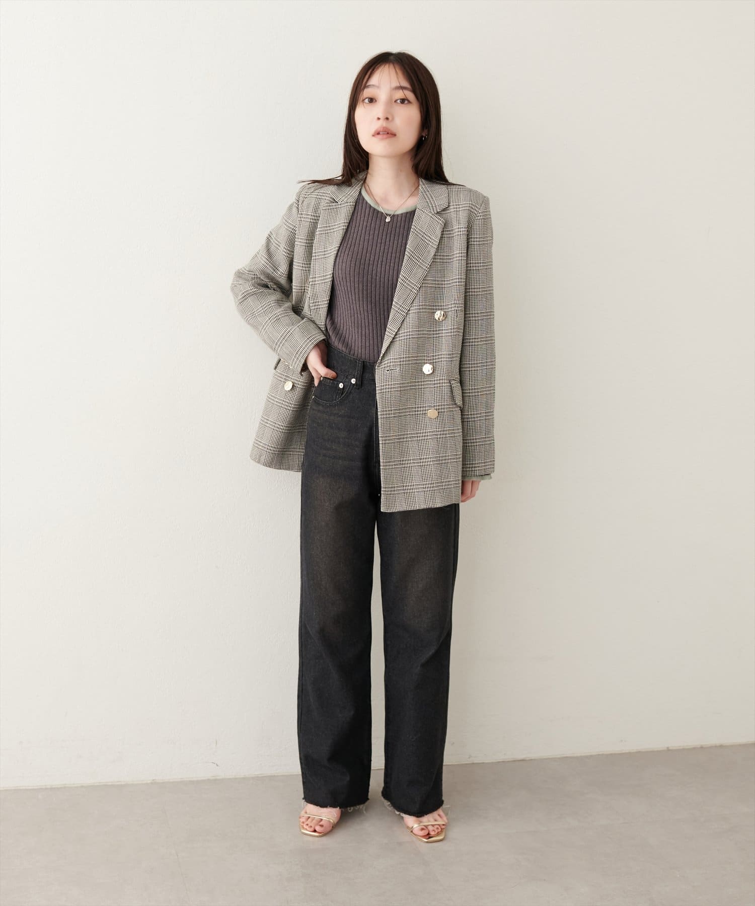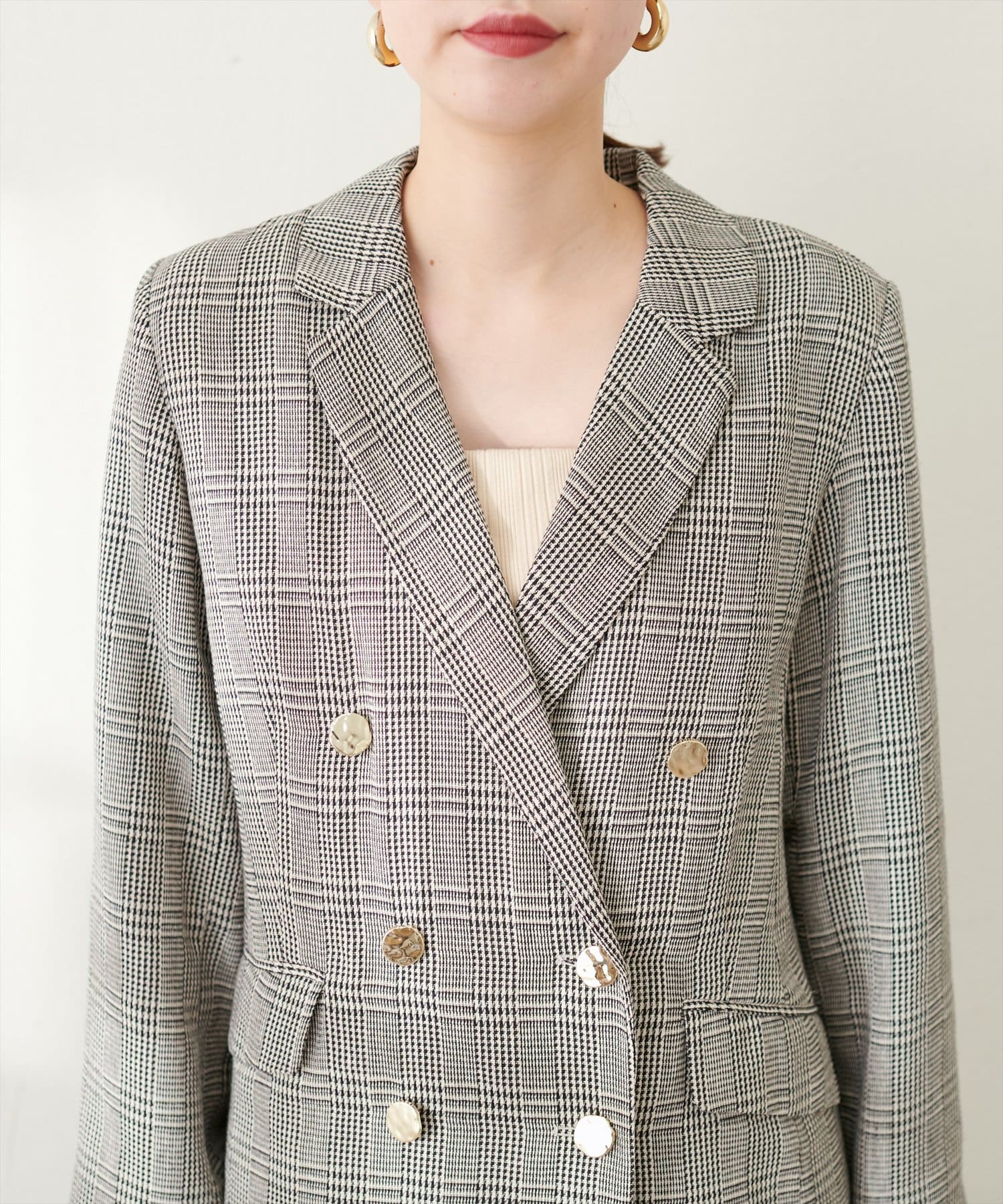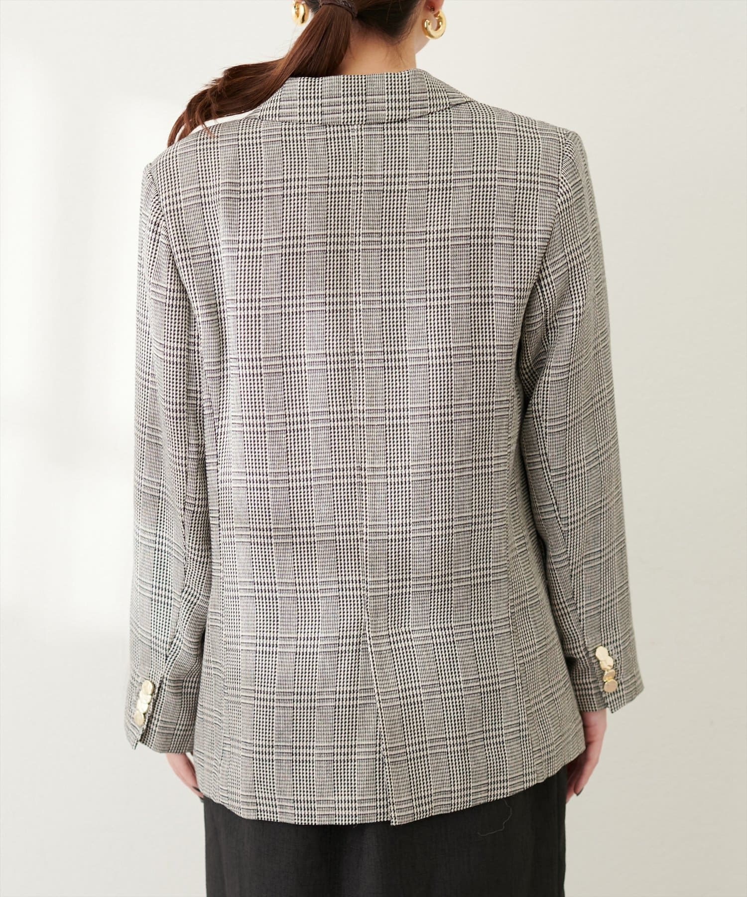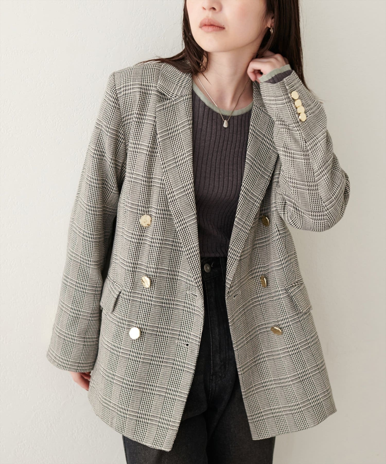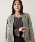 ベーシックながらゴールドの釦が際立つテーラードジャケット