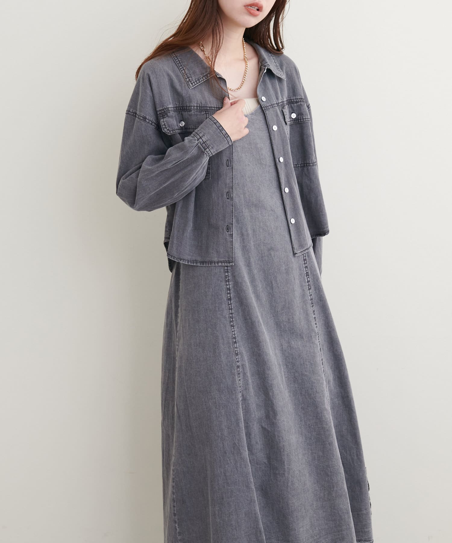 同素材を使用したアソートデニムキャミワンピースとの