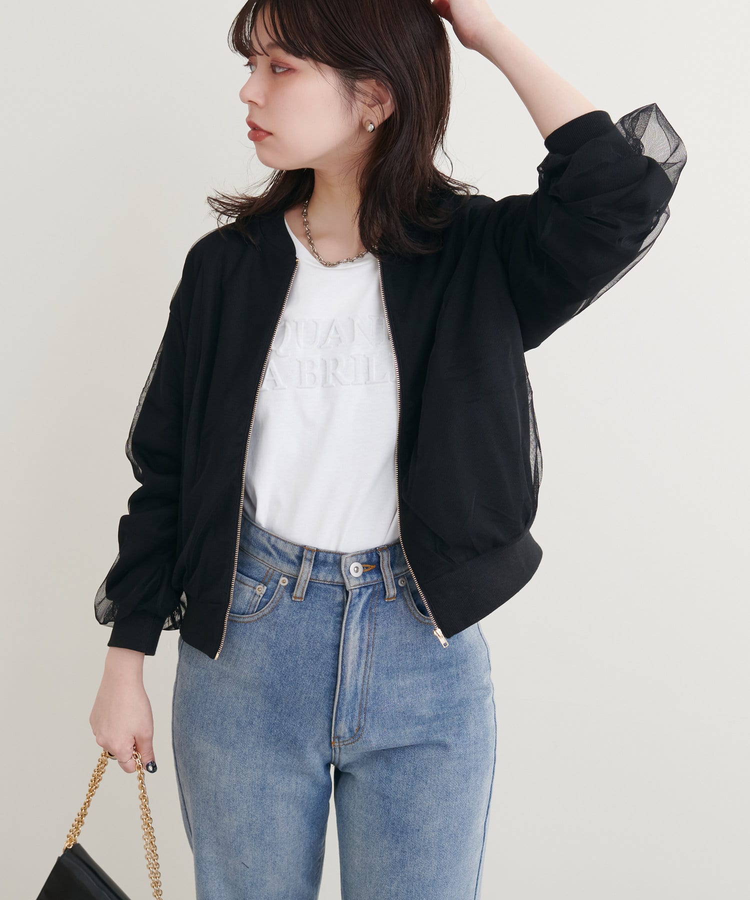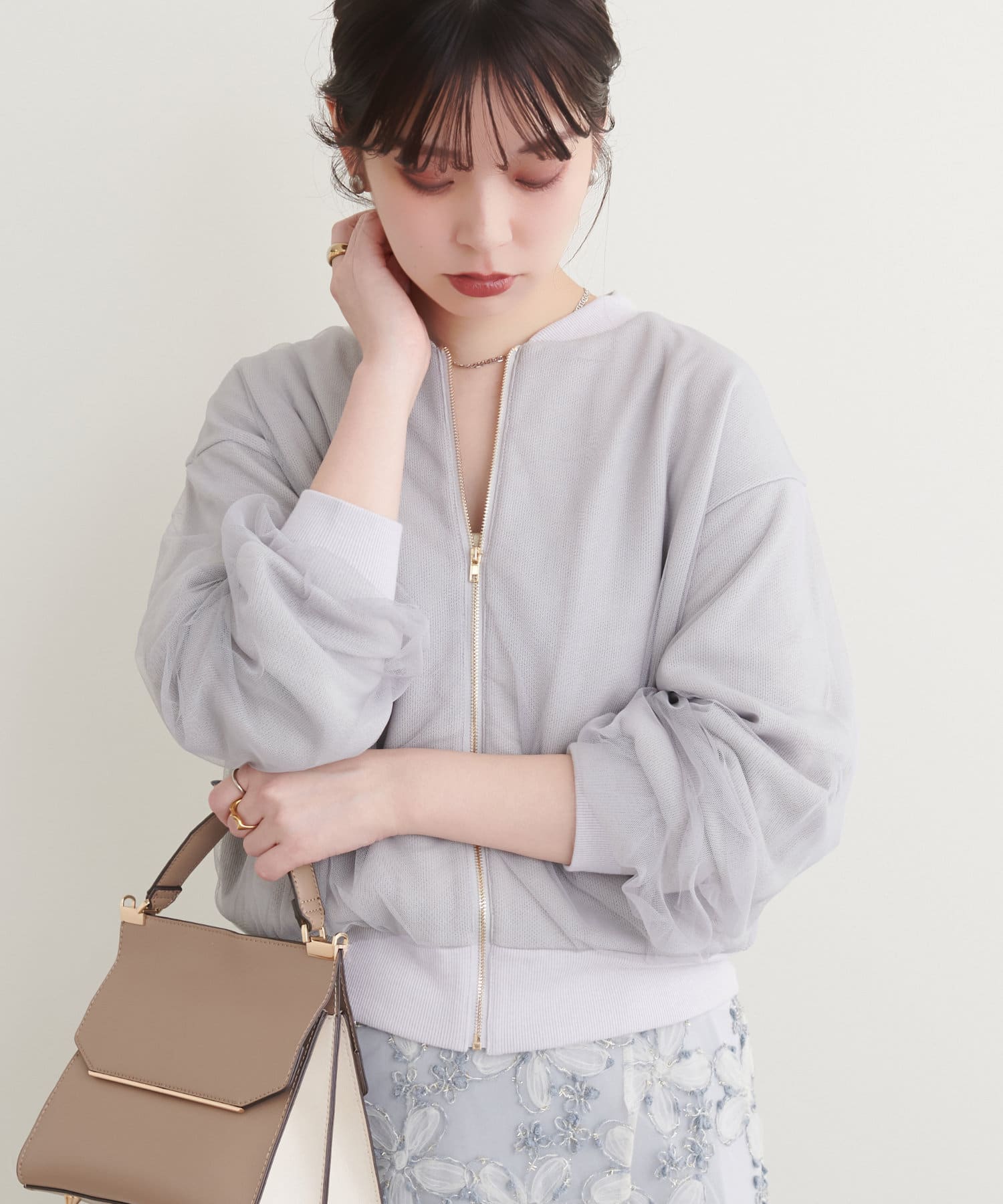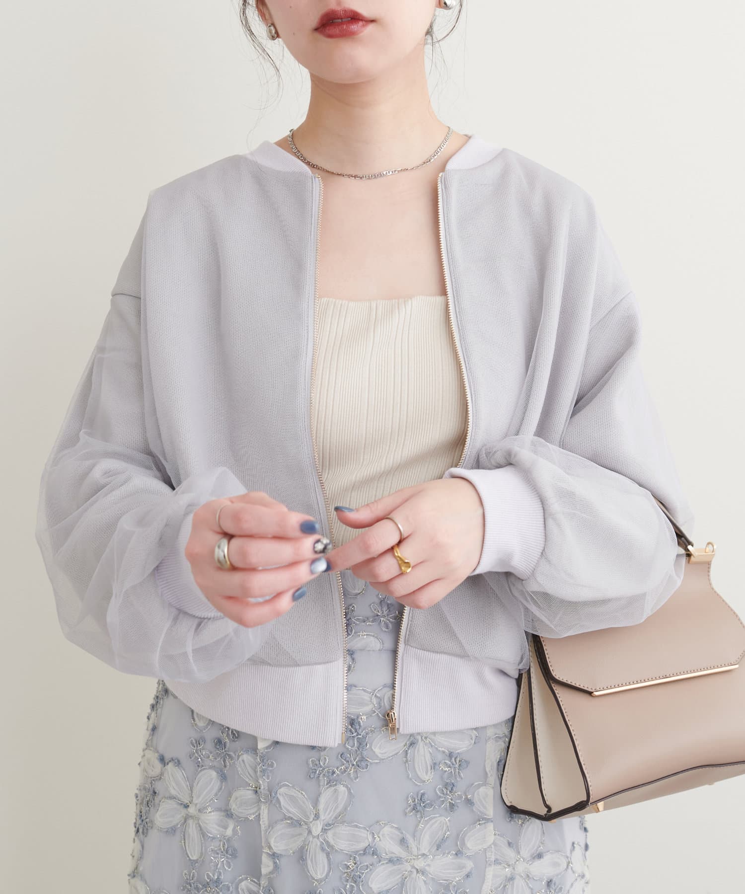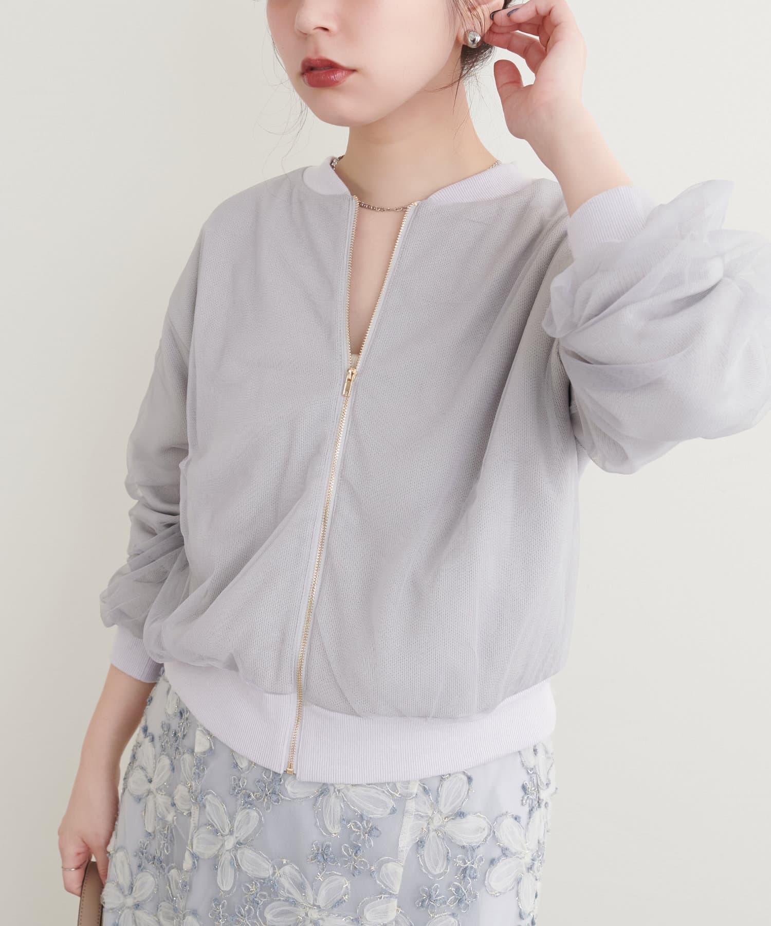 カジュアルになりがちなブルゾンですがチュール生地で上品な雰囲気でお召頂けます。