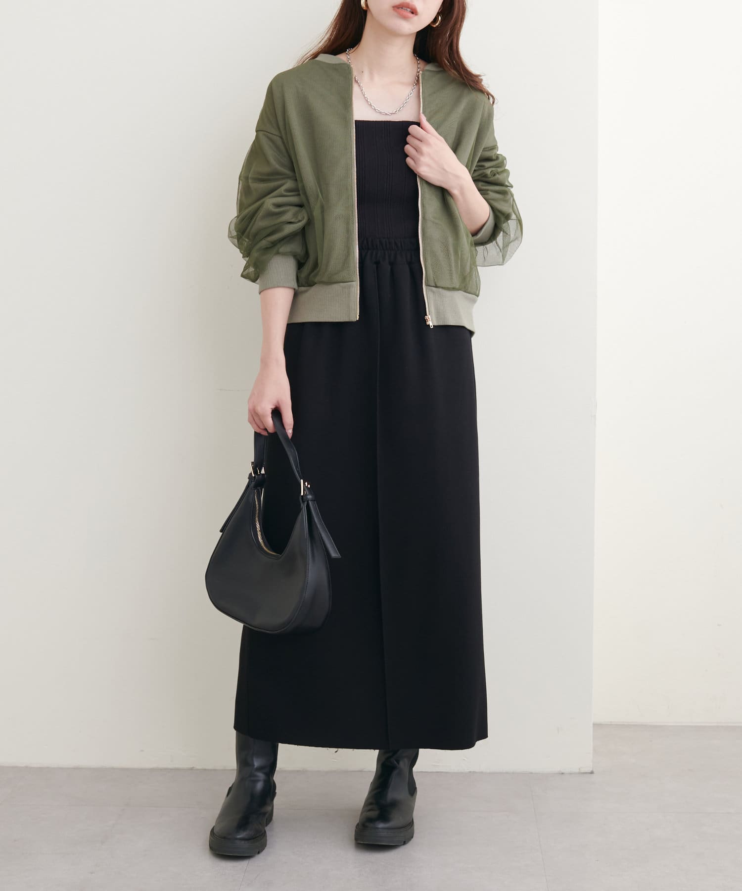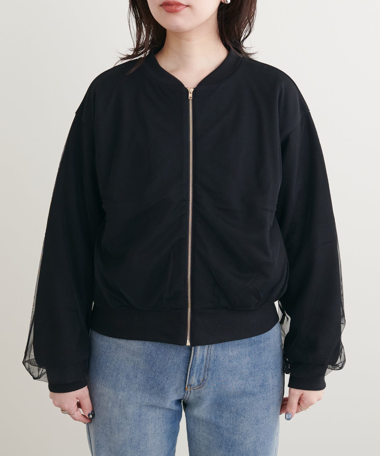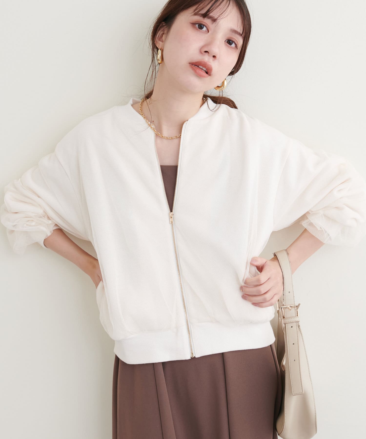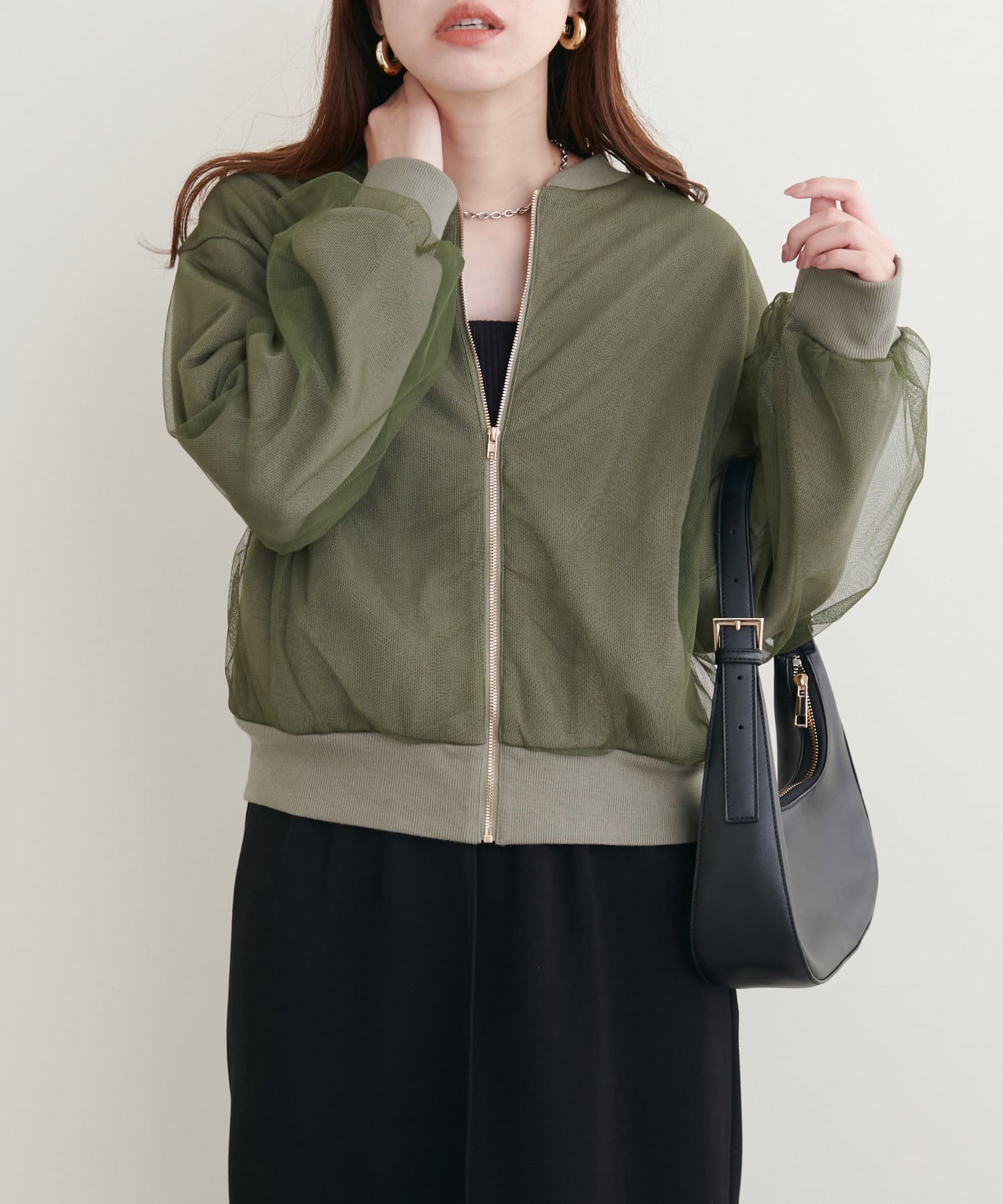 カジュアルになりがちなブルゾンですがチュール生地で上品な雰囲気でお召頂けます。