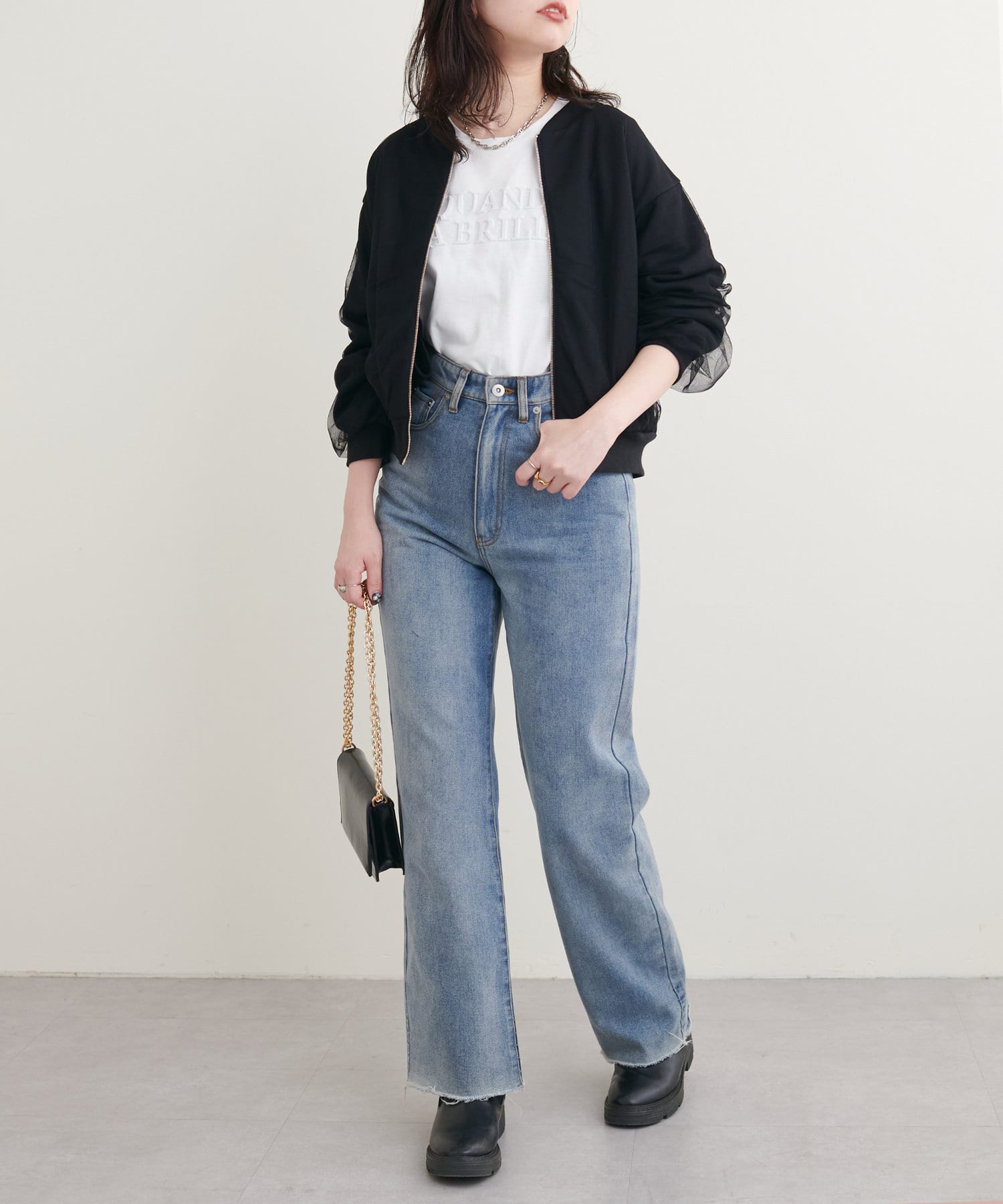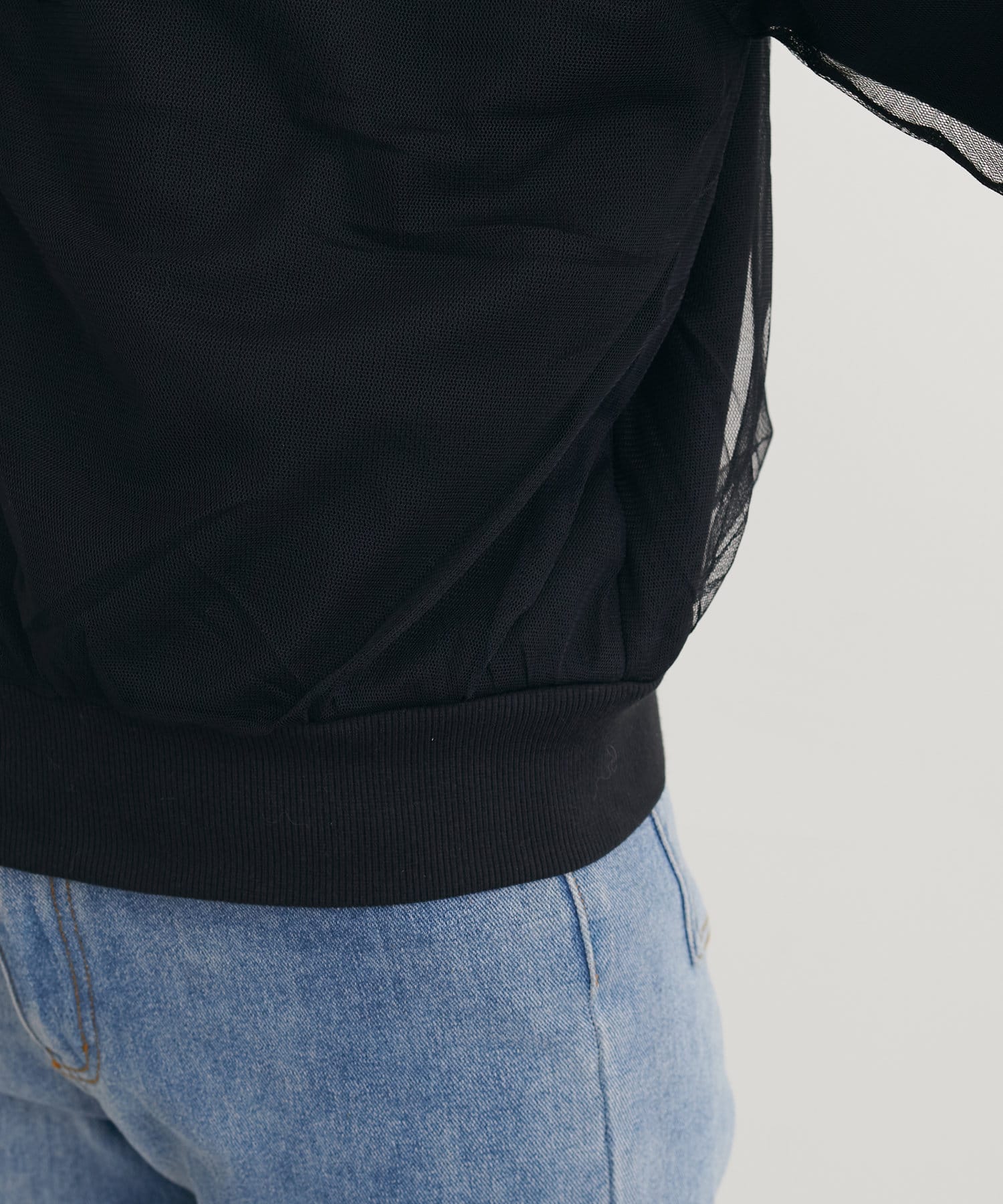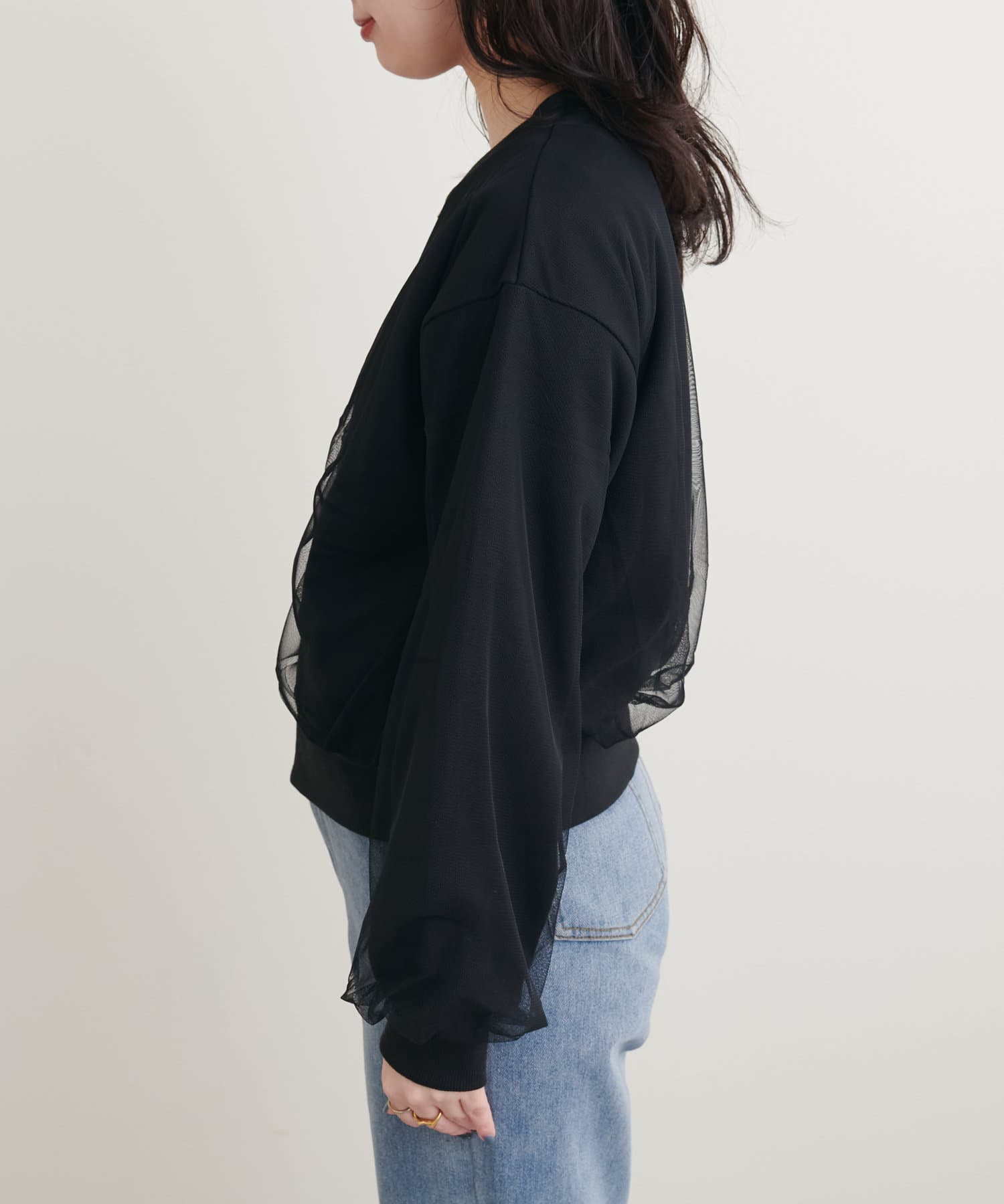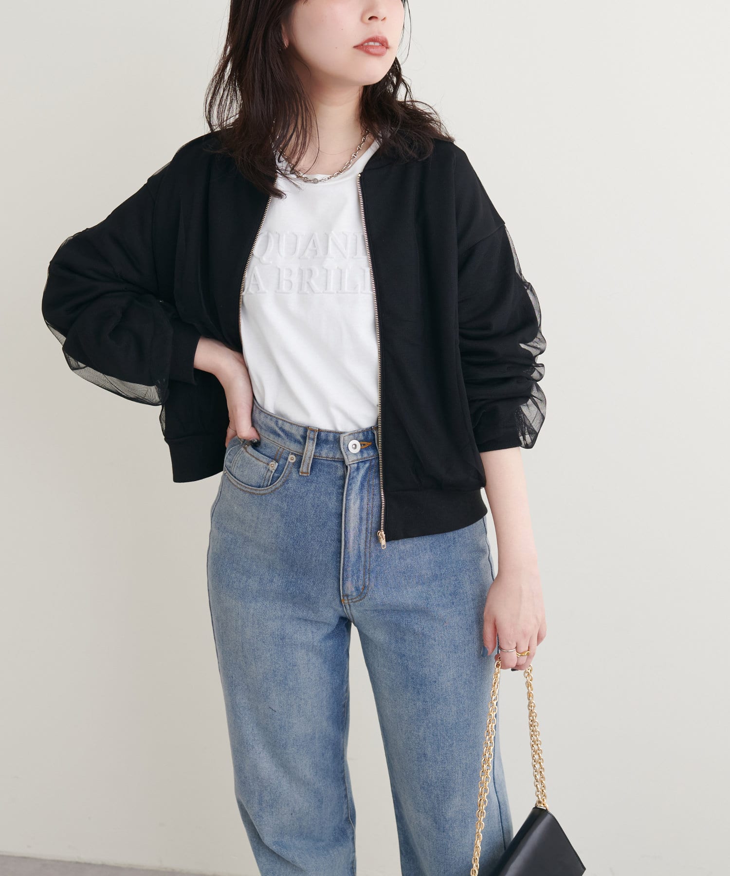カジュアルになりがちなブルゾンですがチュール生地で上品な雰囲気でお召頂けます。