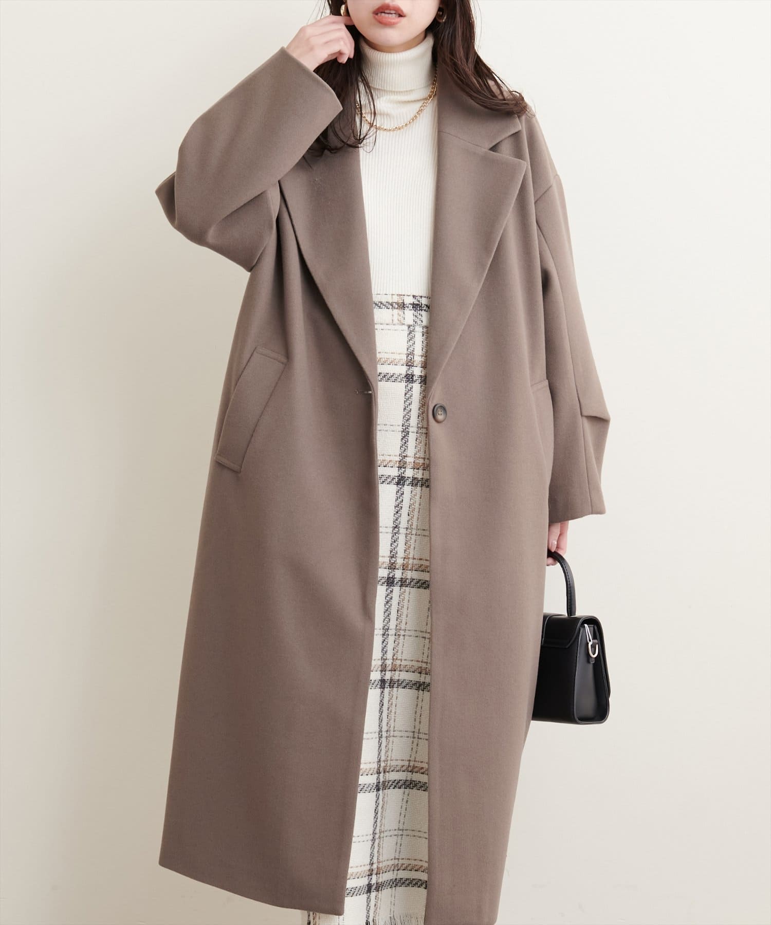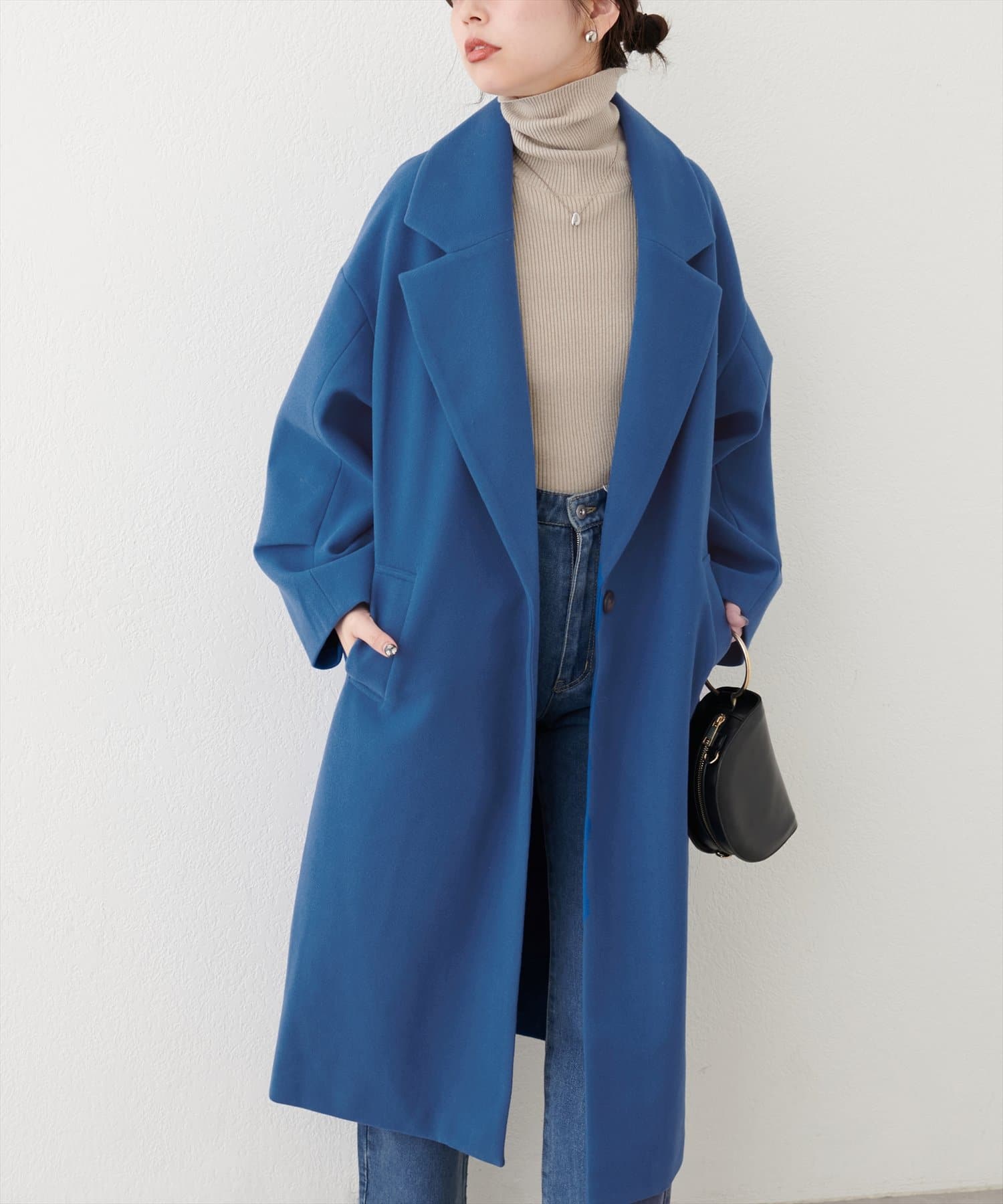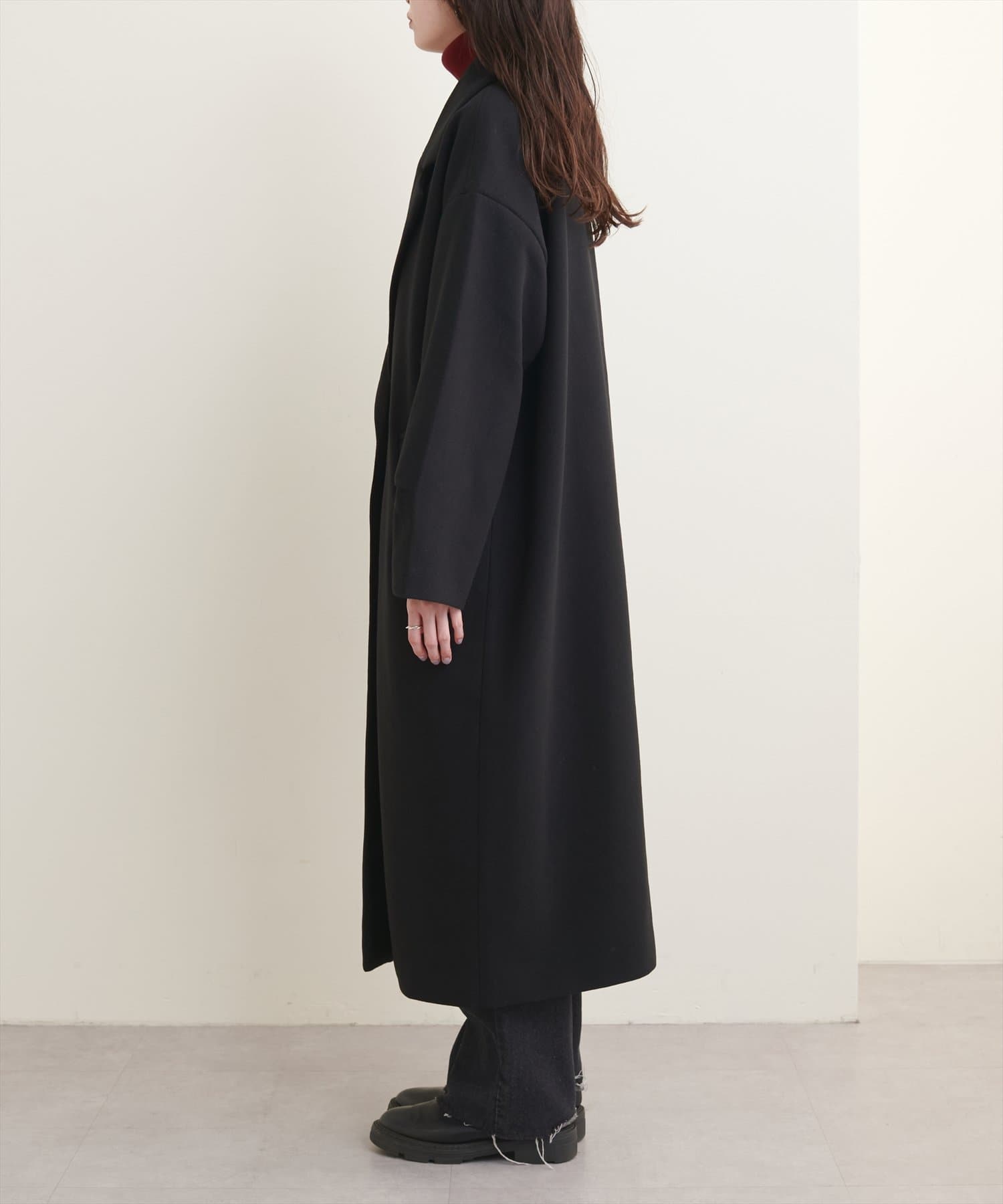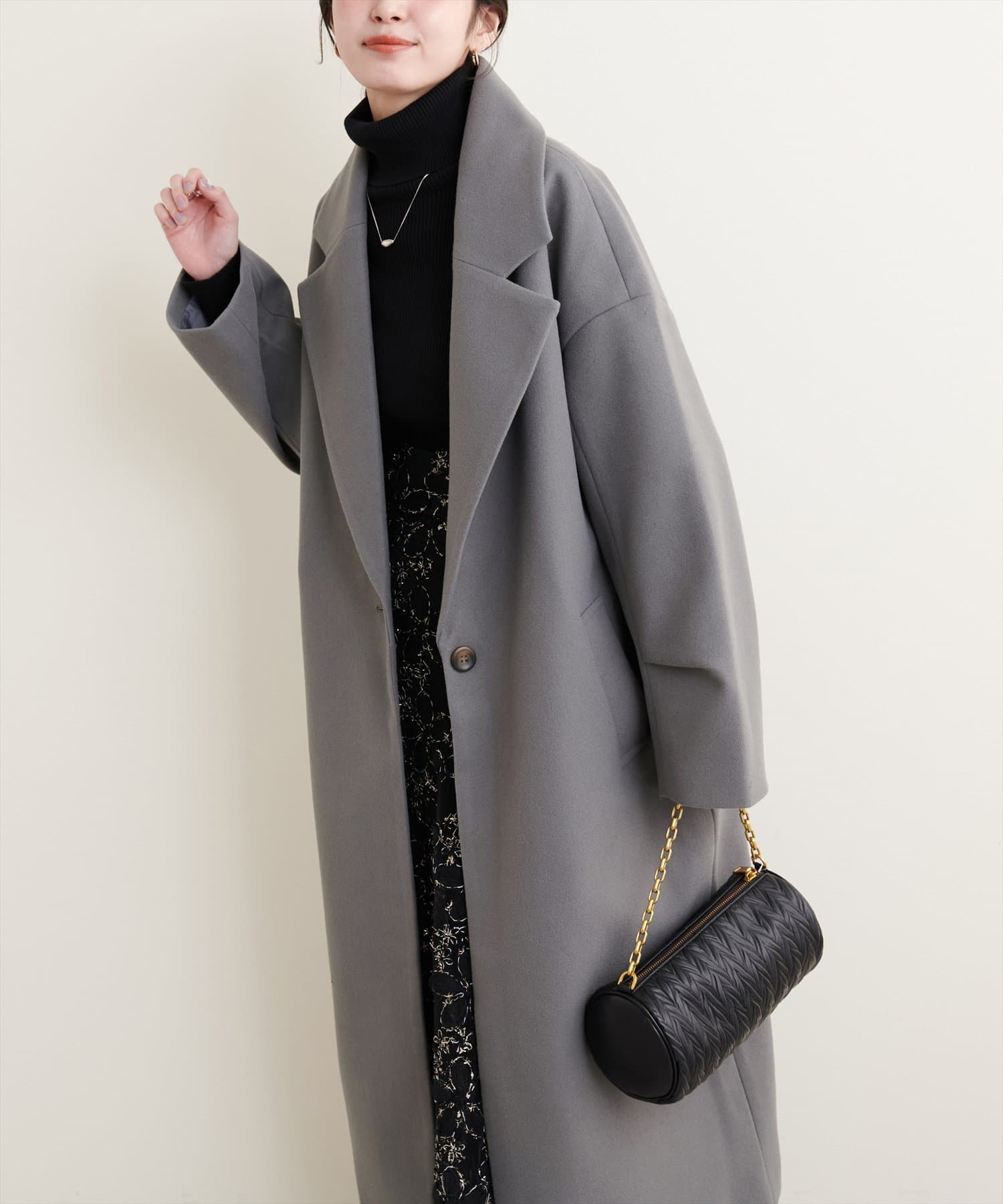 オーバーサイズがこなれた印象のシンプルチェスターコート