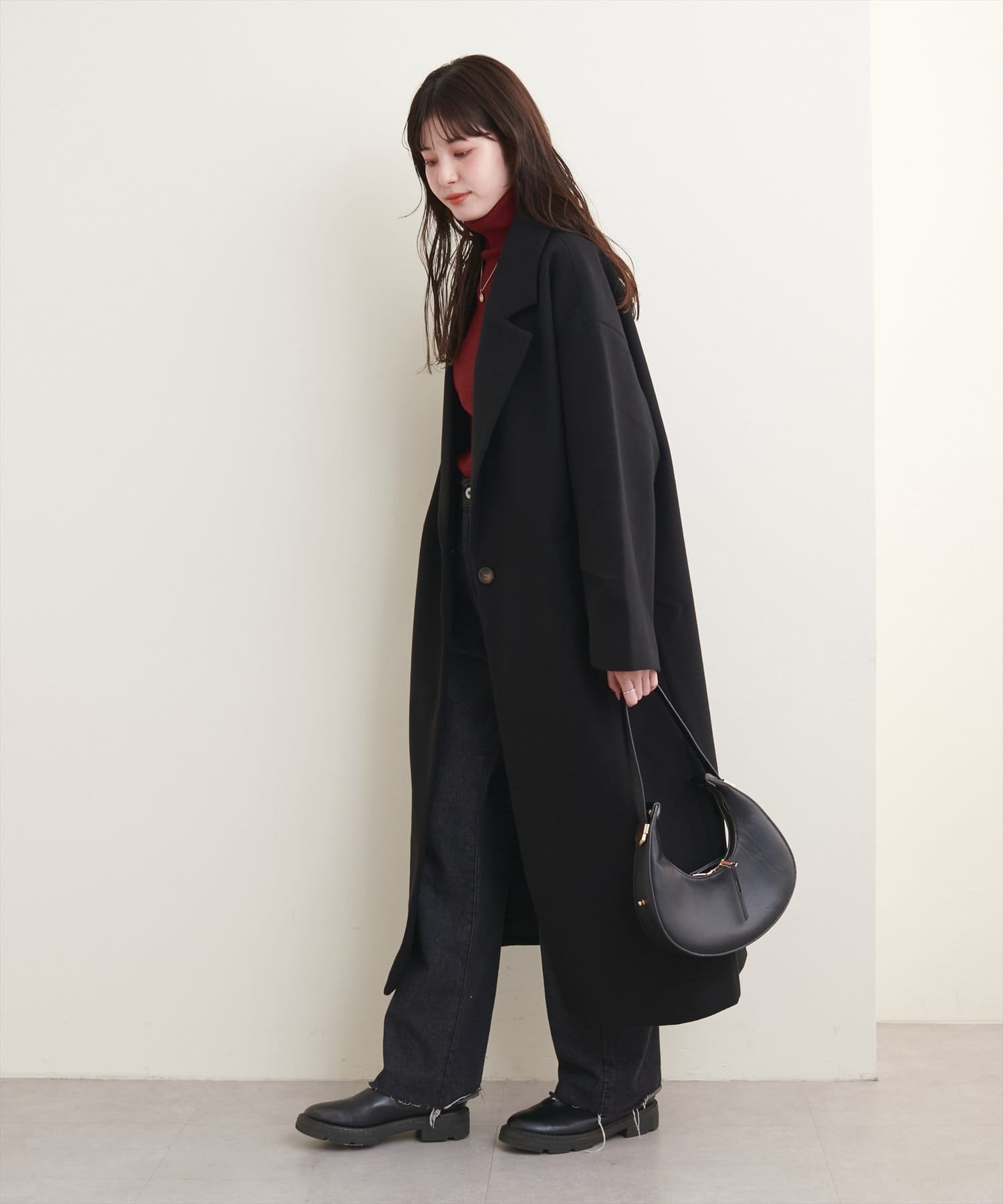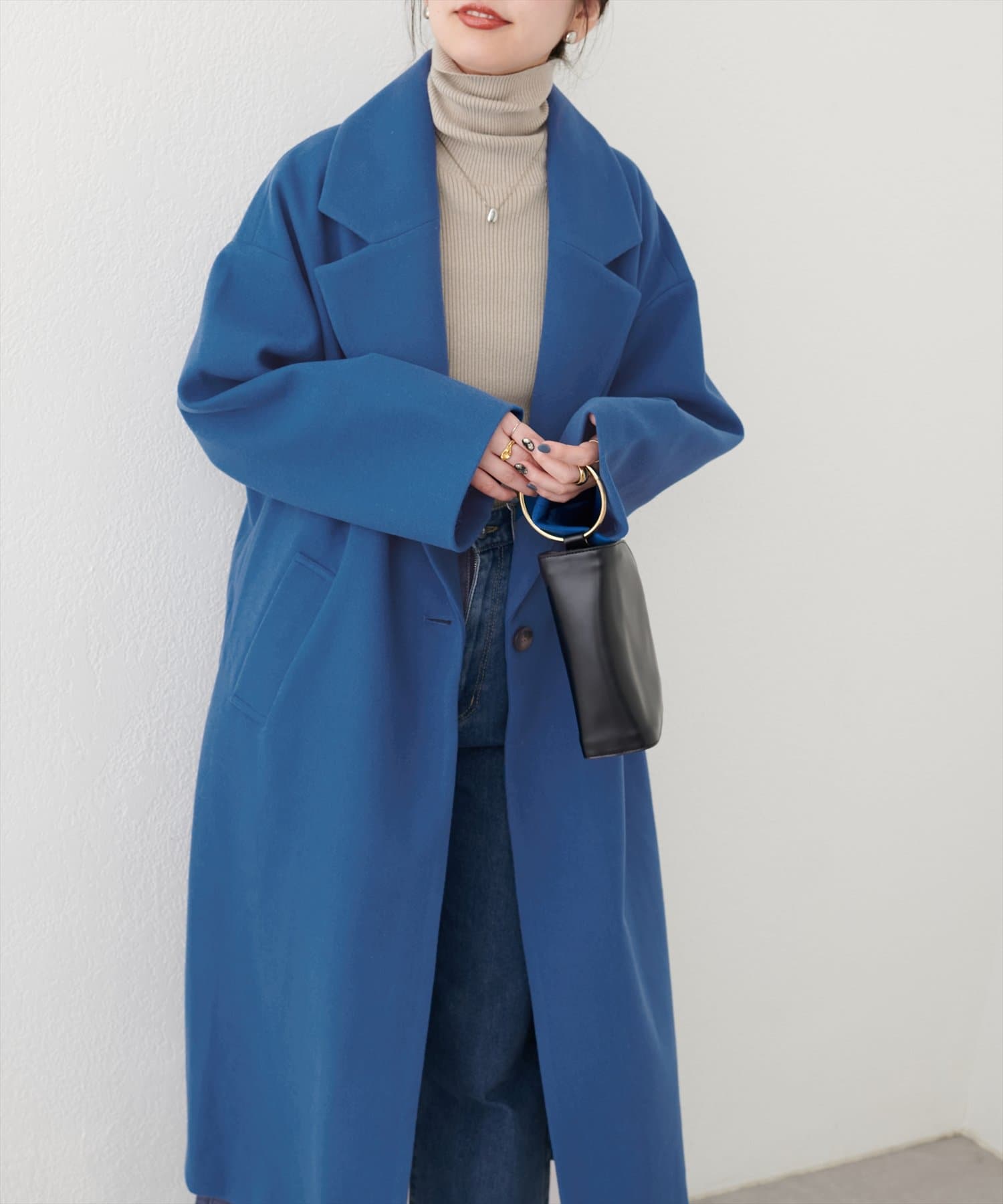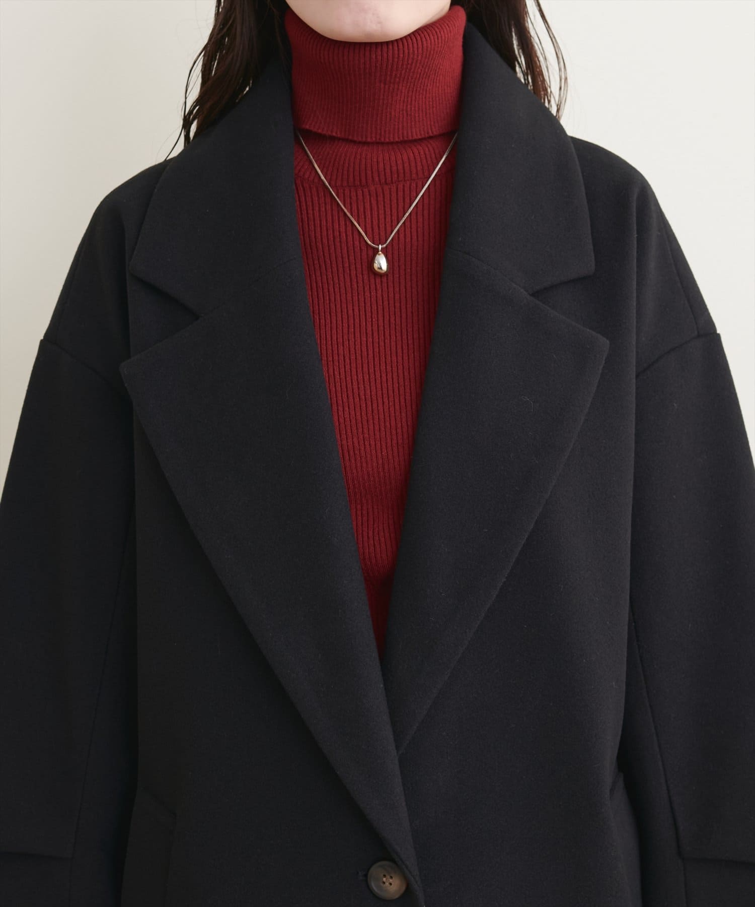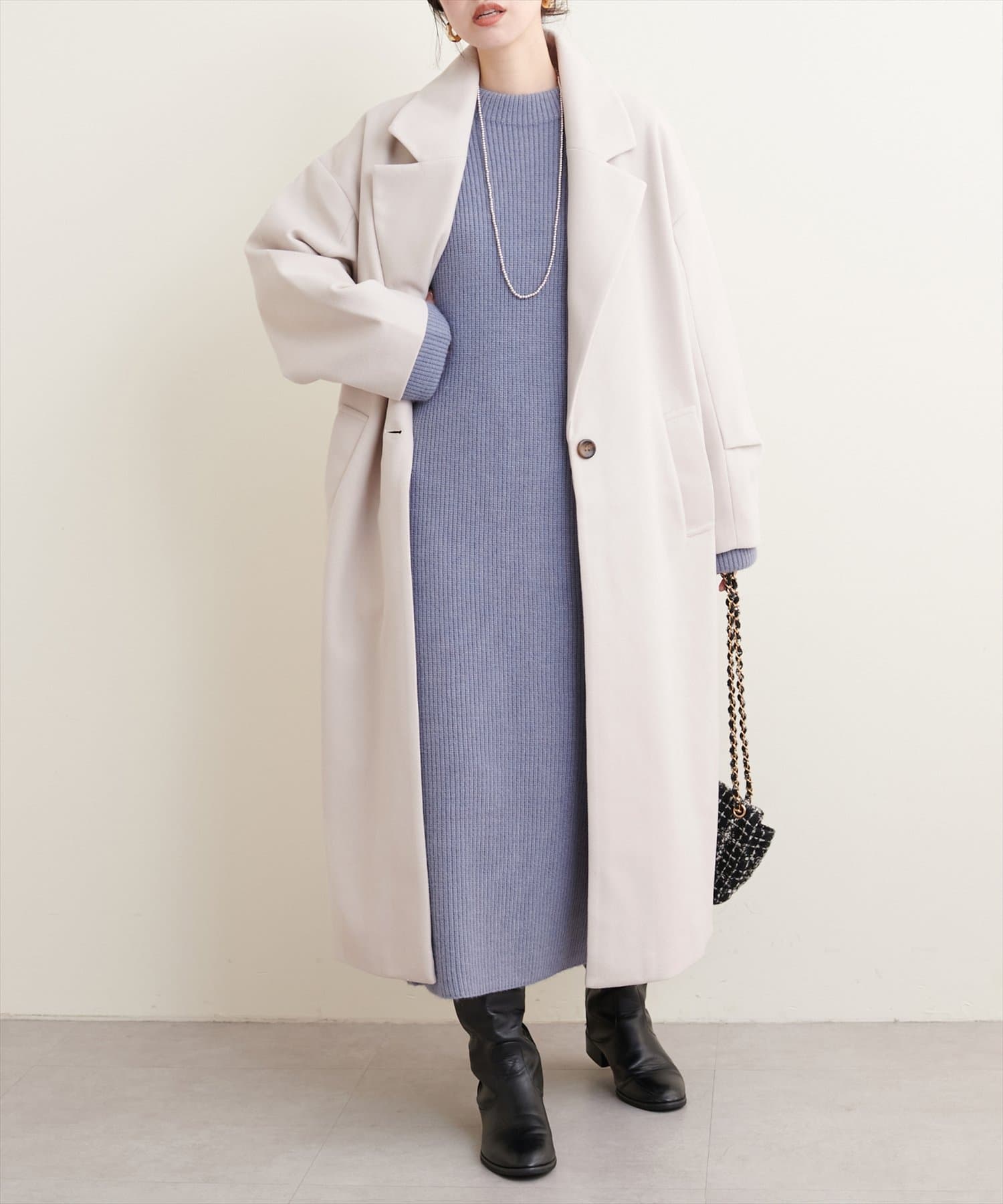 オーバーサイズがこなれた印象のシンプルチェスターコート