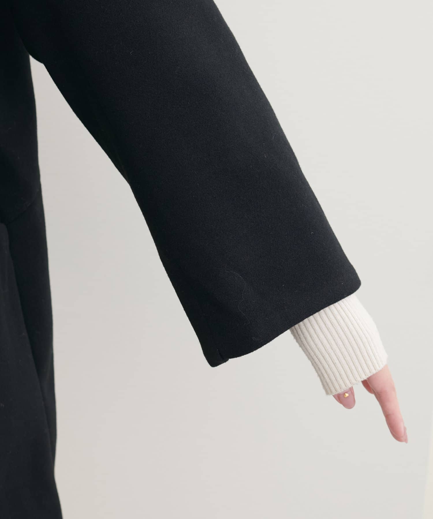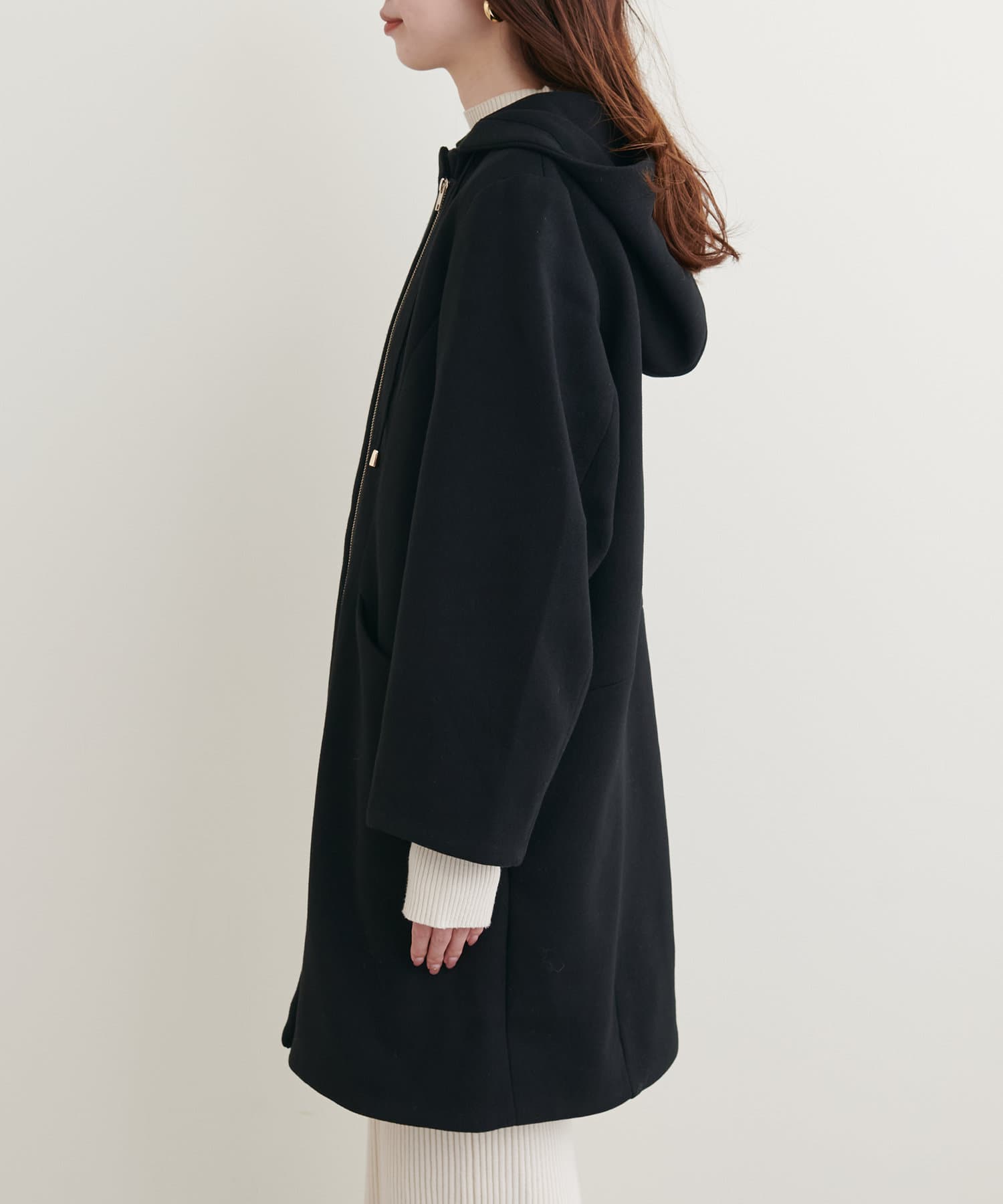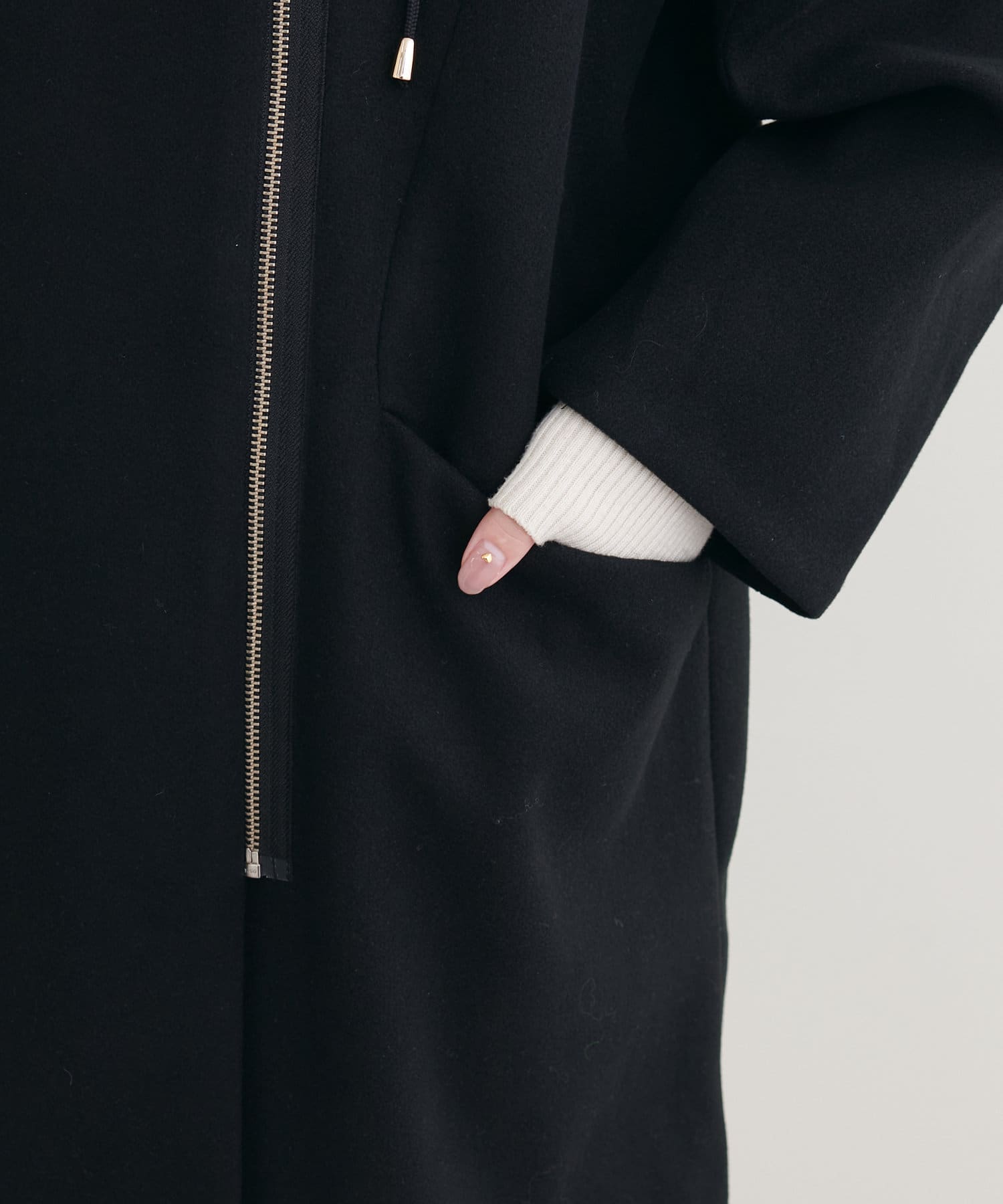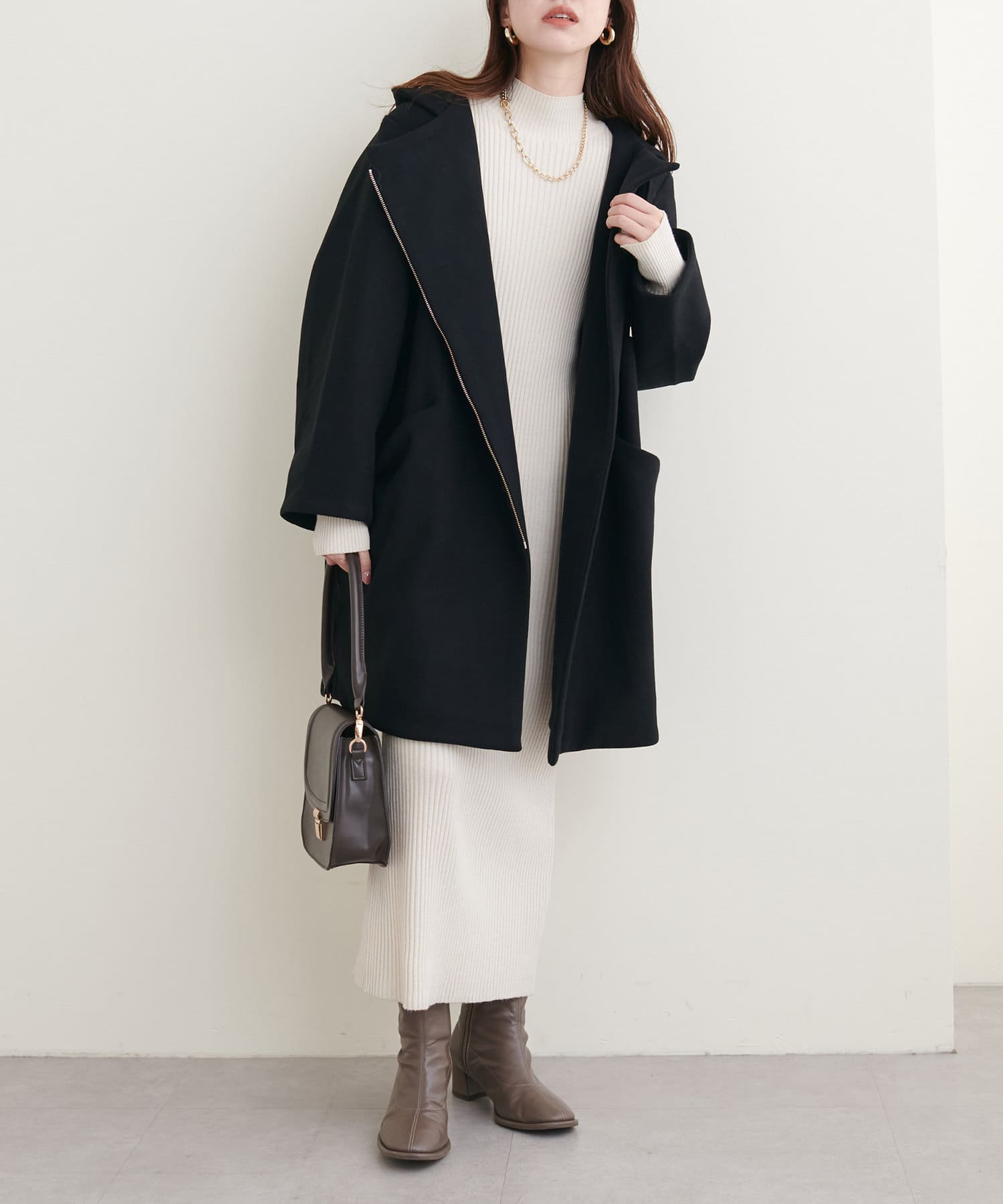 滑らかな肌触りで保温性も高いミドル丈コート。