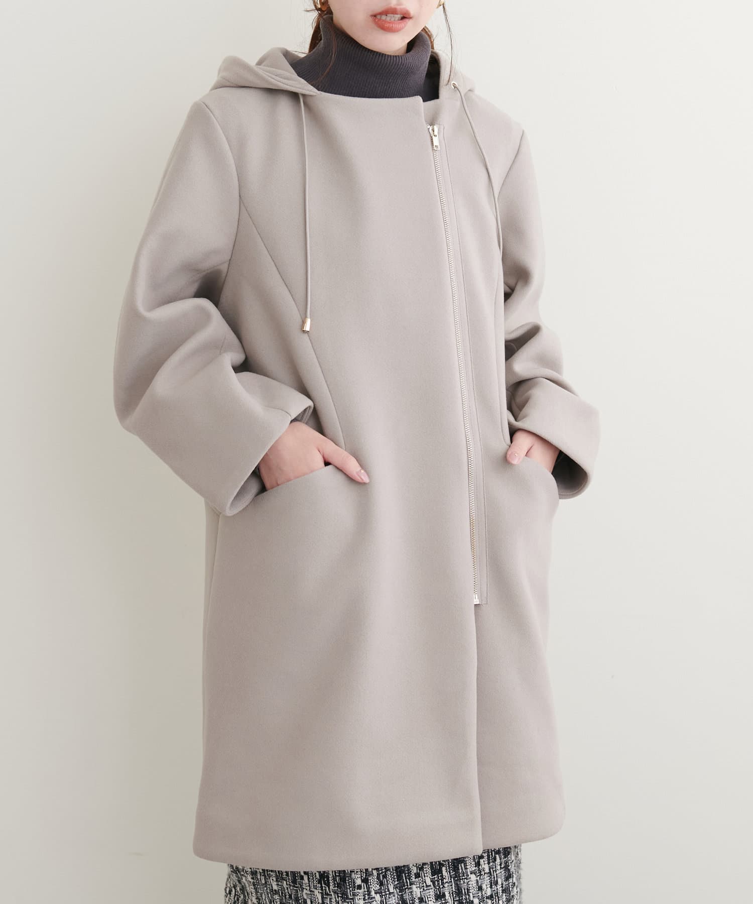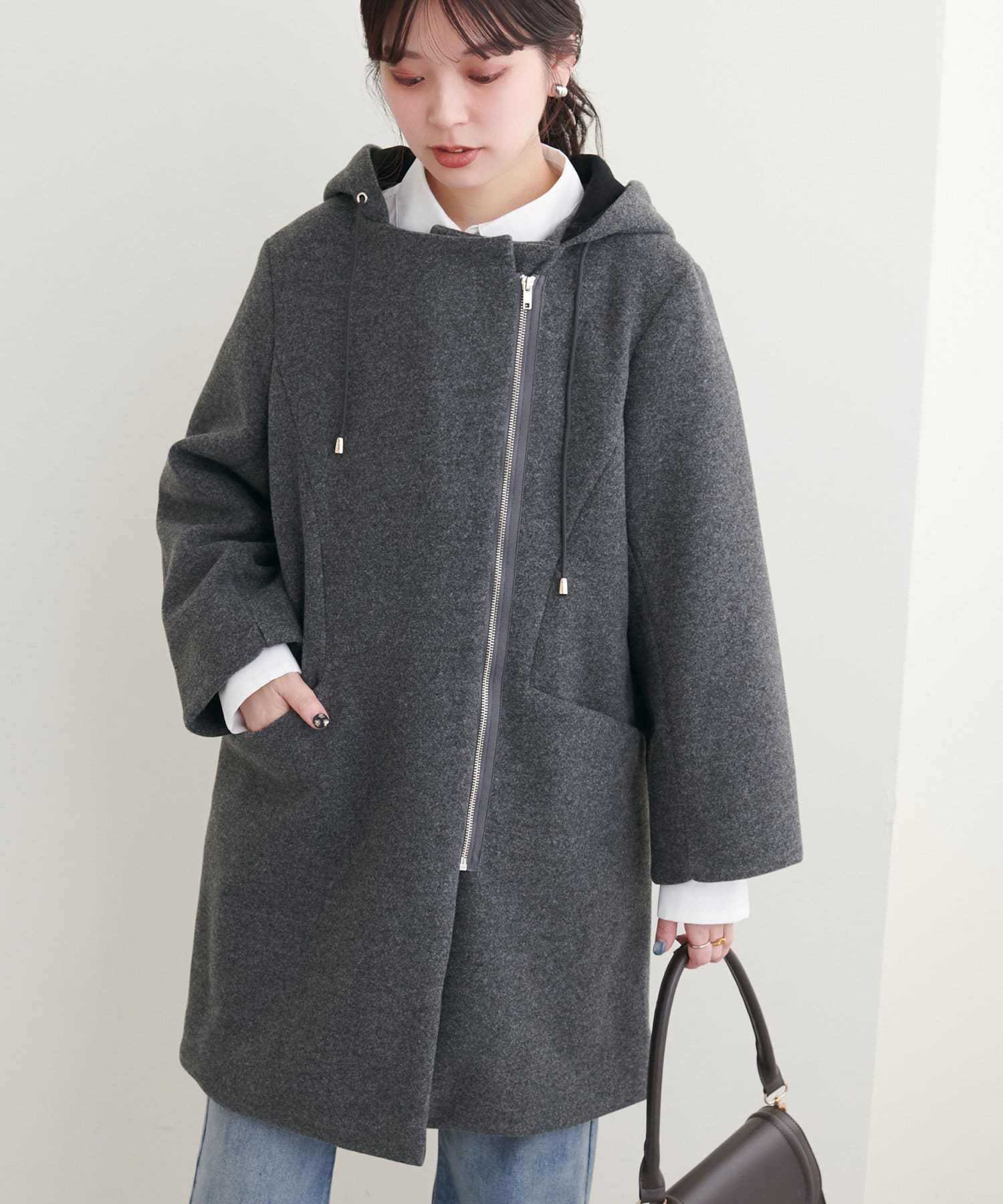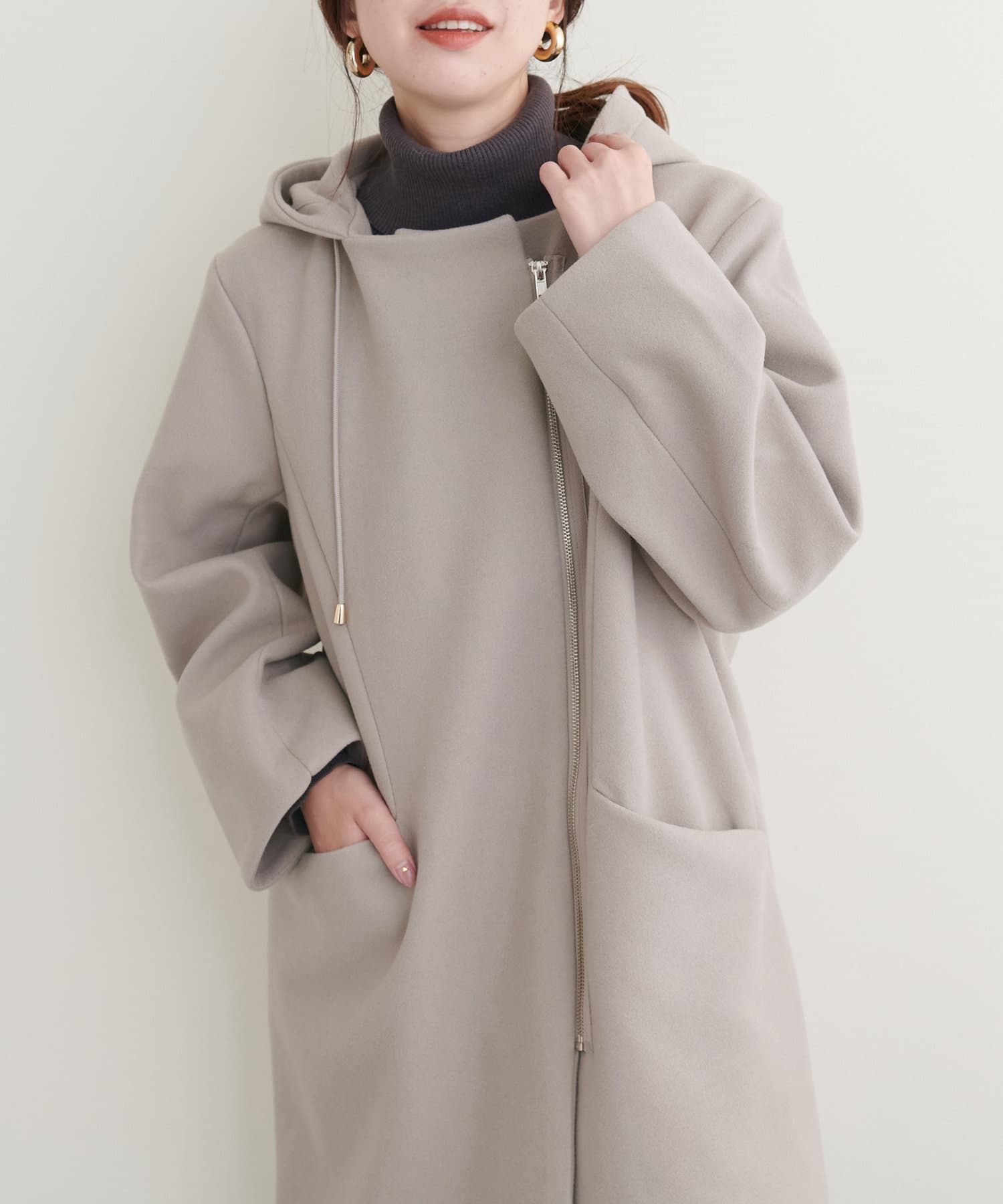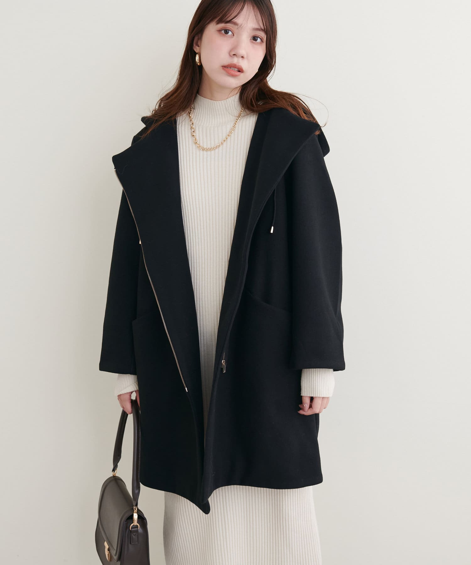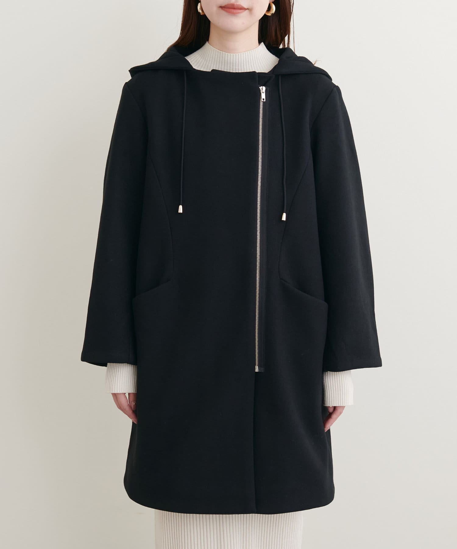 ジップを閉めればフーディを生かした可愛らしい印象になる