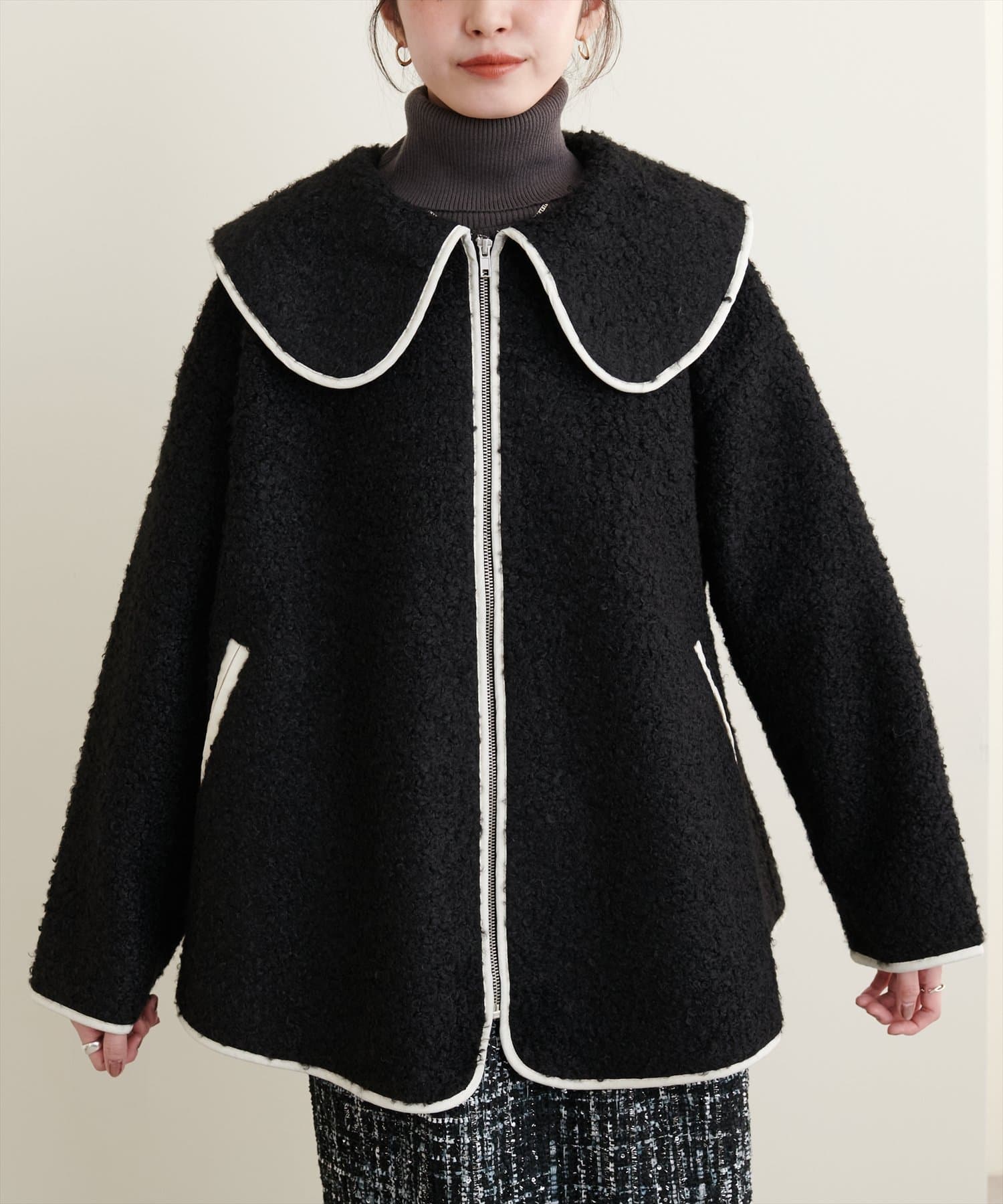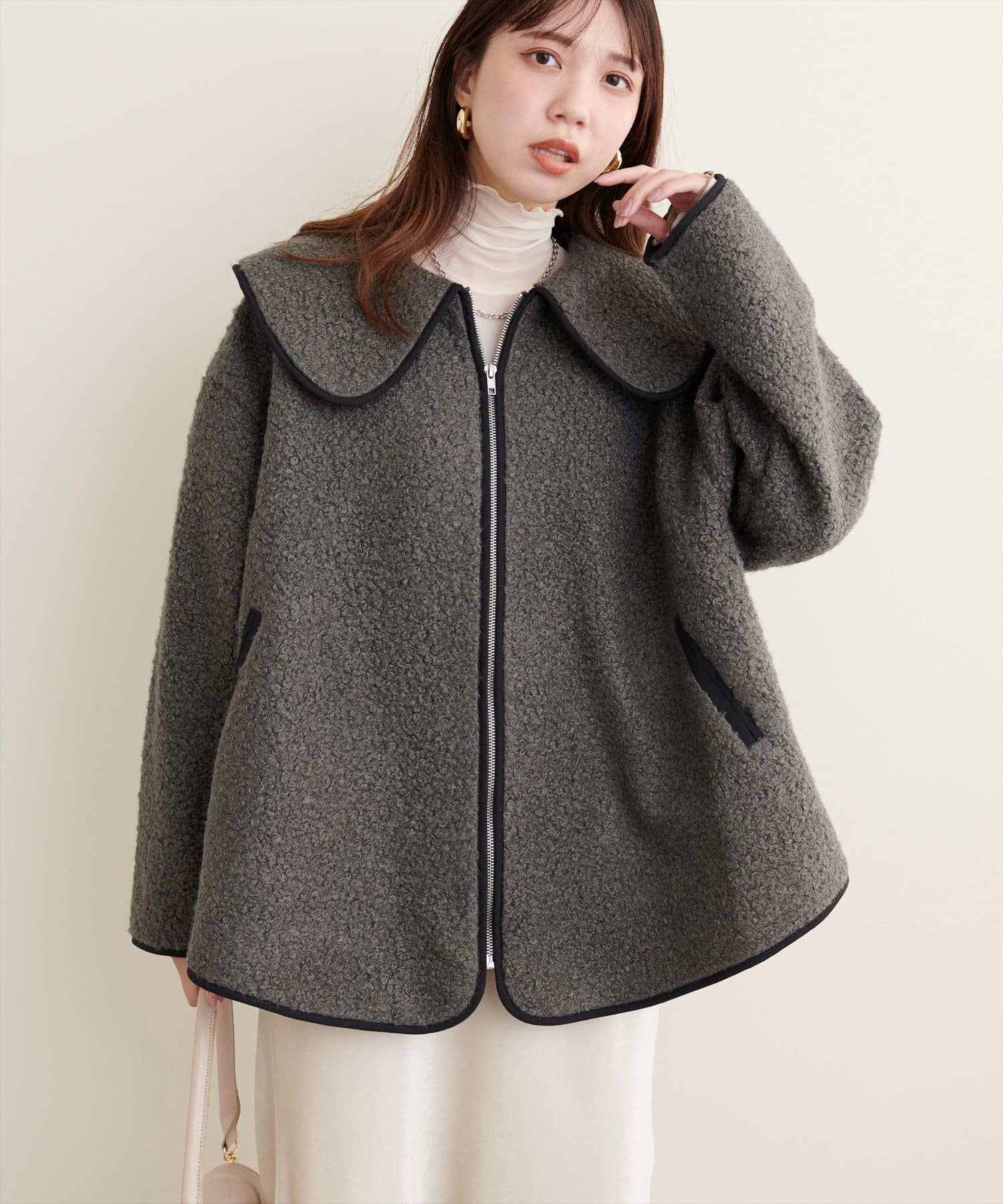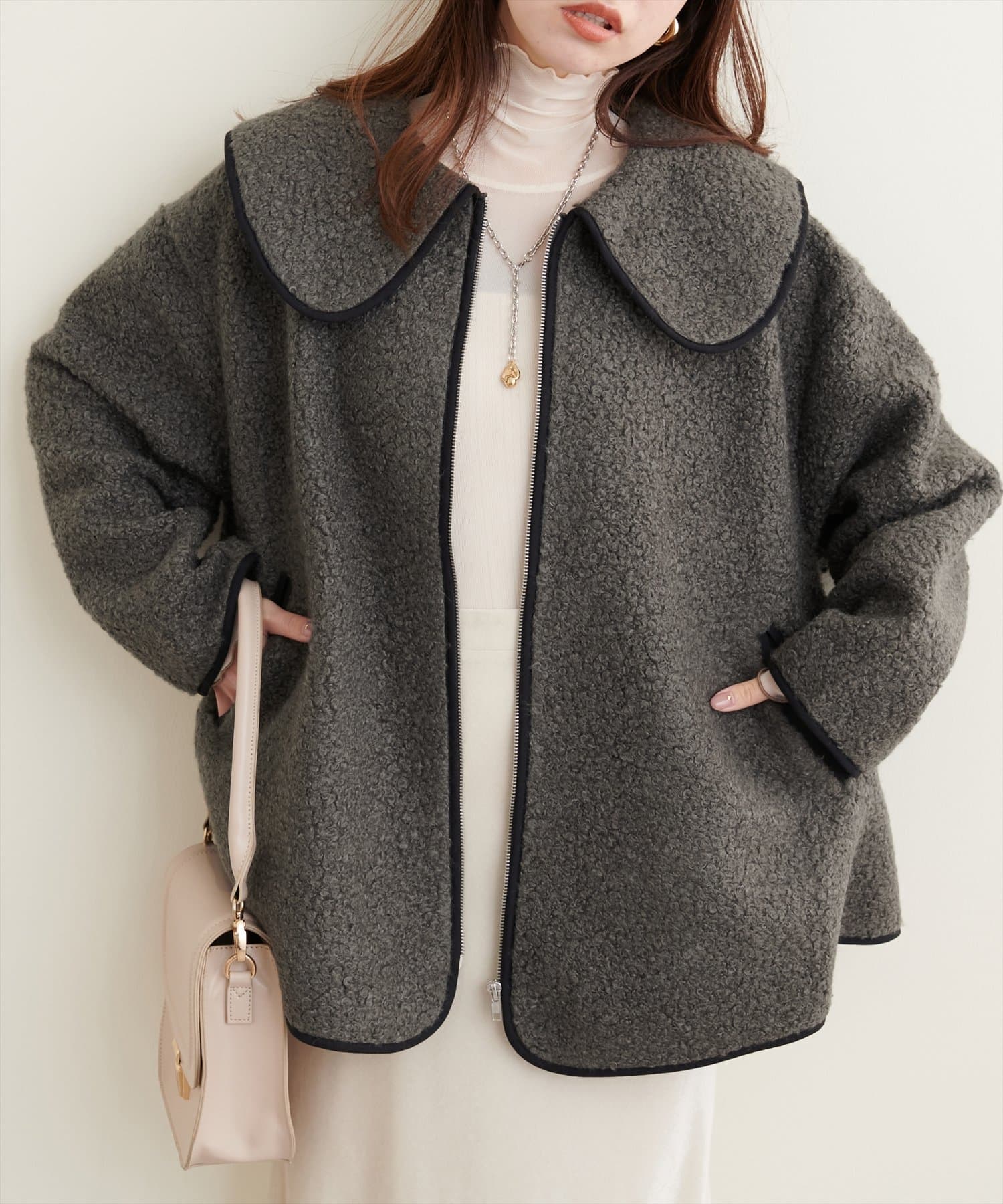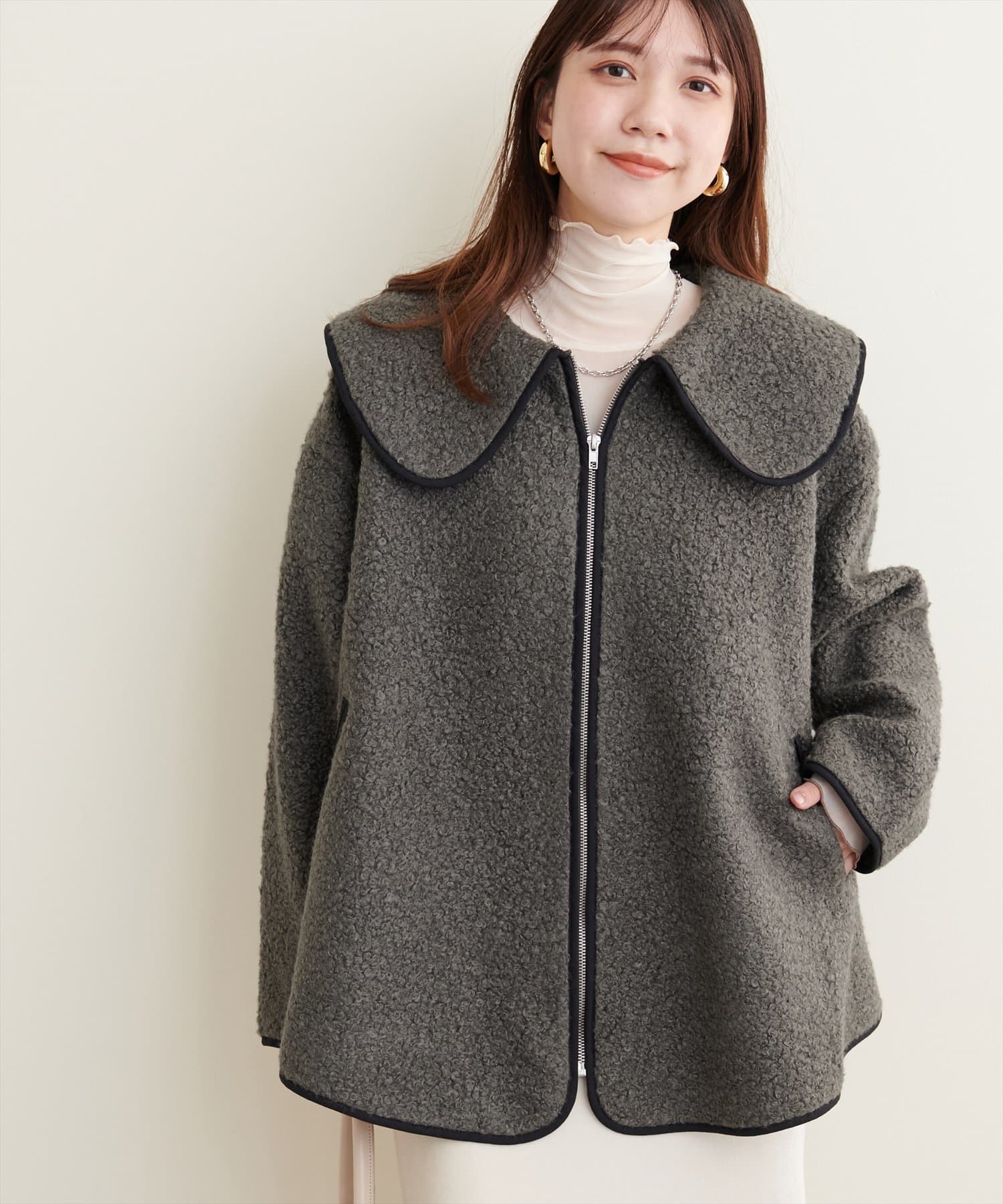 ビッグ衿ループブークレショートコート