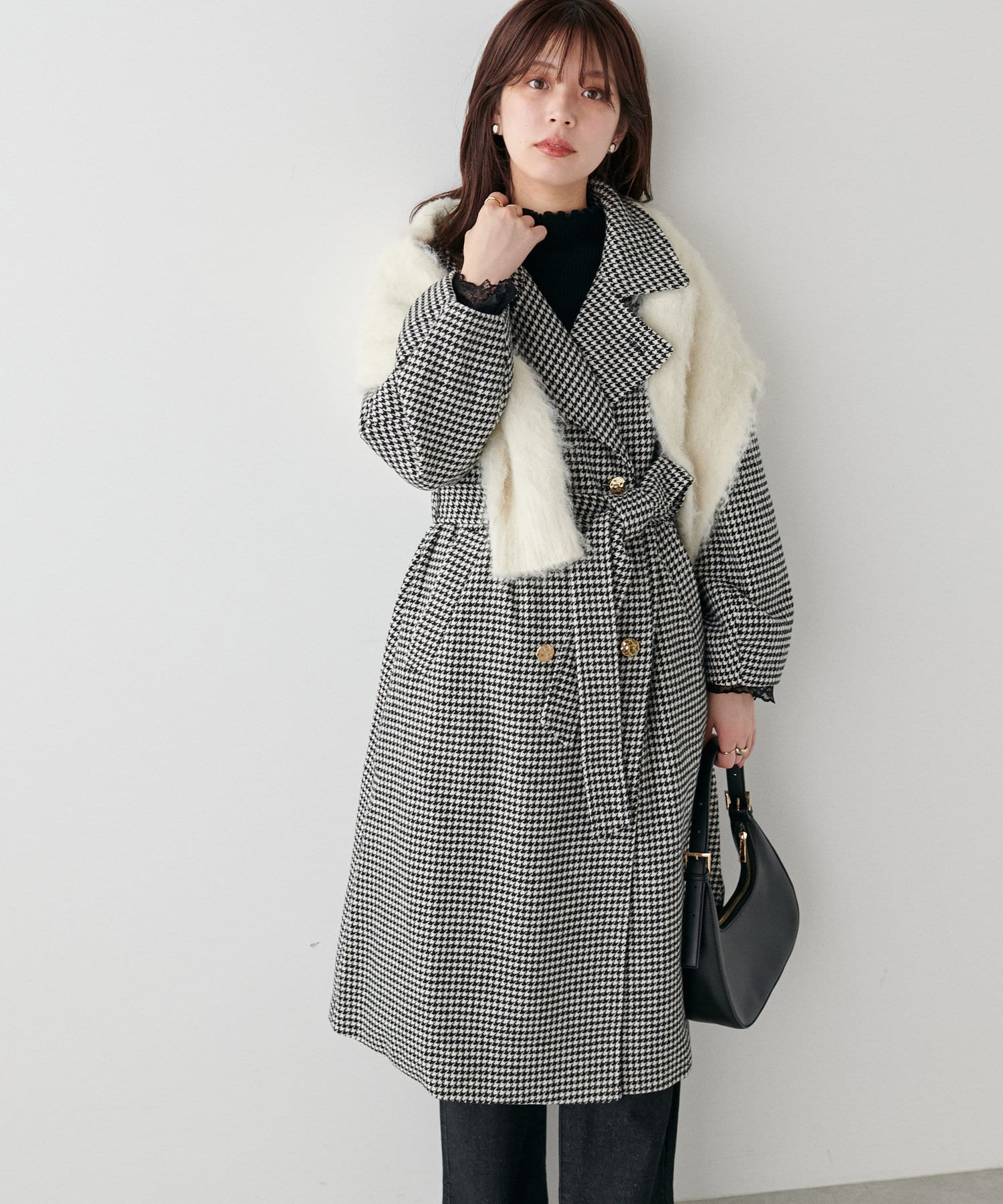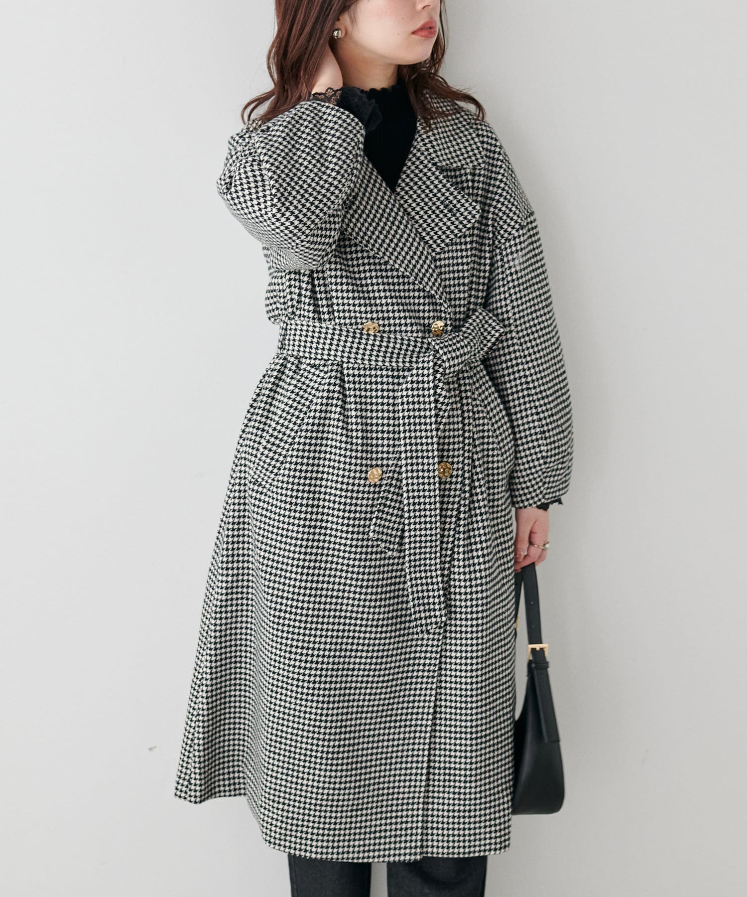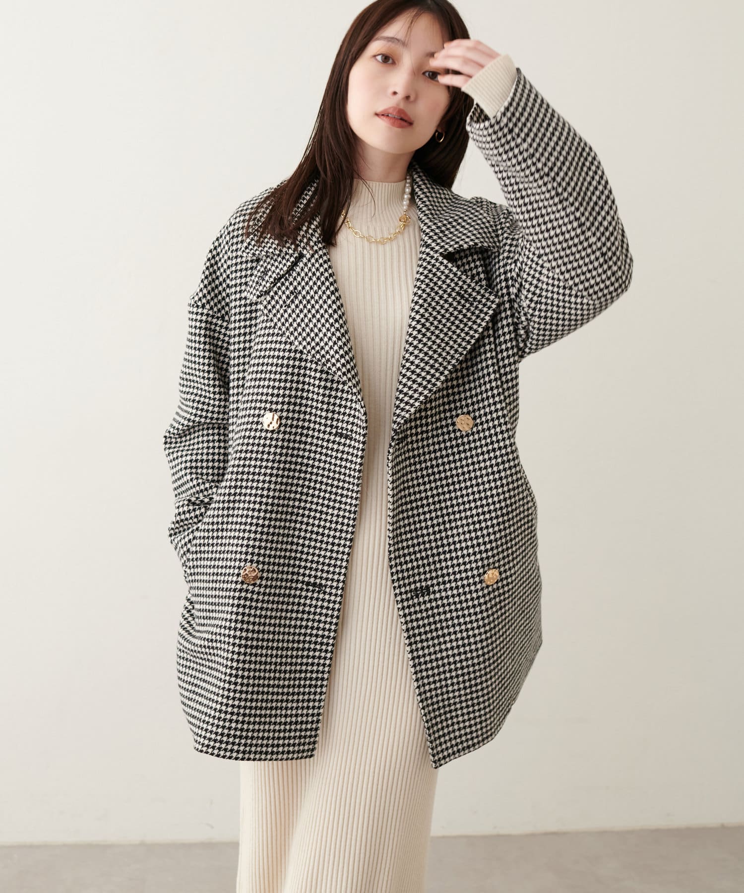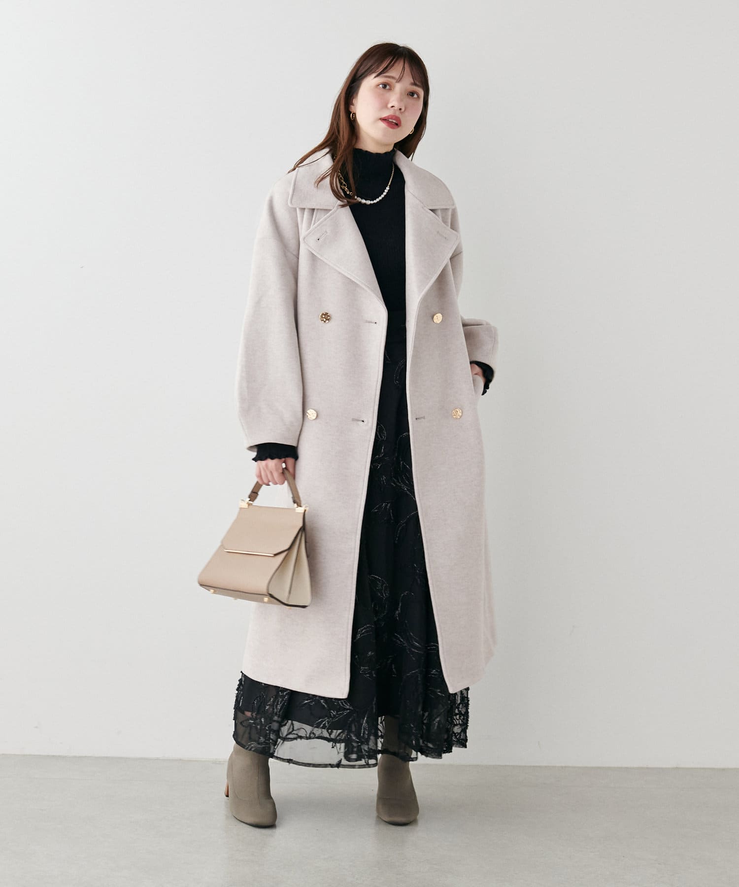 袖口はややコクーンシルエットなので、重厚感のあるアウターでもフェミニンな印象に。