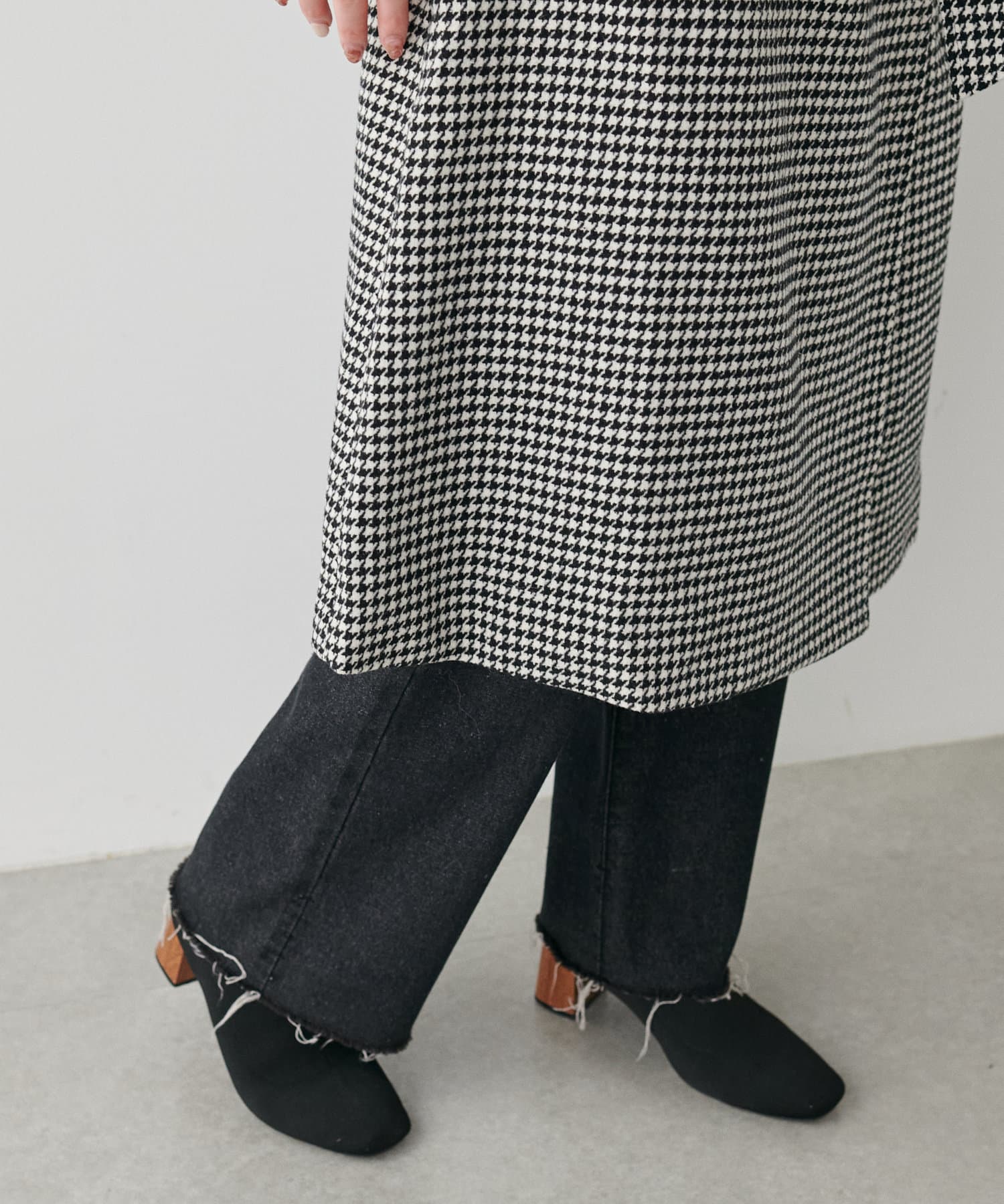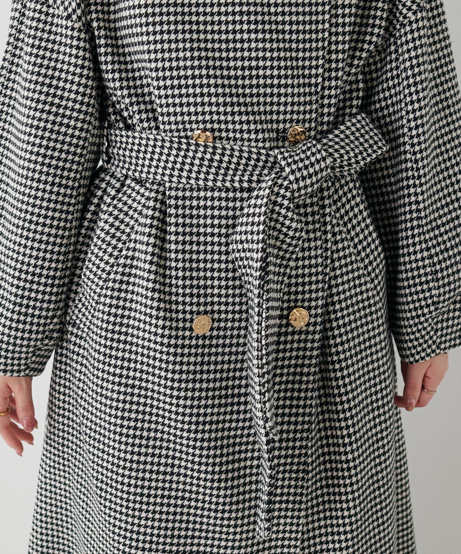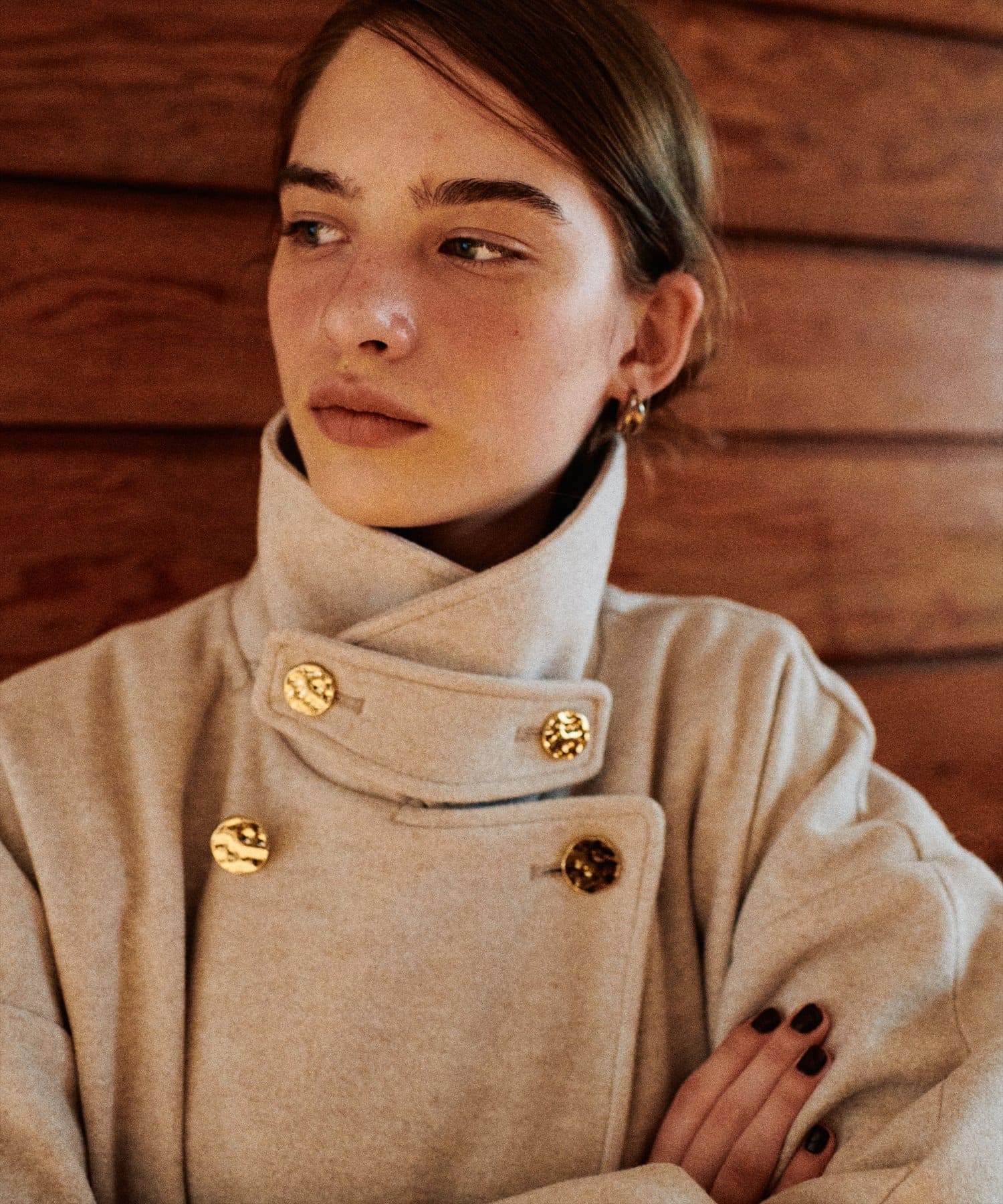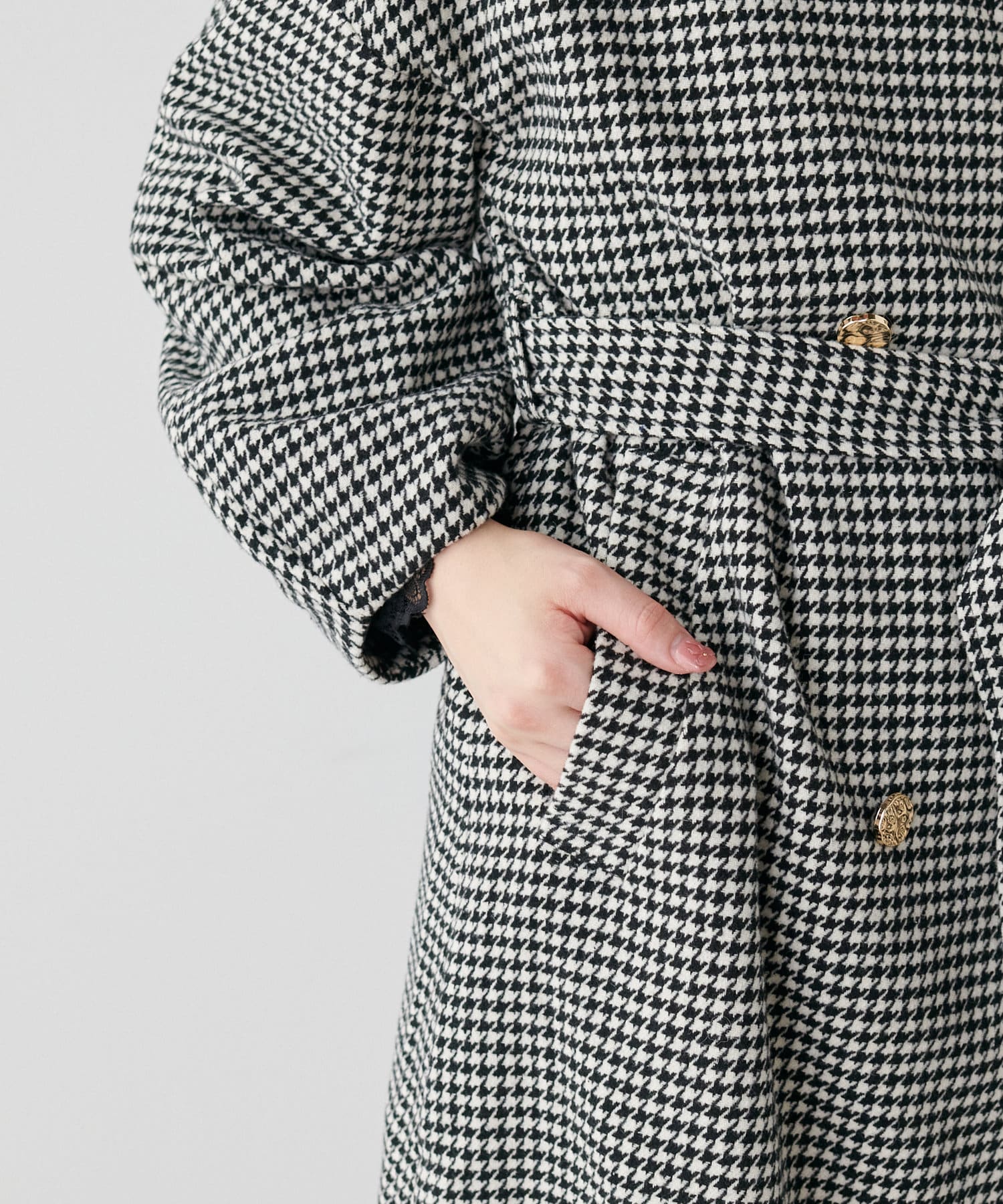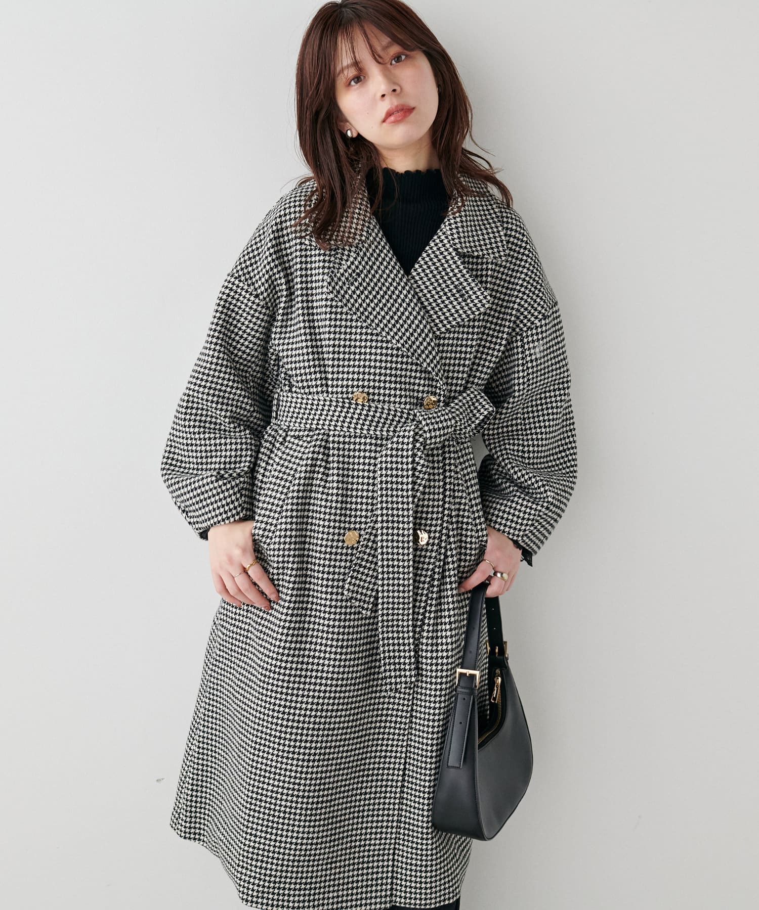 袖口はややコクーンシルエットなので、重厚感のあるアウターでもフェミニンな印象に。