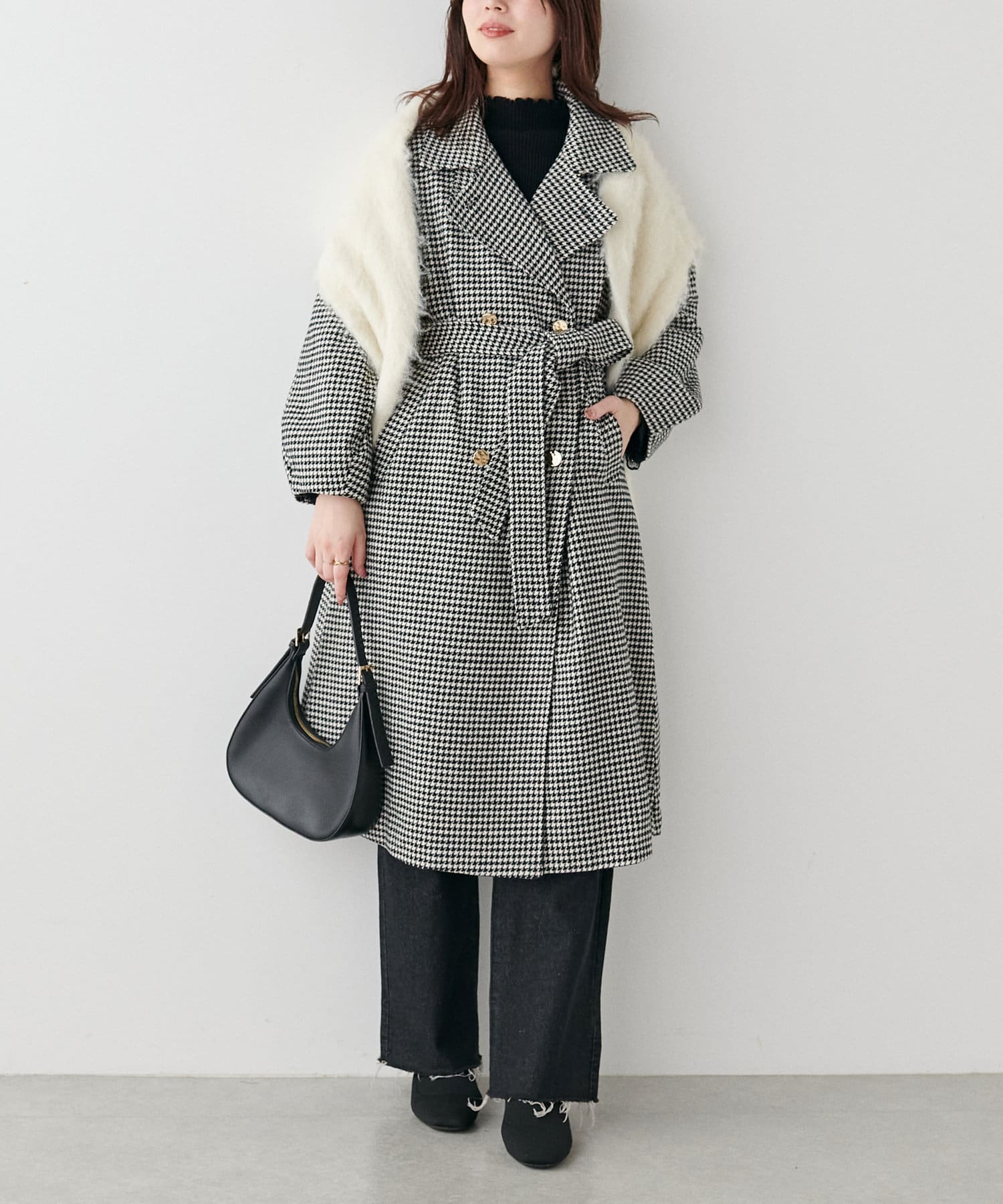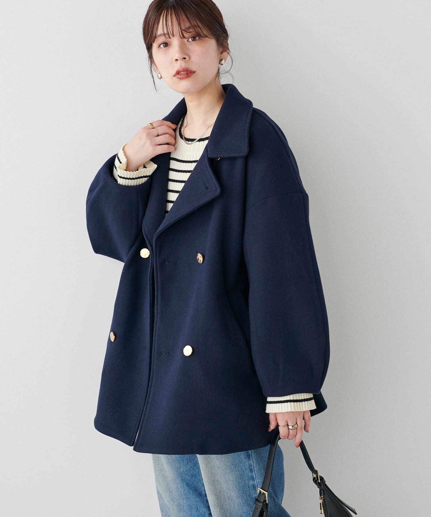 ゆとりのあるスリーブで厚手のニットも着込めるので、真冬まで大活躍間違いなしの1着。