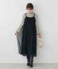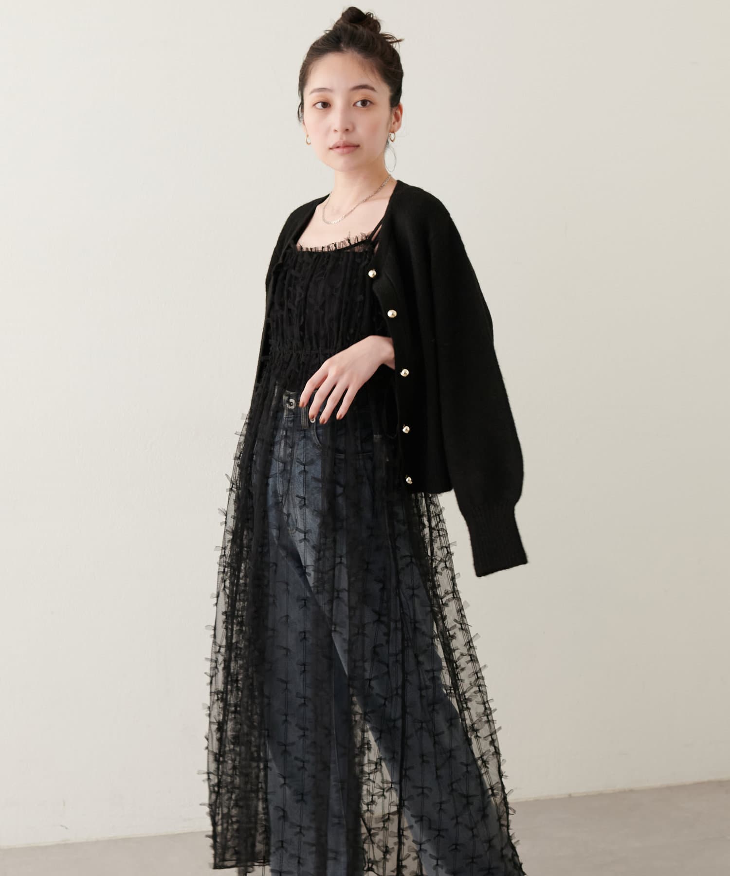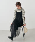 デニムなどの上からチュールキャミワンピースを合わせてカジュアルダウンさせても◎