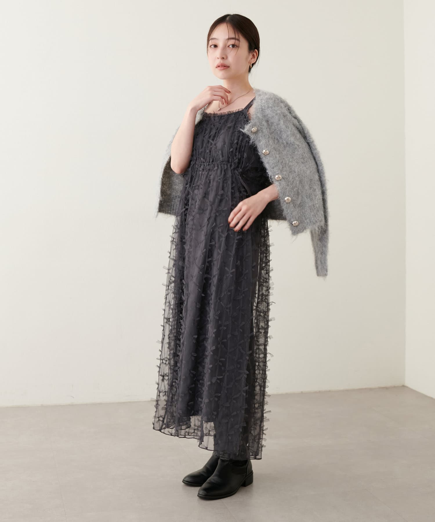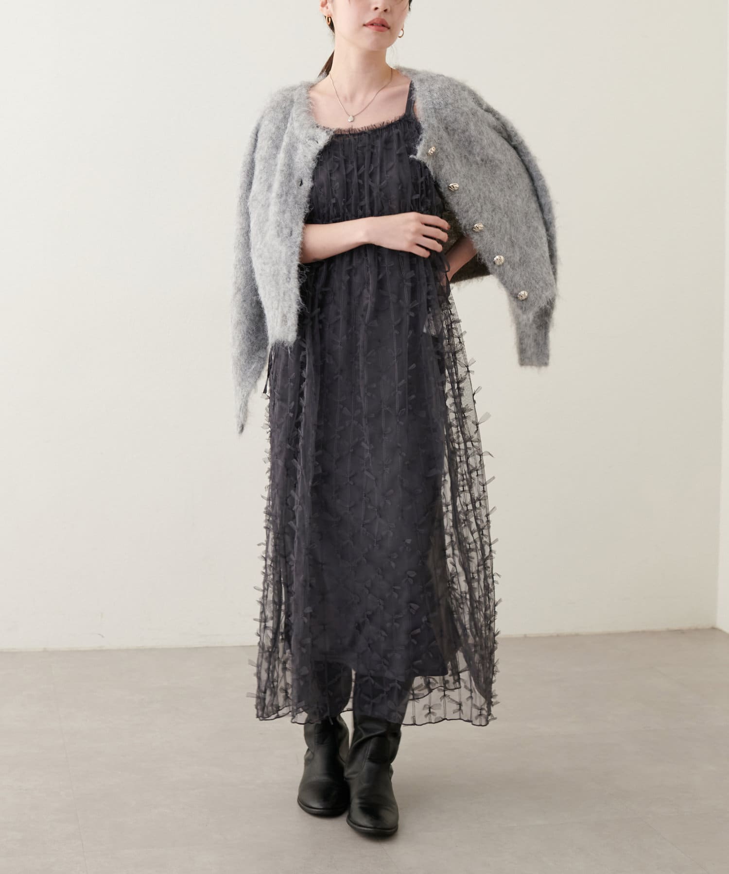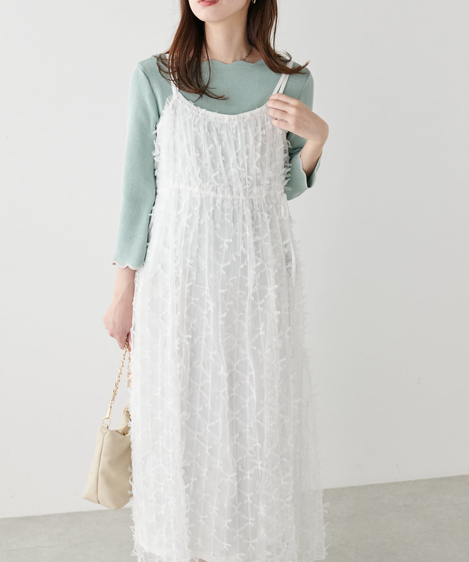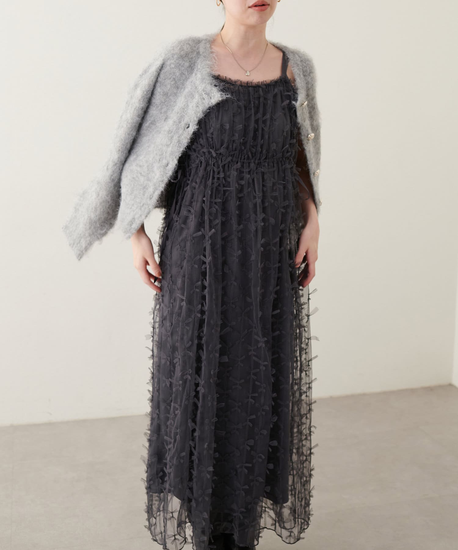 リボンチュールキャミワンピース