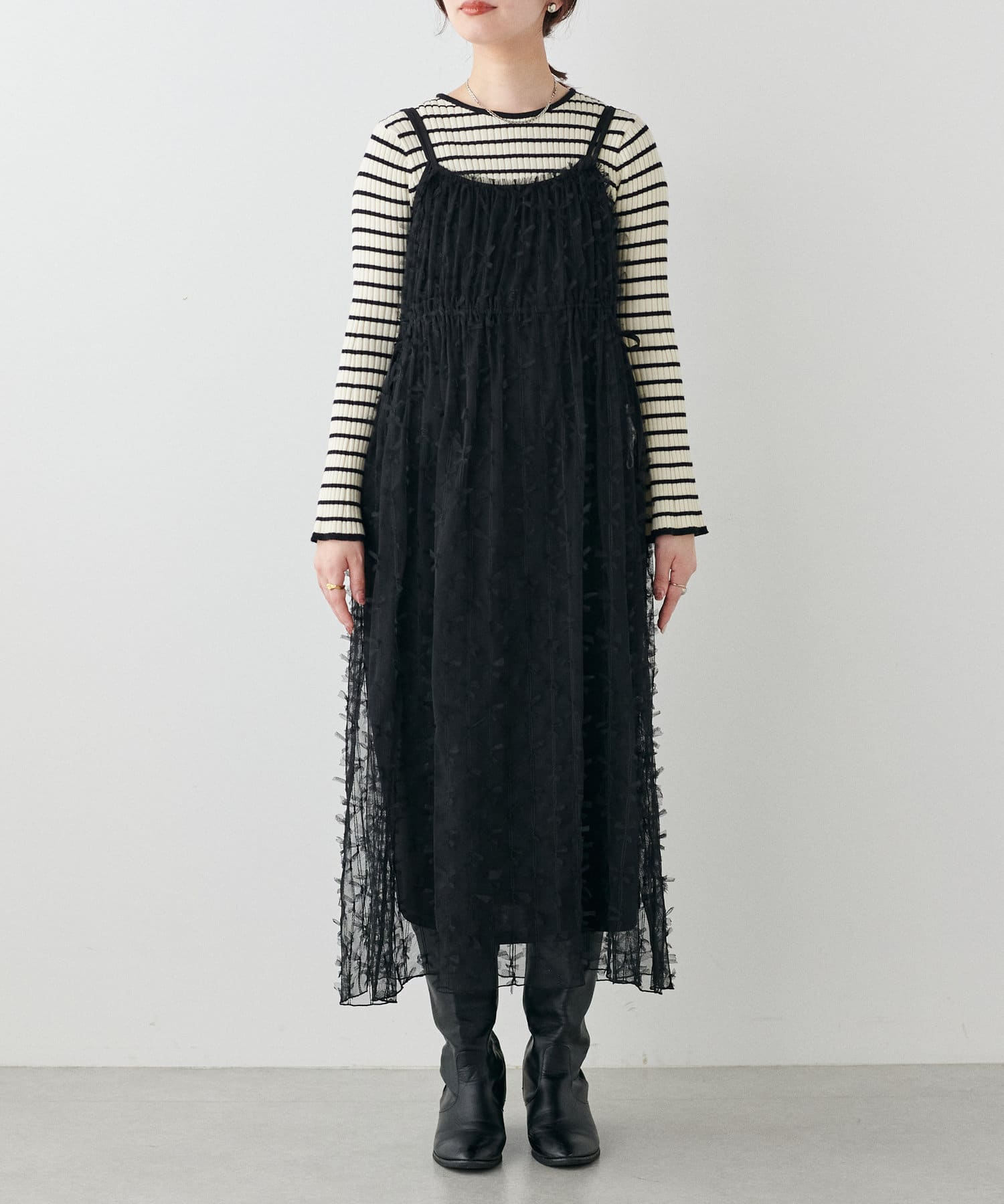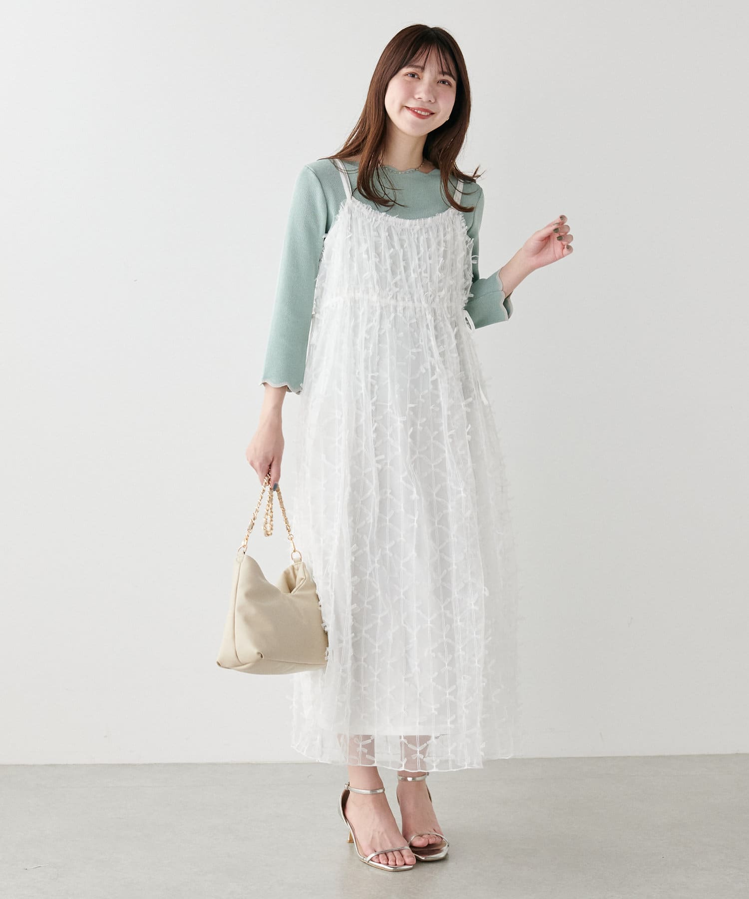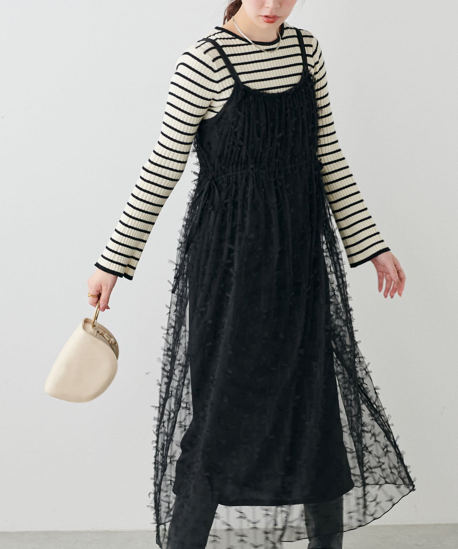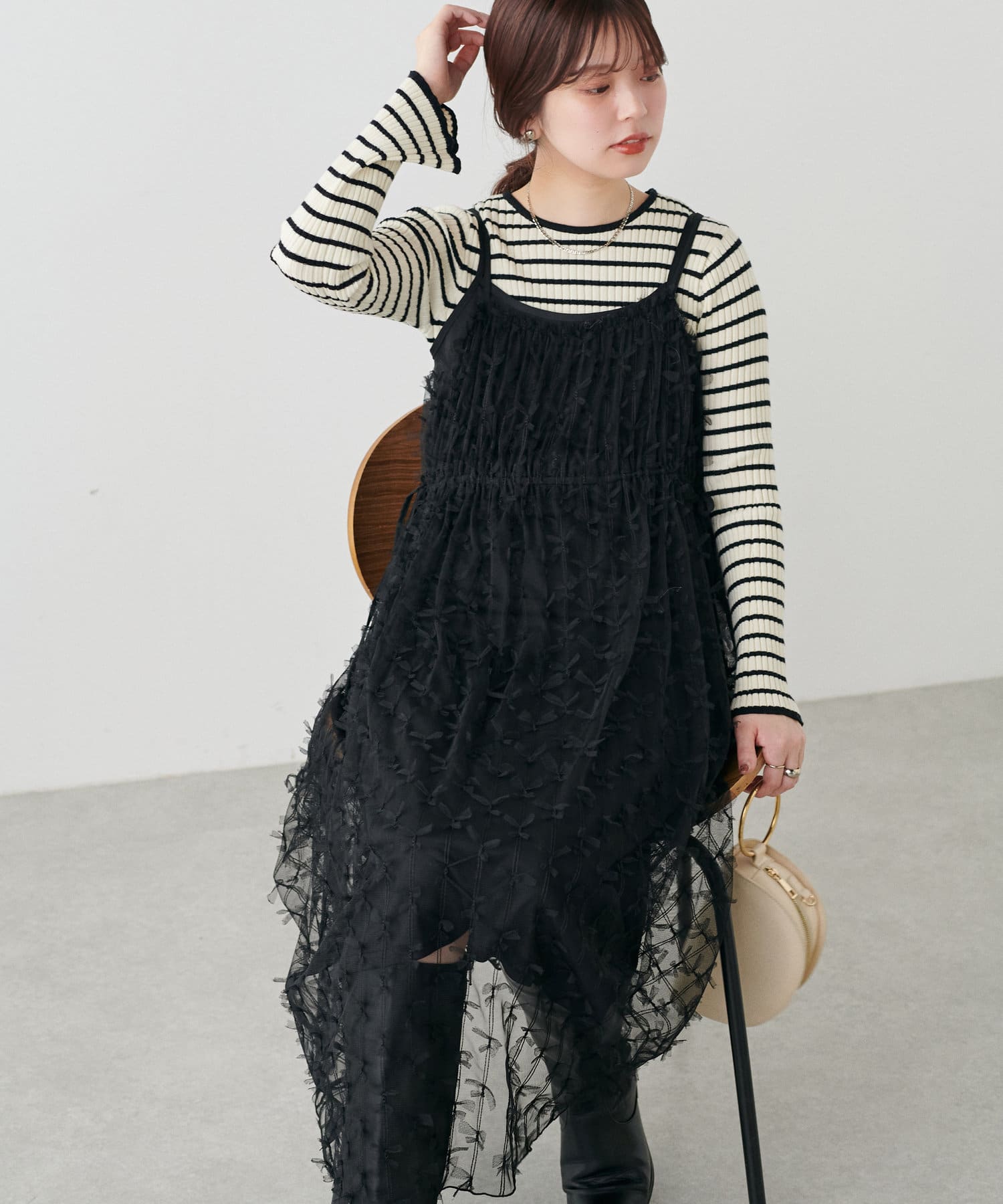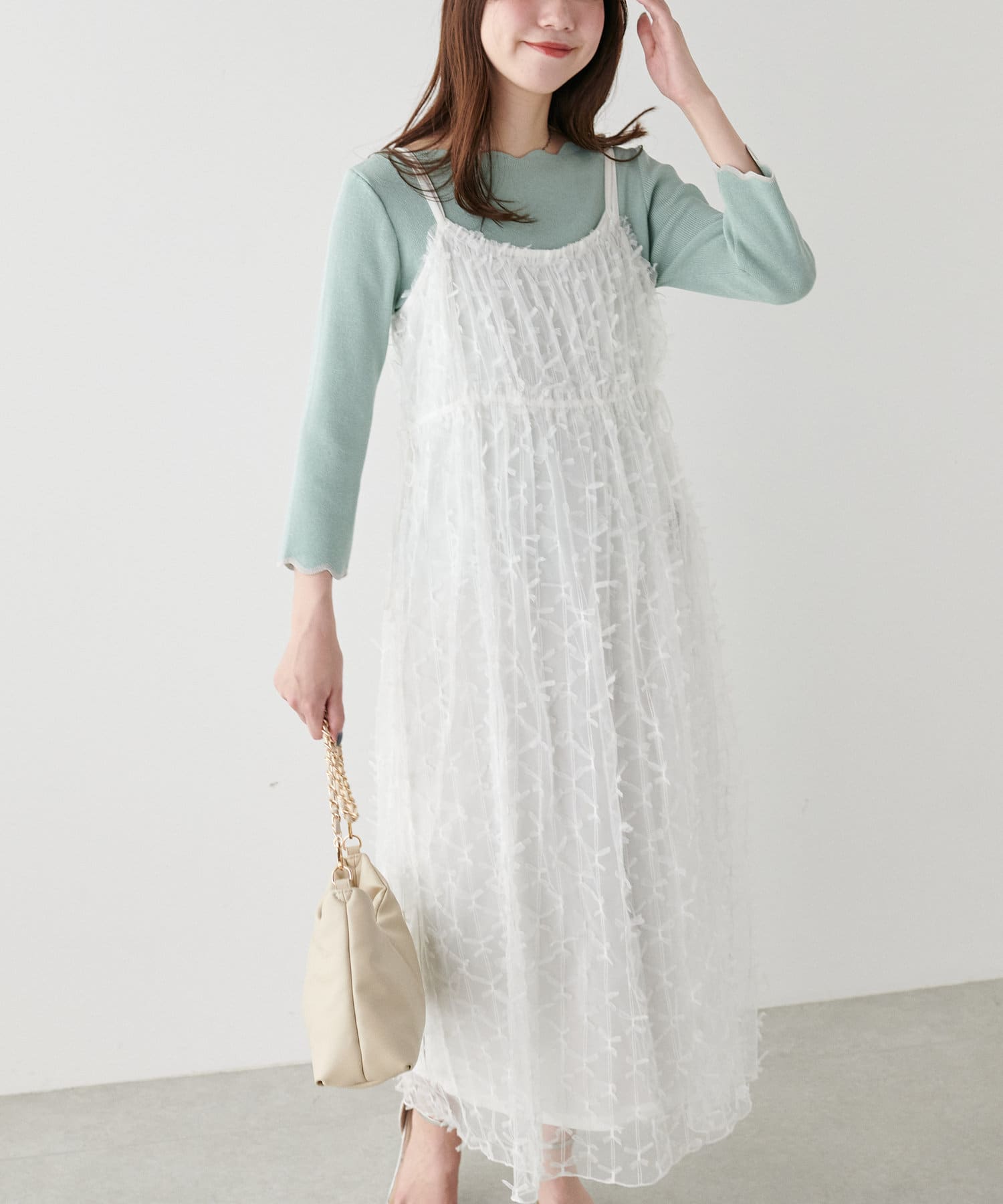 リボンチュールキャミワンピース