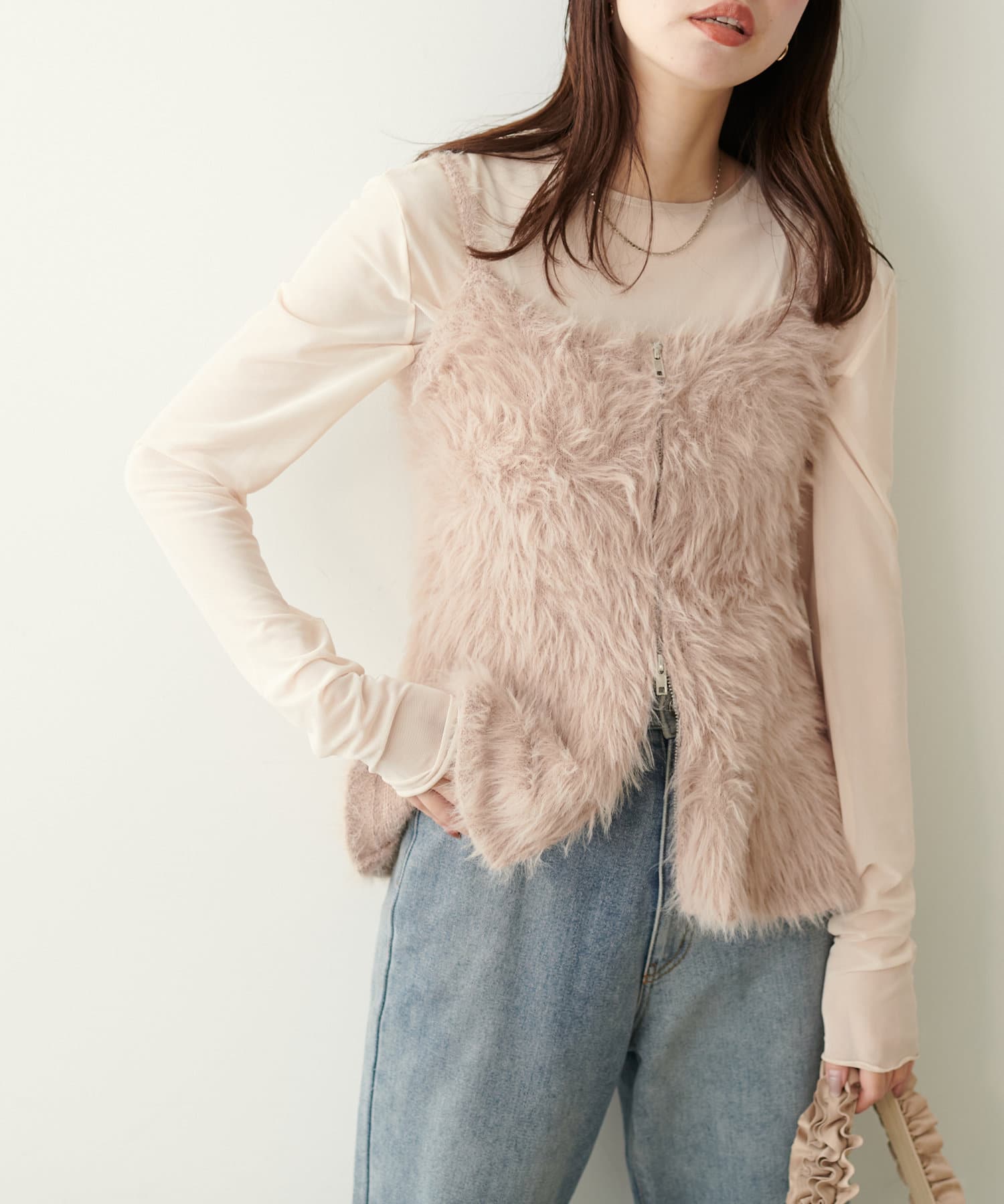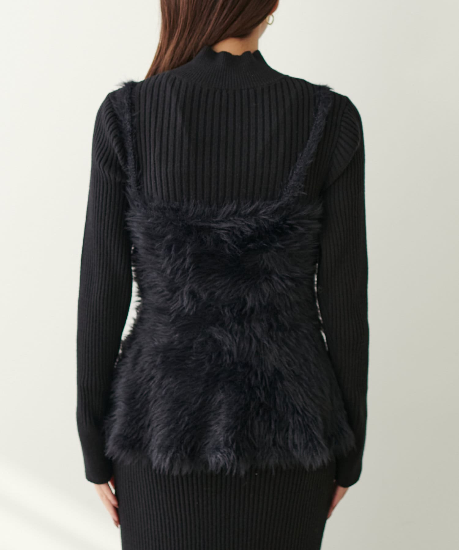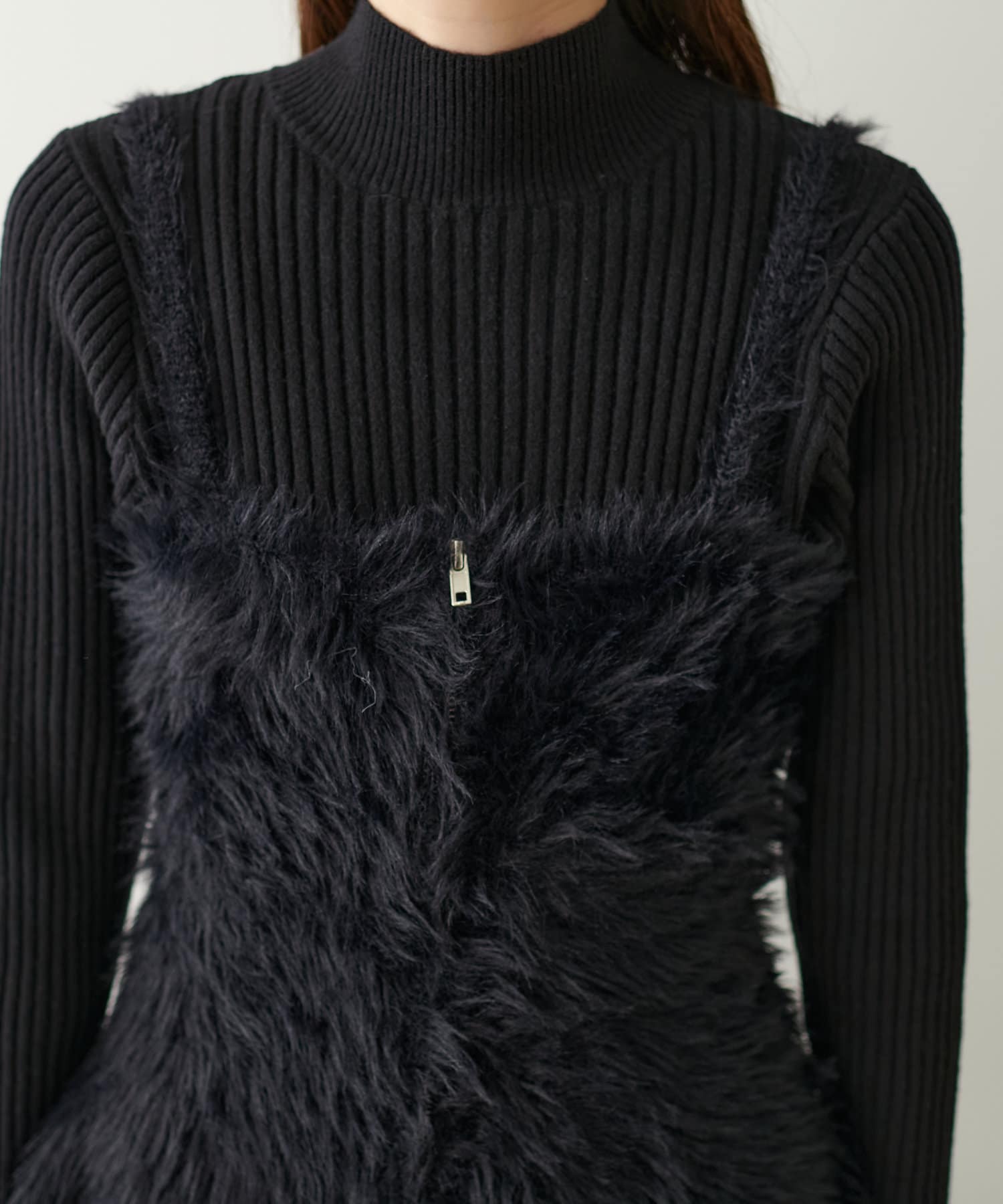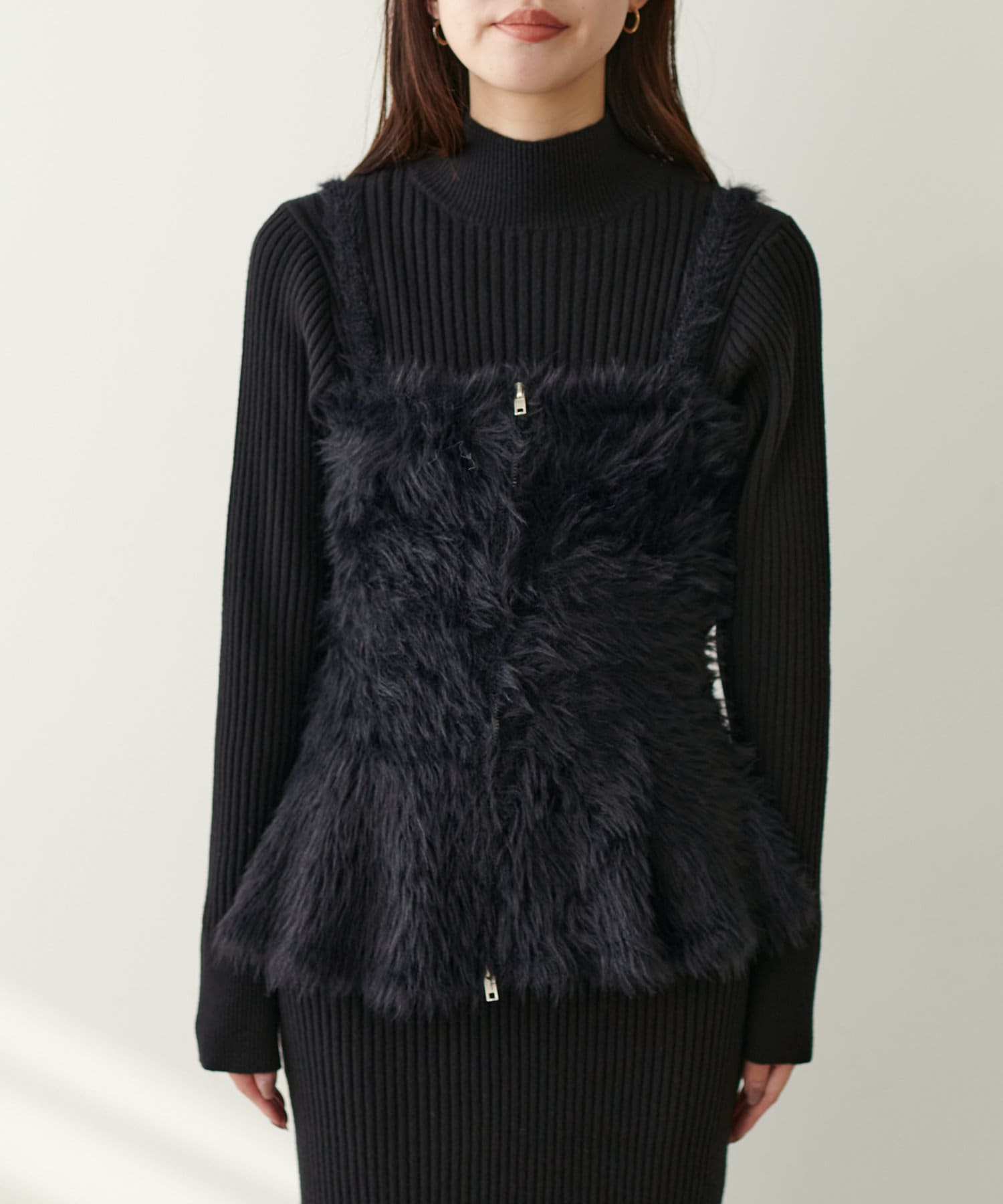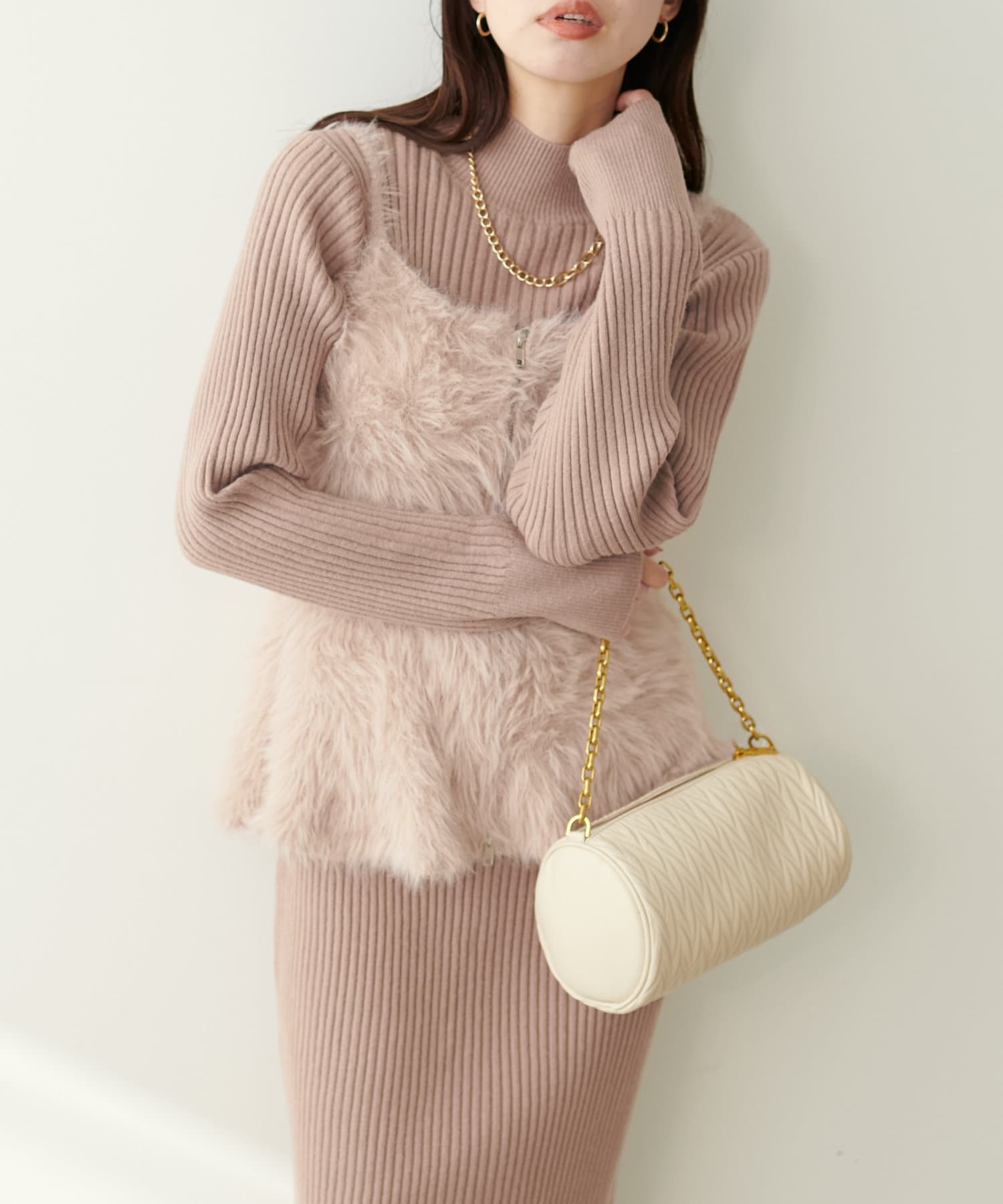 秋冬の定番人気アイテムのリブニットワンピース×フェザーベストから、ベストがペプラムビスチェになって再登場!