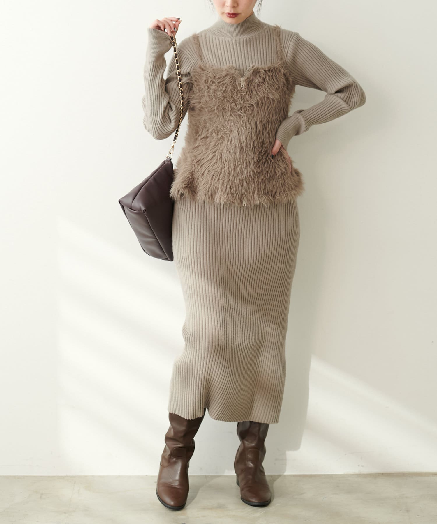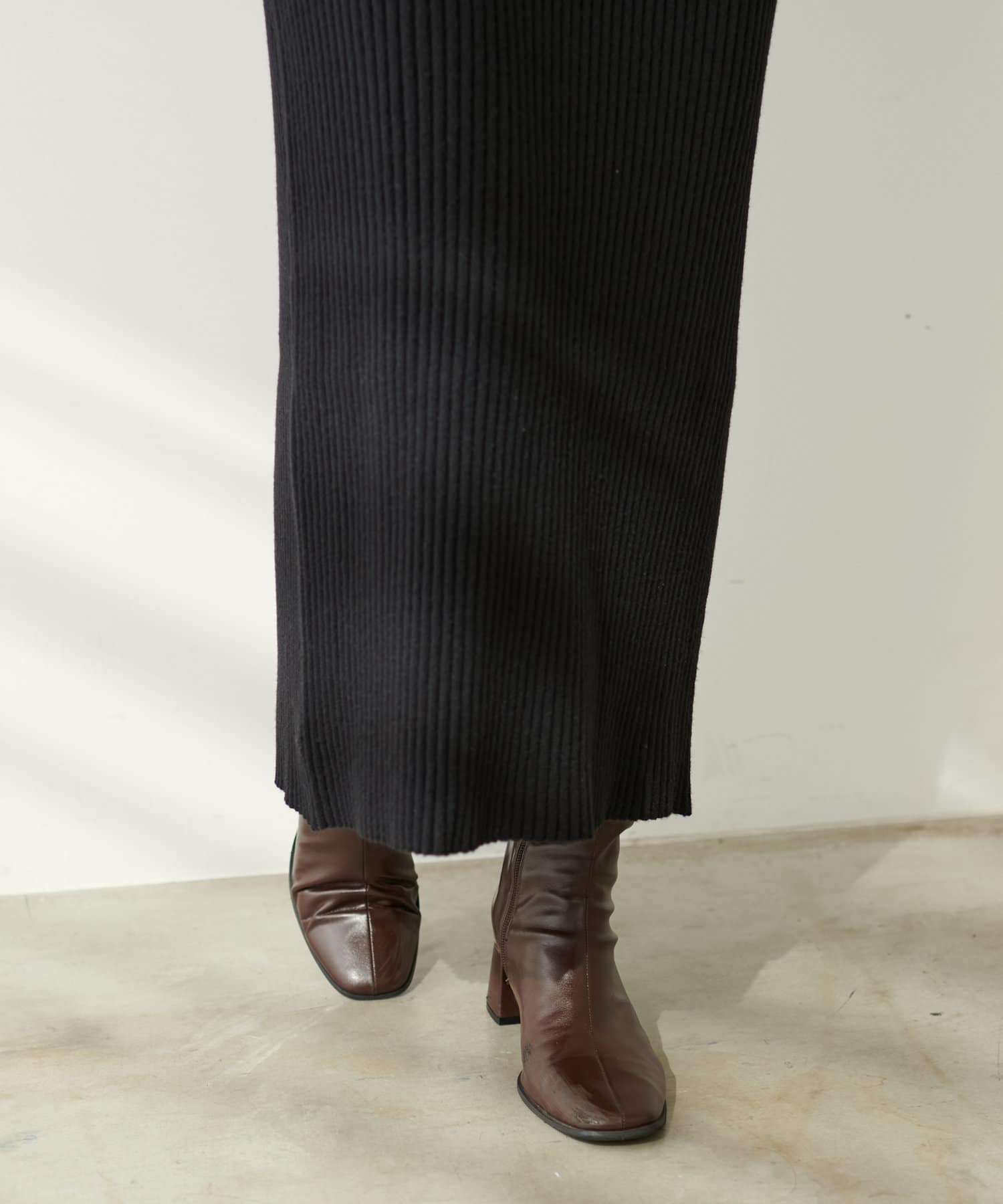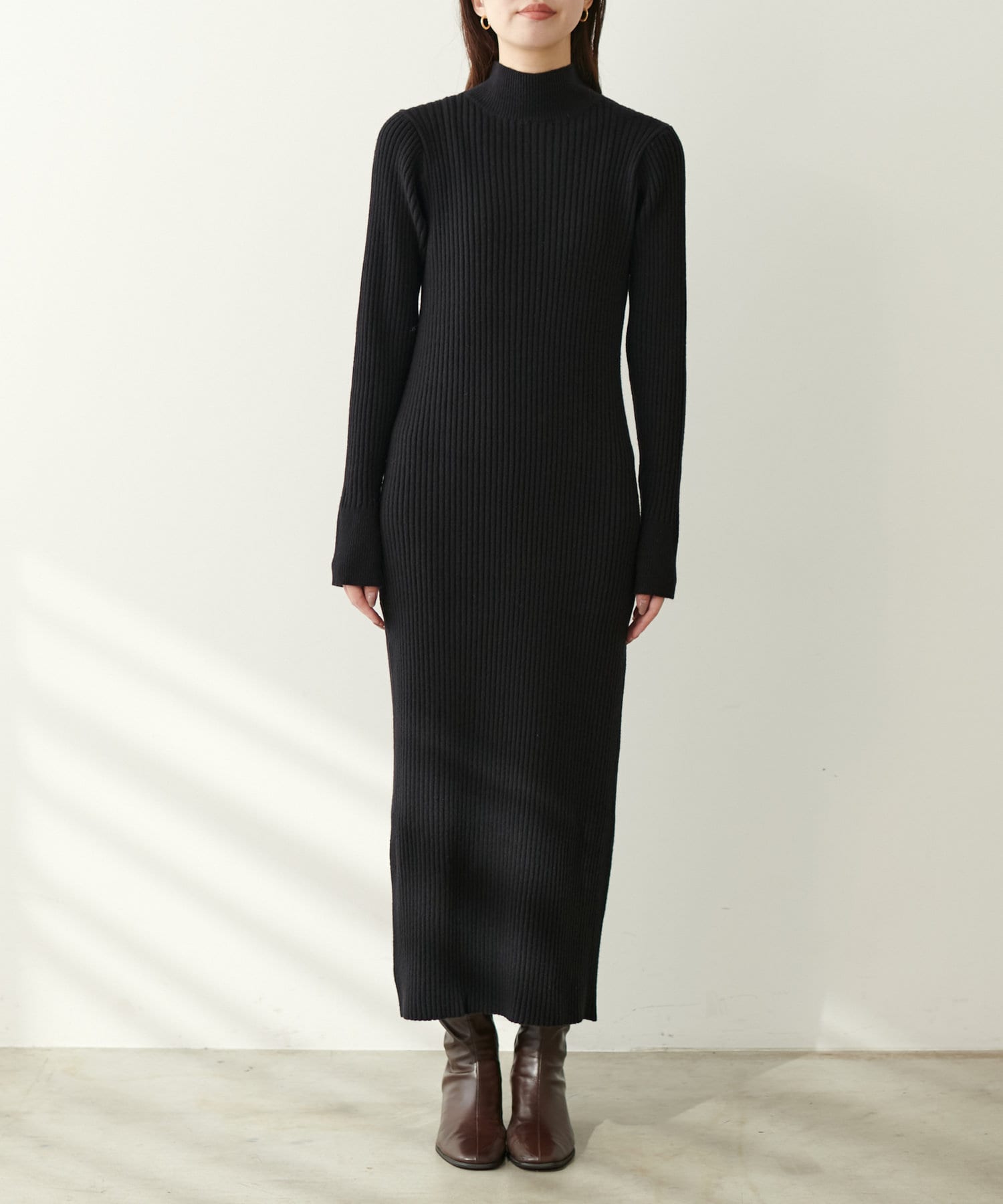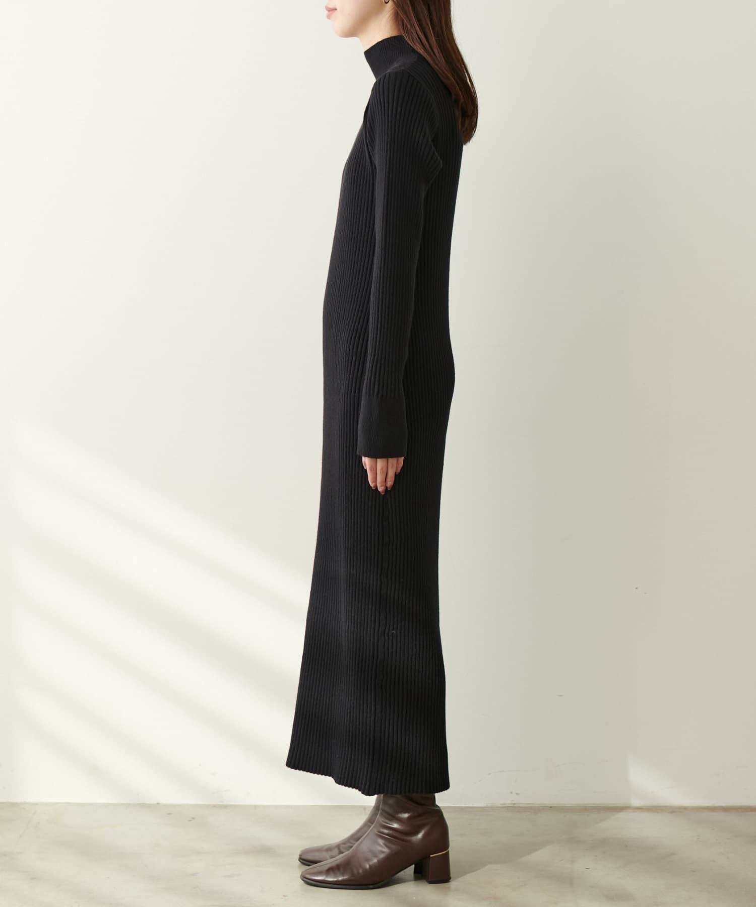 リブニットワンピは程良いサイズ感と丈感で幅広いお客様にマッチします。