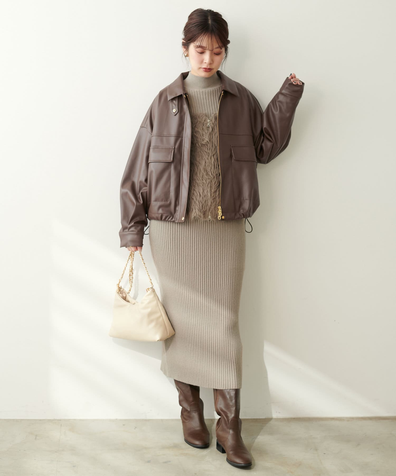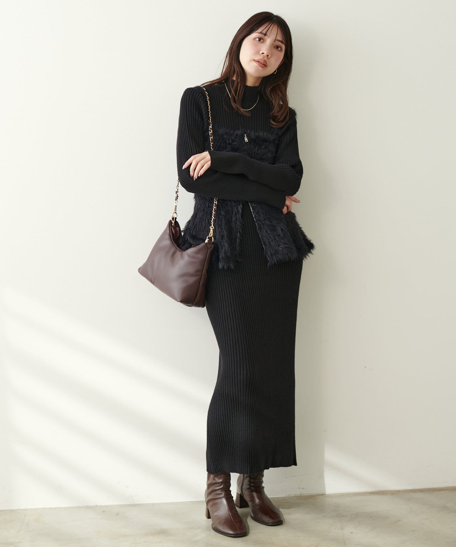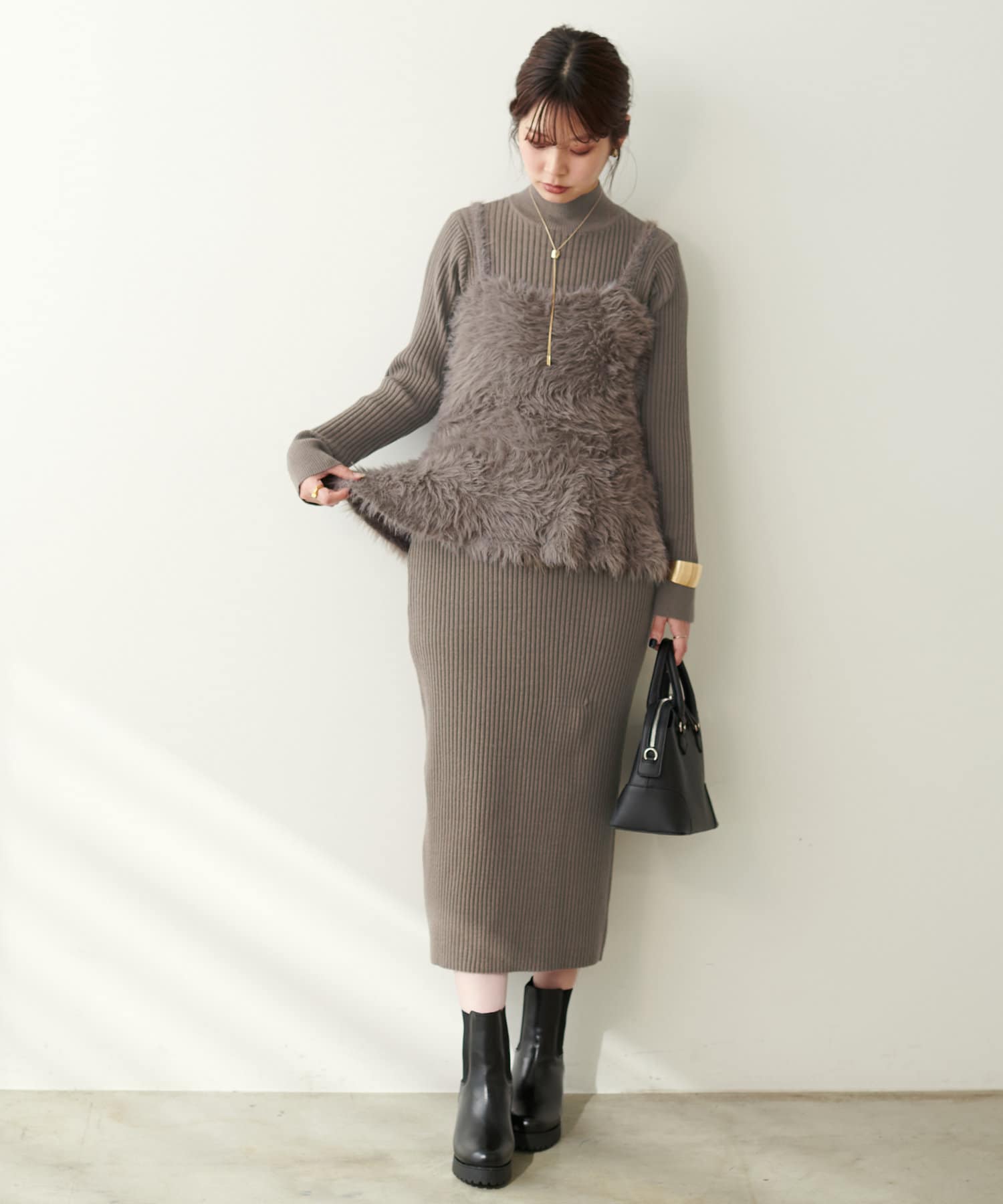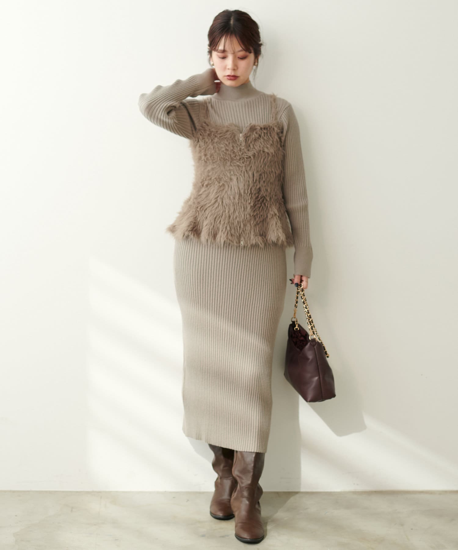 リブニットワンピは程良いサイズ感と丈感で幅広いお客様にマッチします。