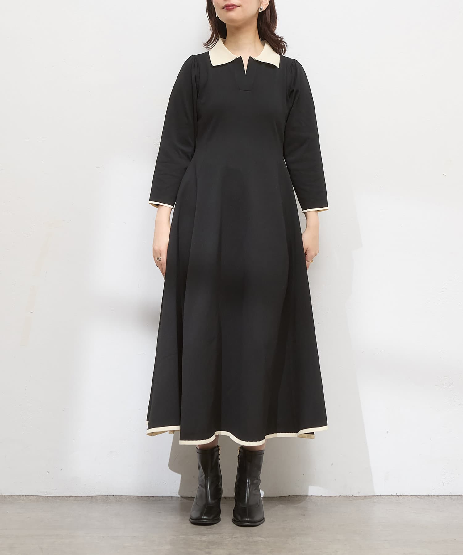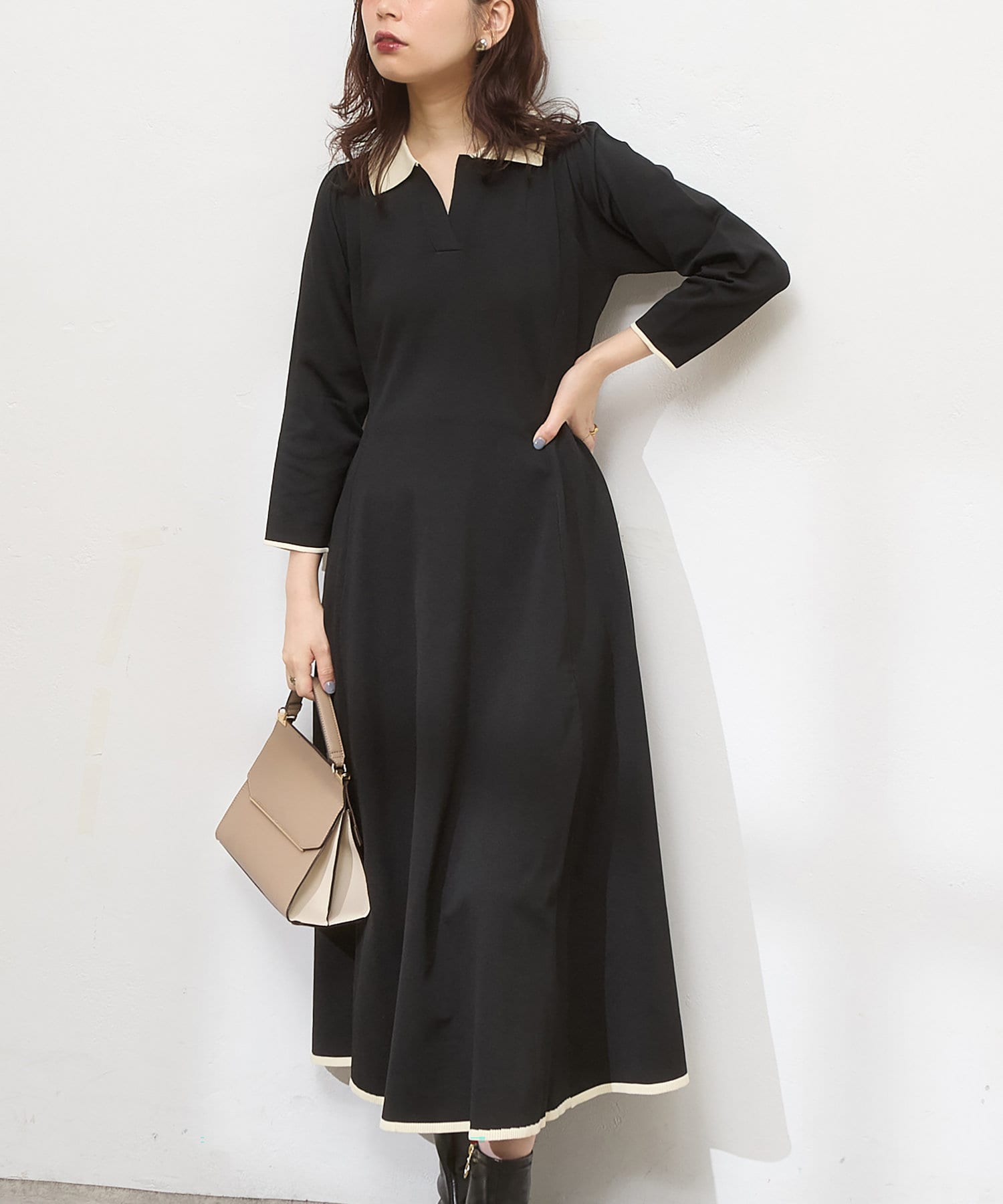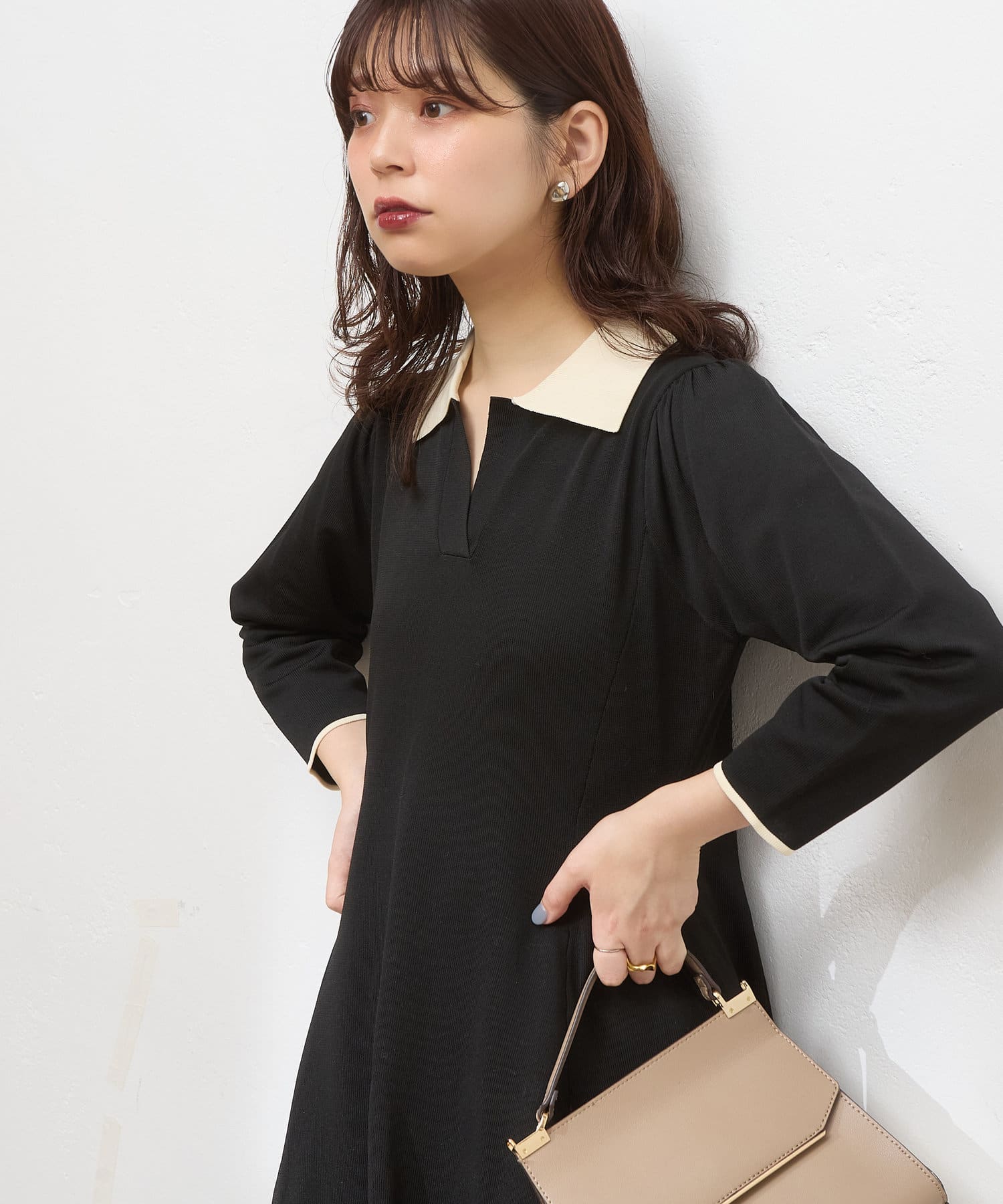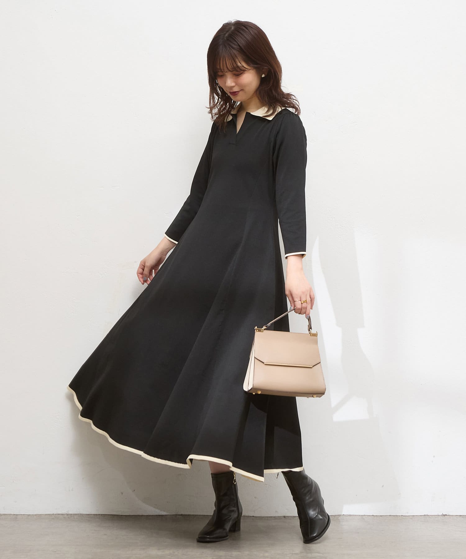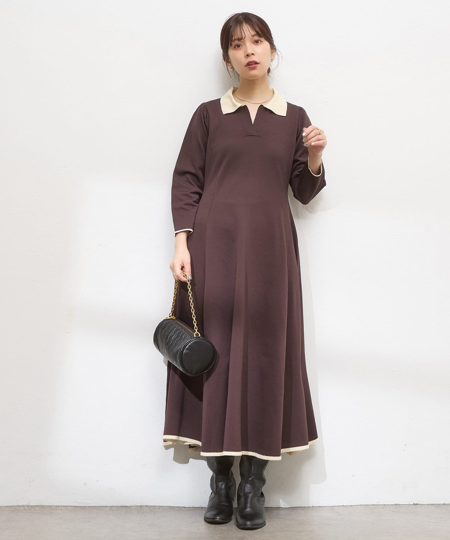 ポリニットワンピースで、扱いやすくキレイ見えする素材なので、張りがあり体のラインを気にせずに着られます。